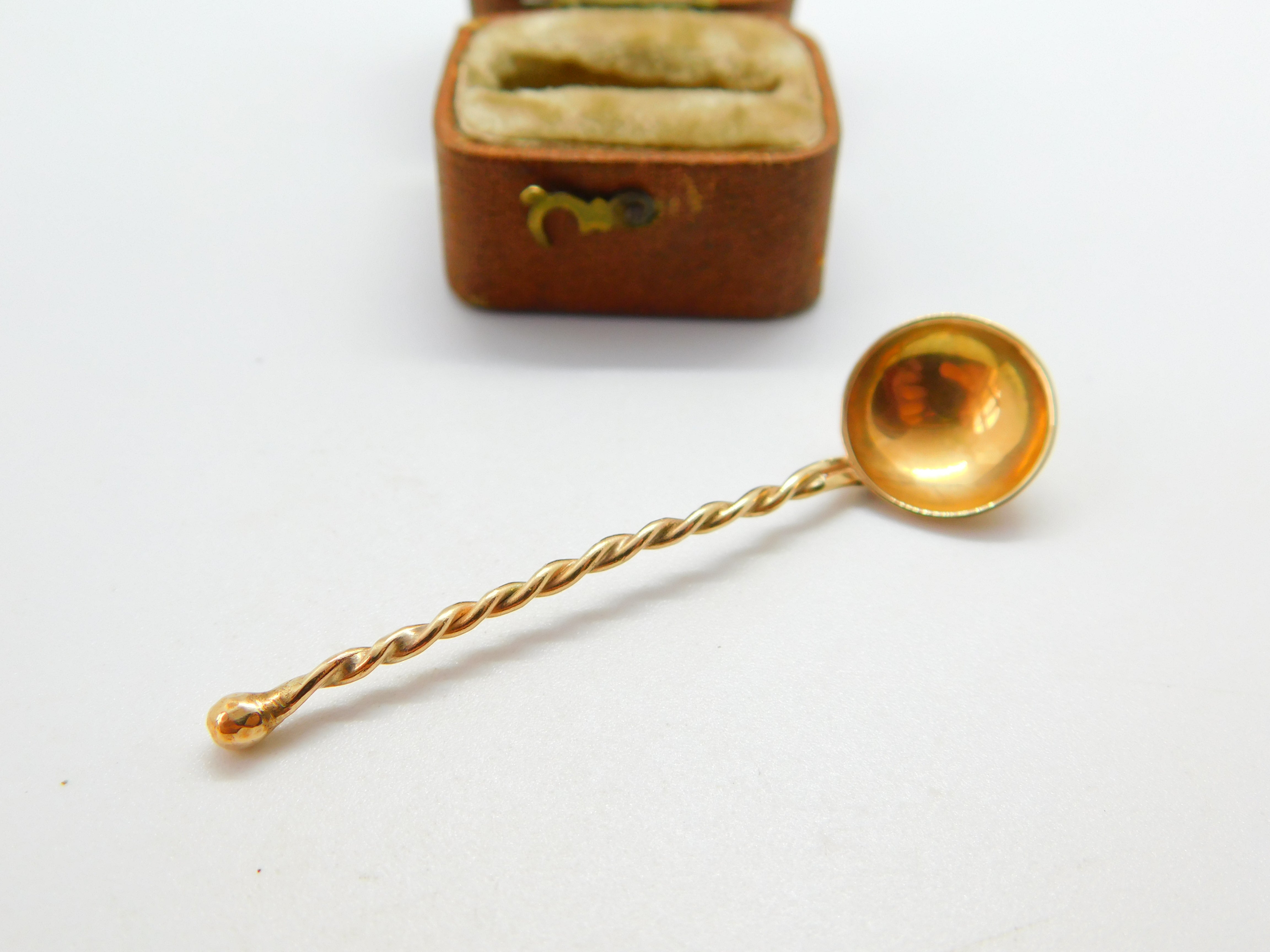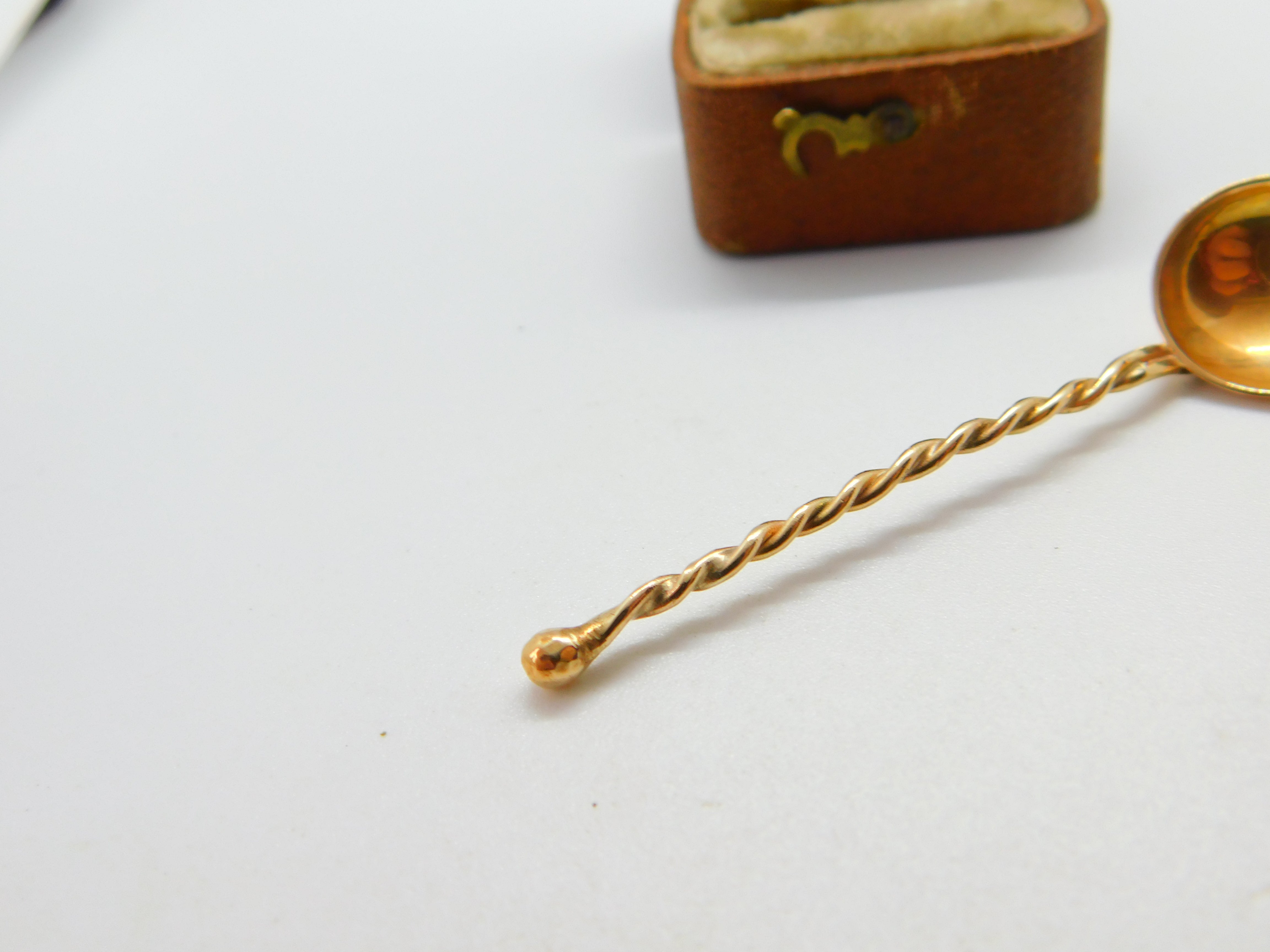 9ct Yellow Gold Twisted Stem Salt Spoon 1993 London Vintage
