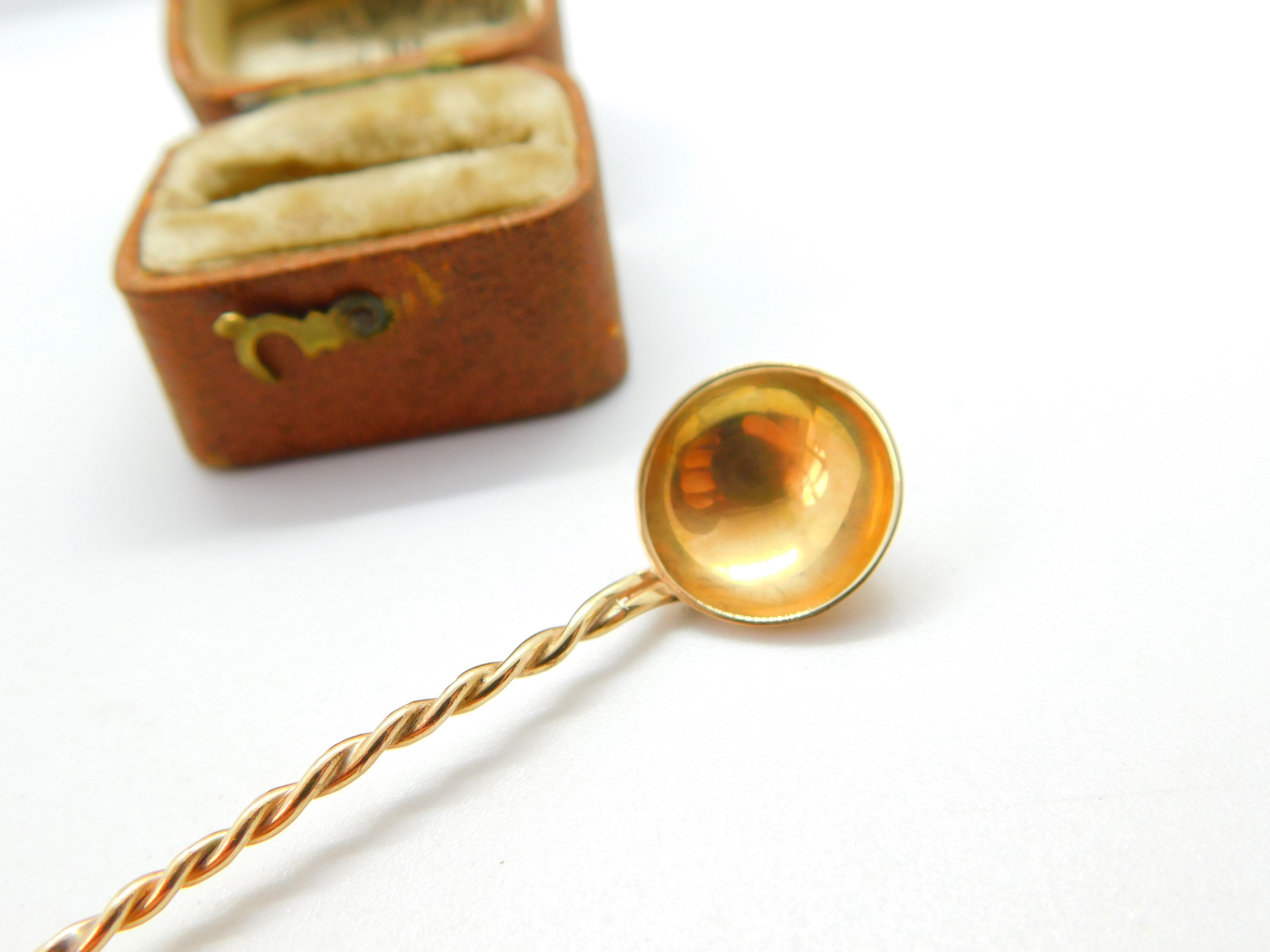 Details: A fantastic and wonderfully designed vintage 9ct yellow gold minimal salt spoon with lovely twisted stem hallmarked to the reverse of the bowl London 1993. Very unusual to find gold items rather than jewellery. This is a wonderful item that would make a perfect gift or addition to any collection. The BOX pictured is for PRESENTATION ONLY and is NOT included in the listings but used to frame the pictures unless specifically stated otherwise.