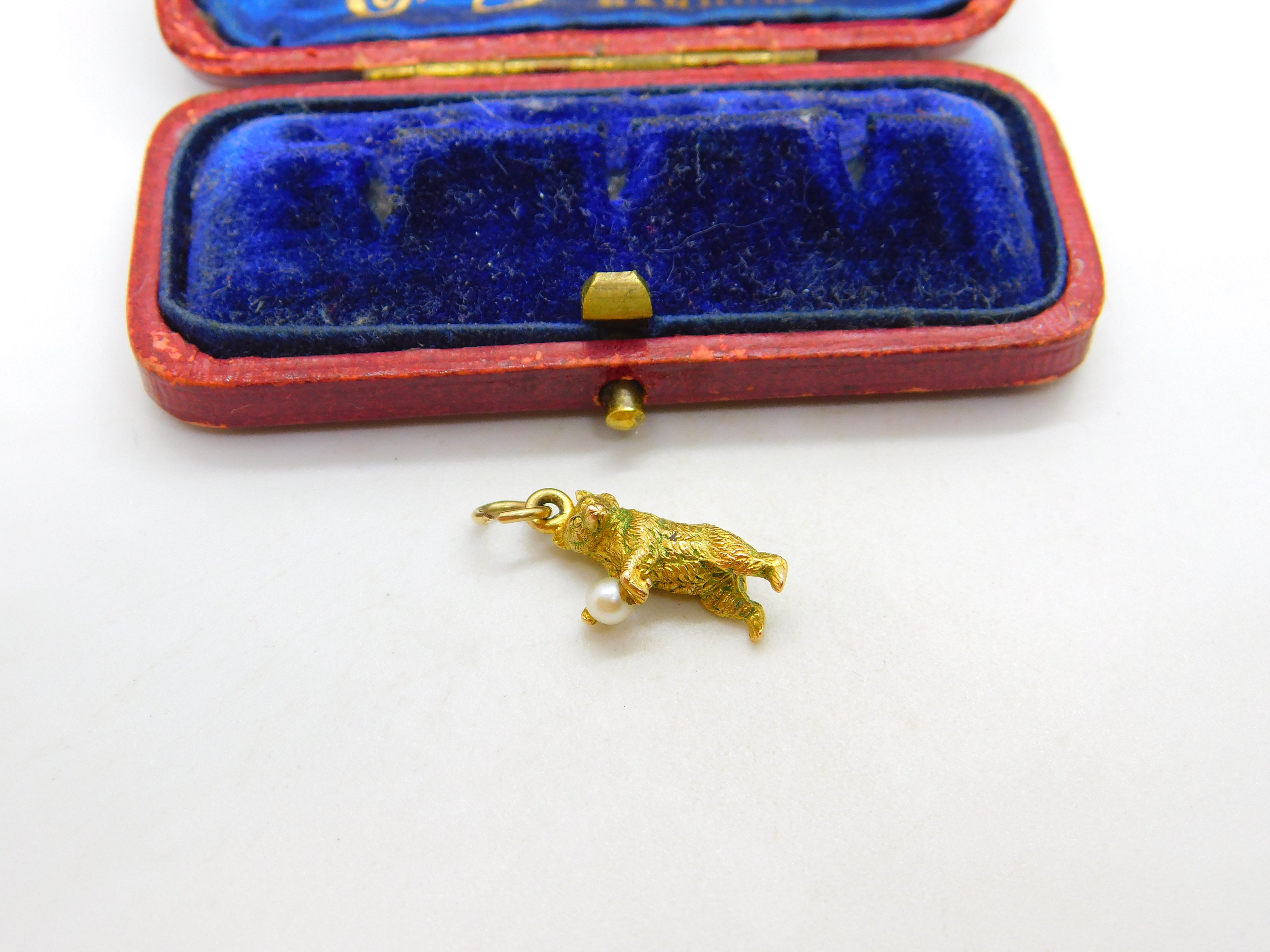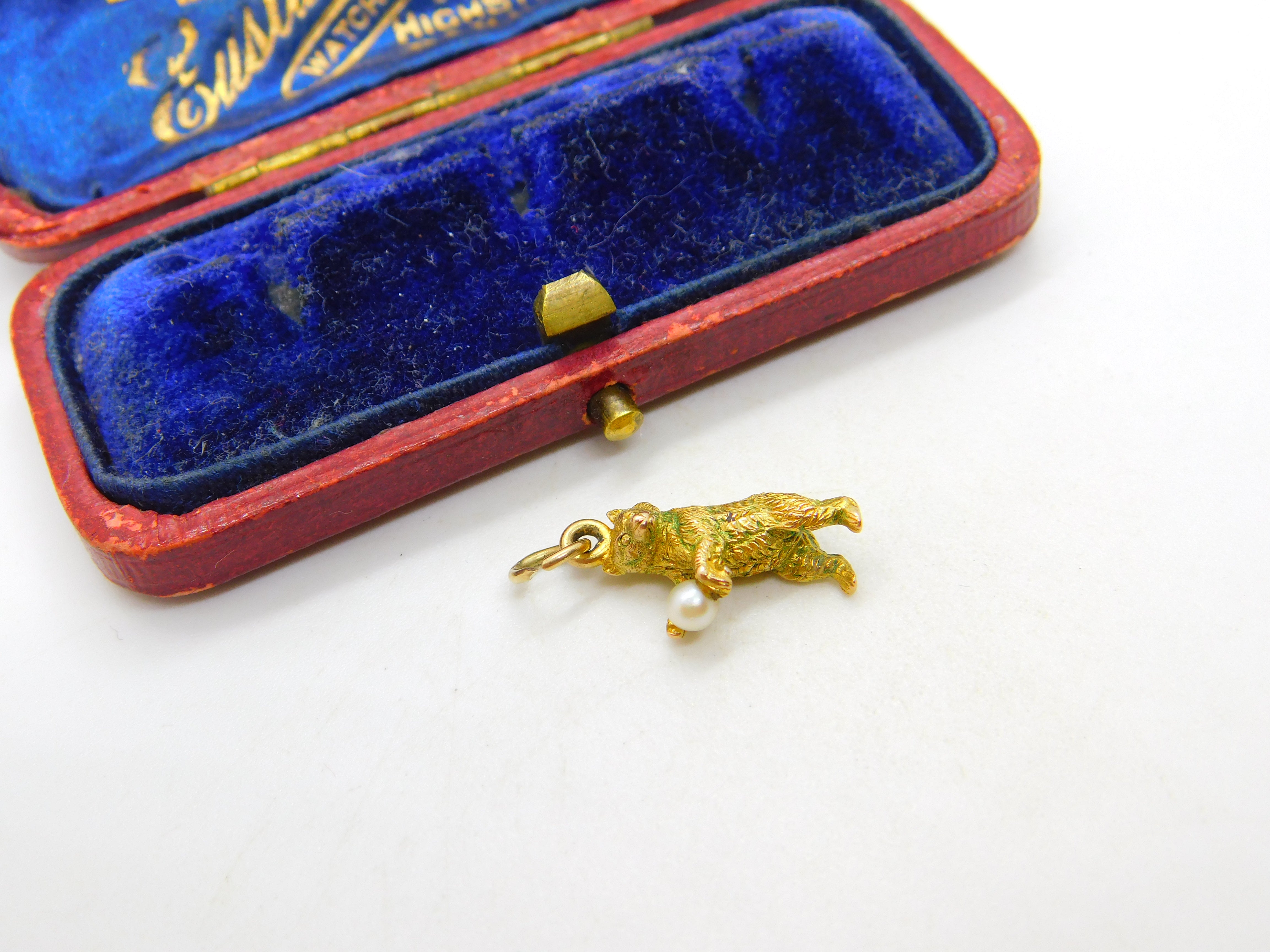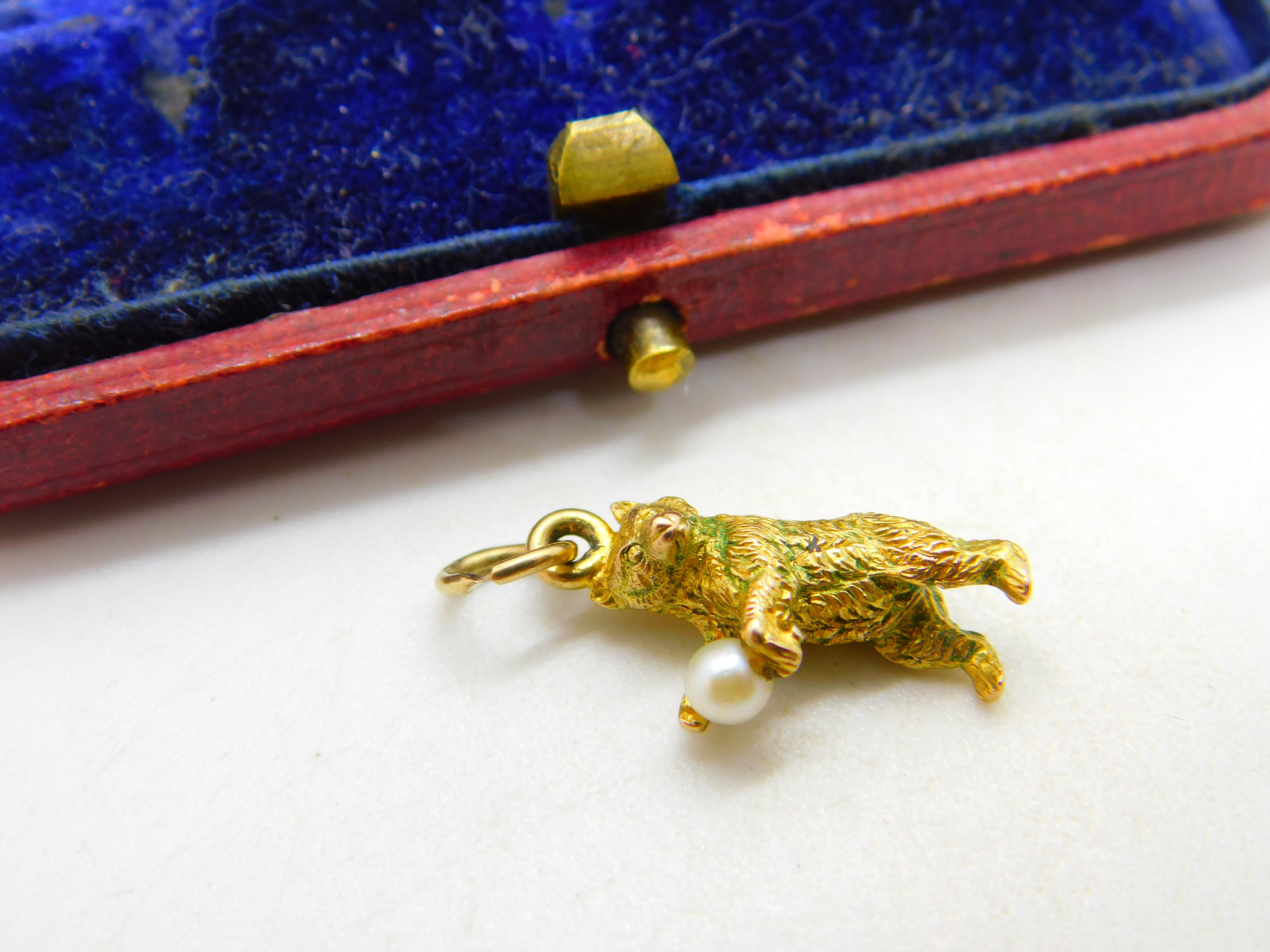 9ct Yellow Gold Warwick Bear with Pearl Charm Pendant Vintage 1963 London
