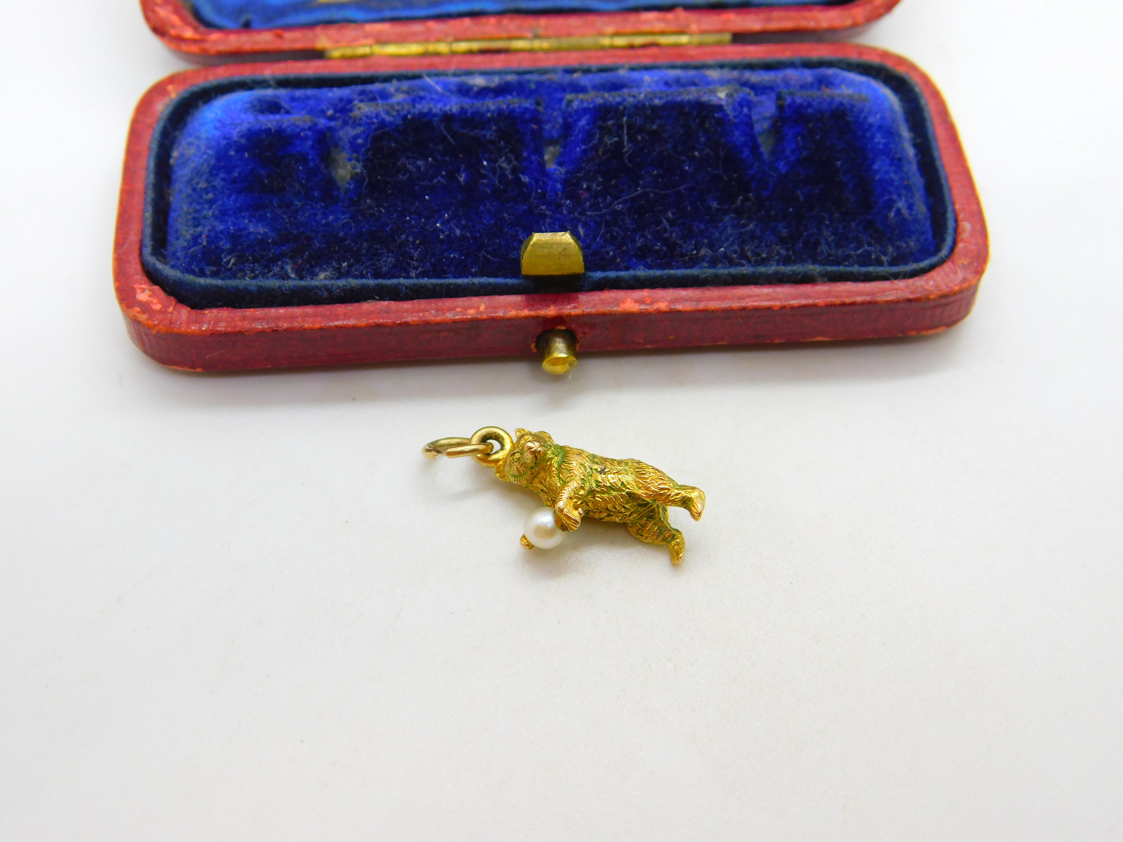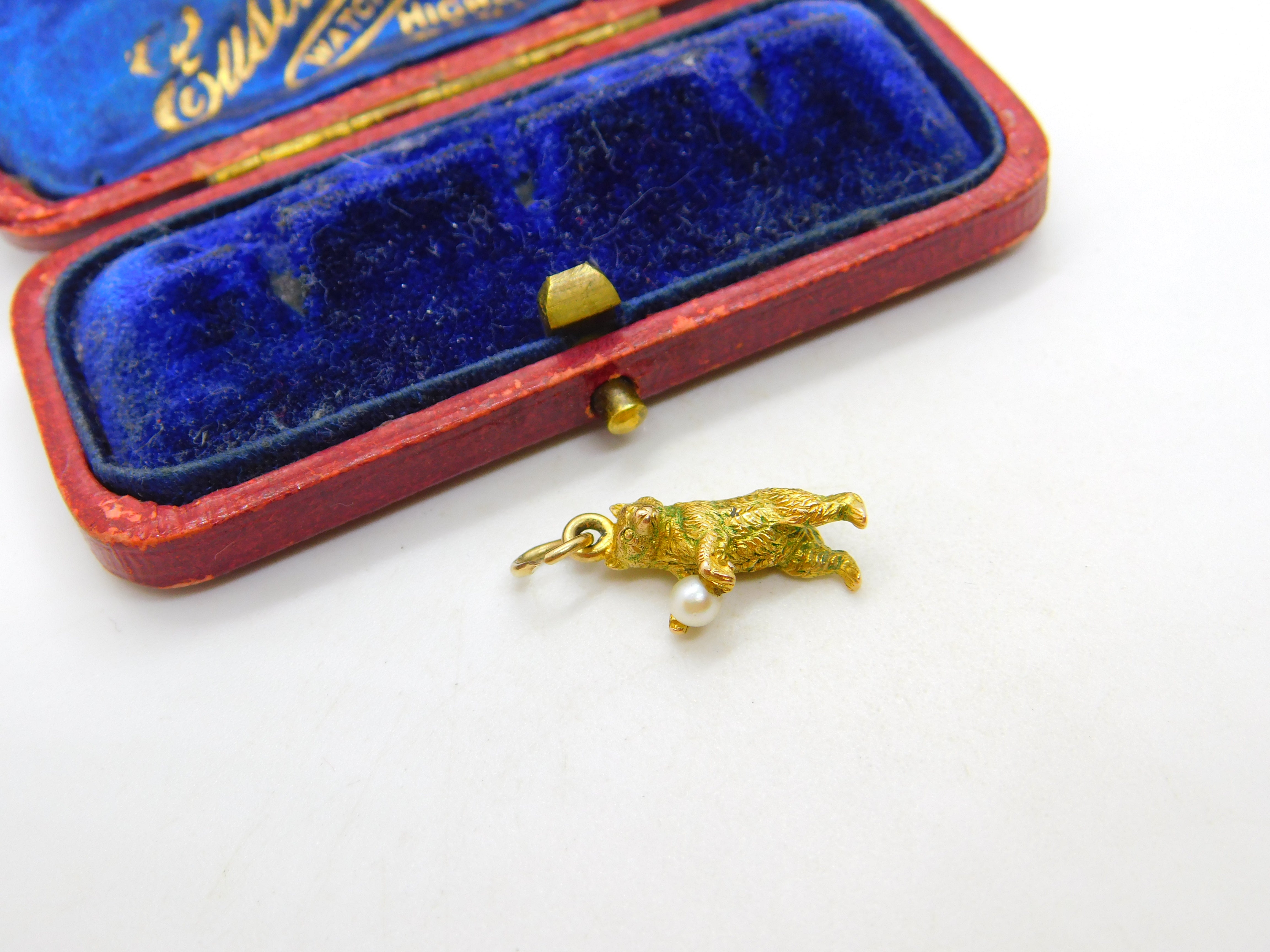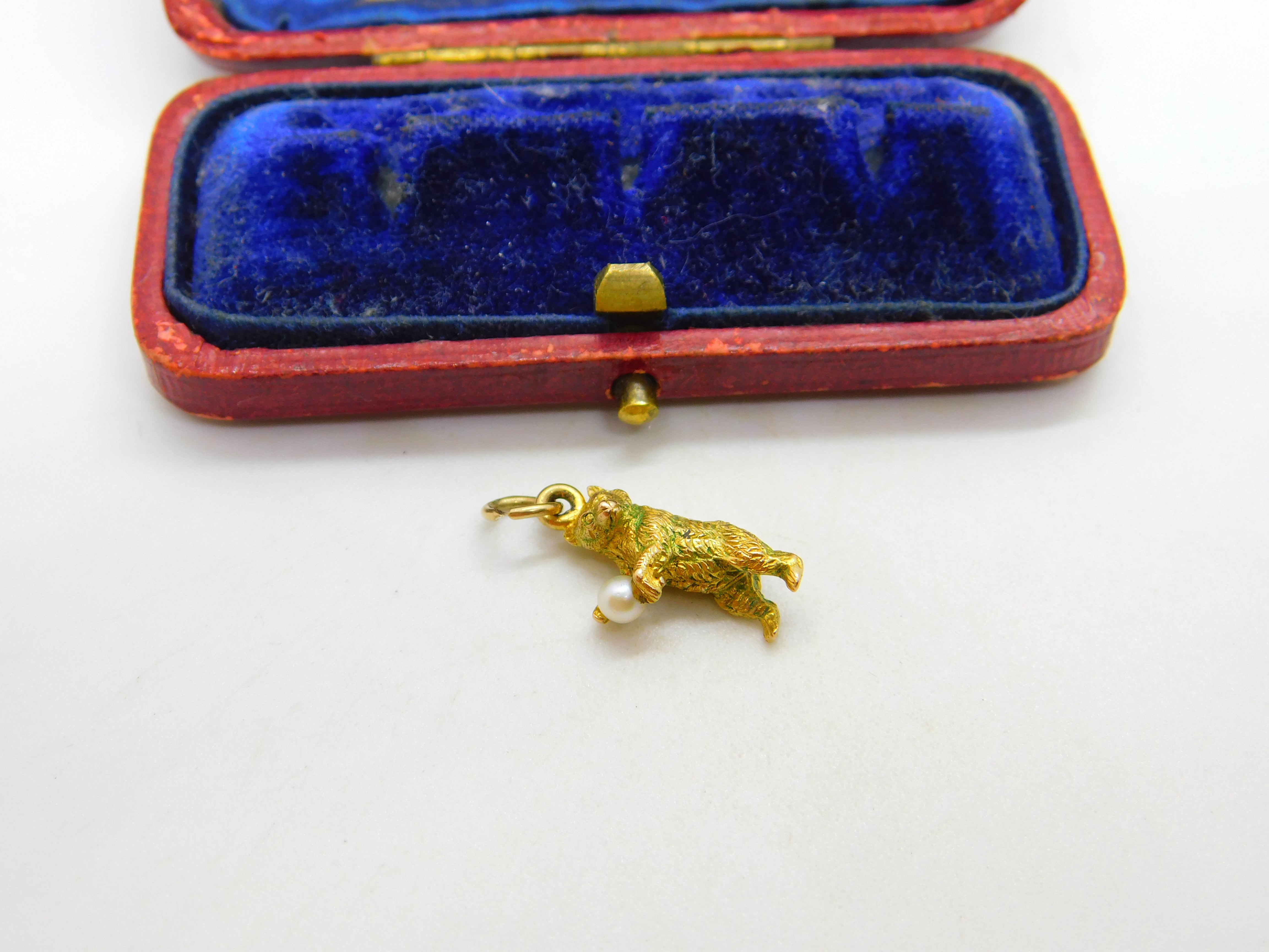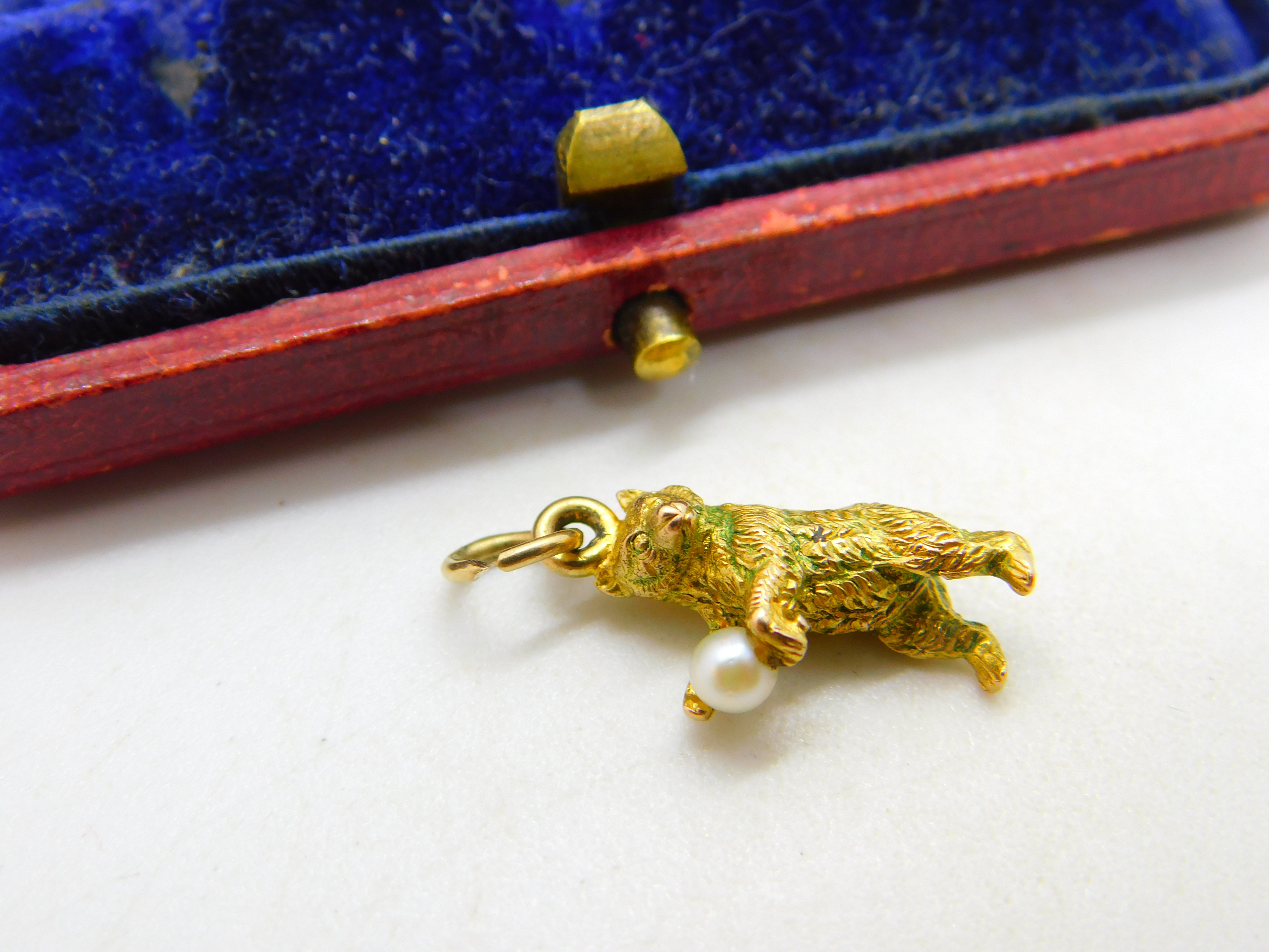 9ct Yellow Gold Warwick Bear with Pearl Charm Pendant Vintage 1963 London