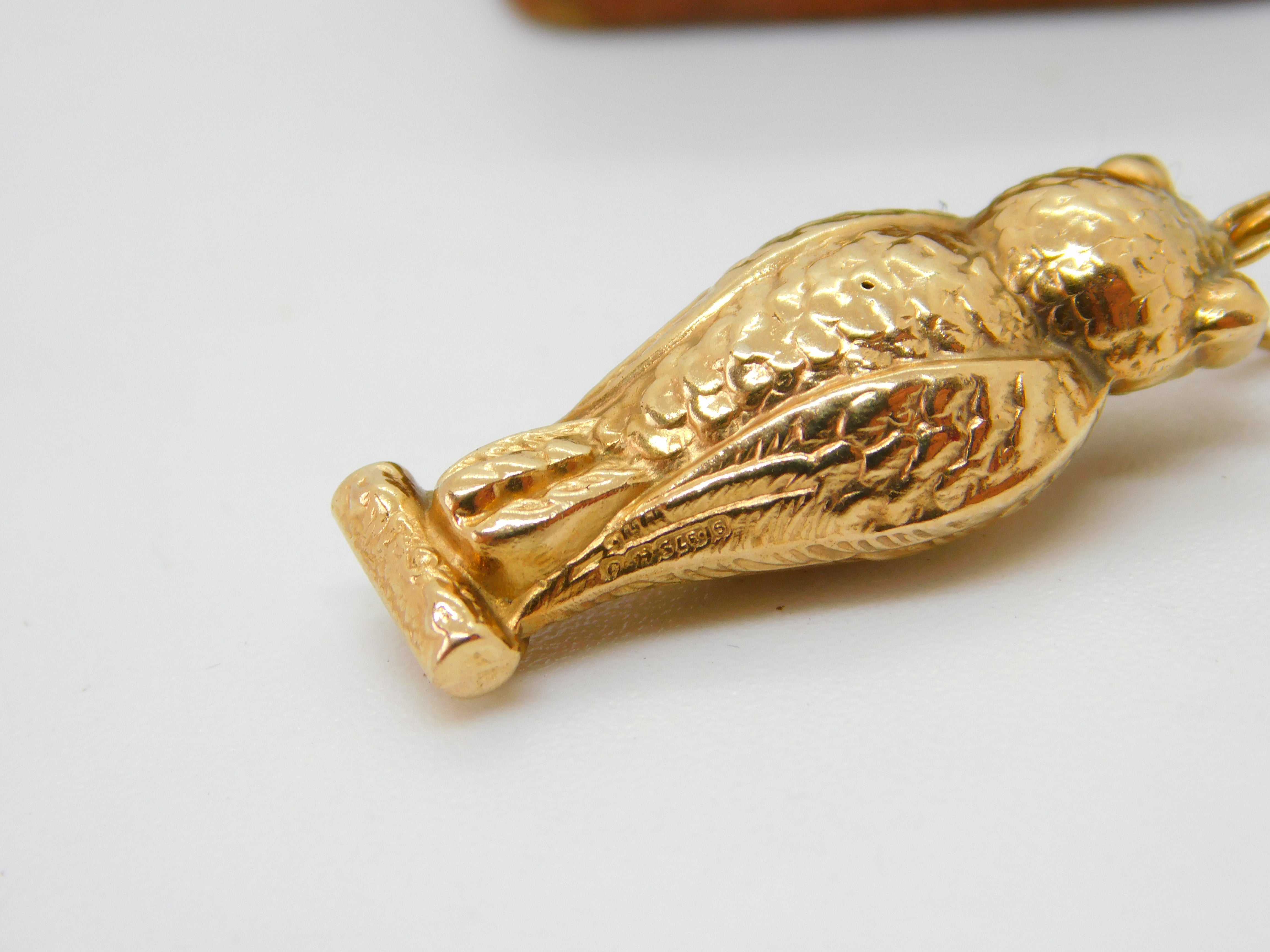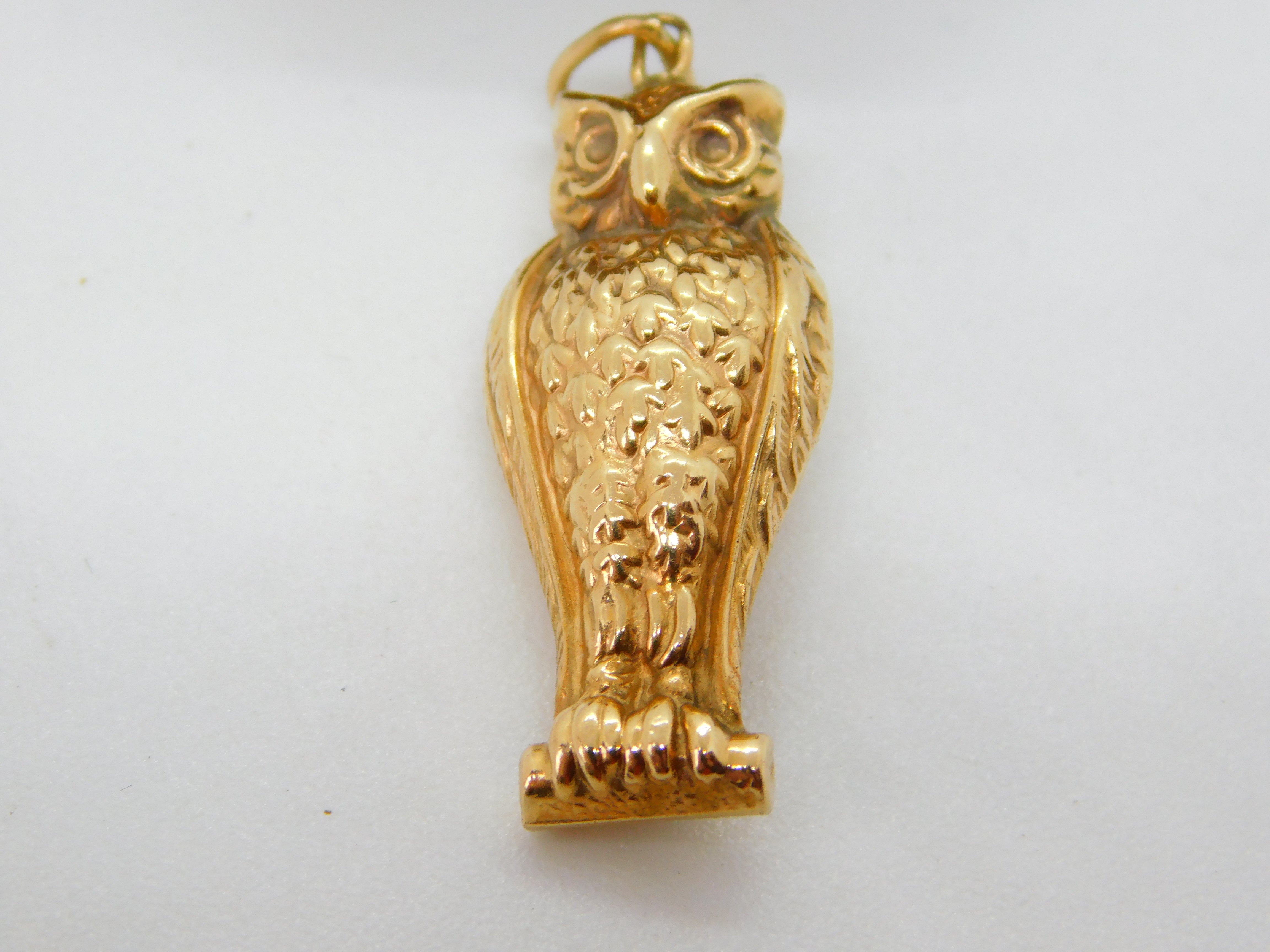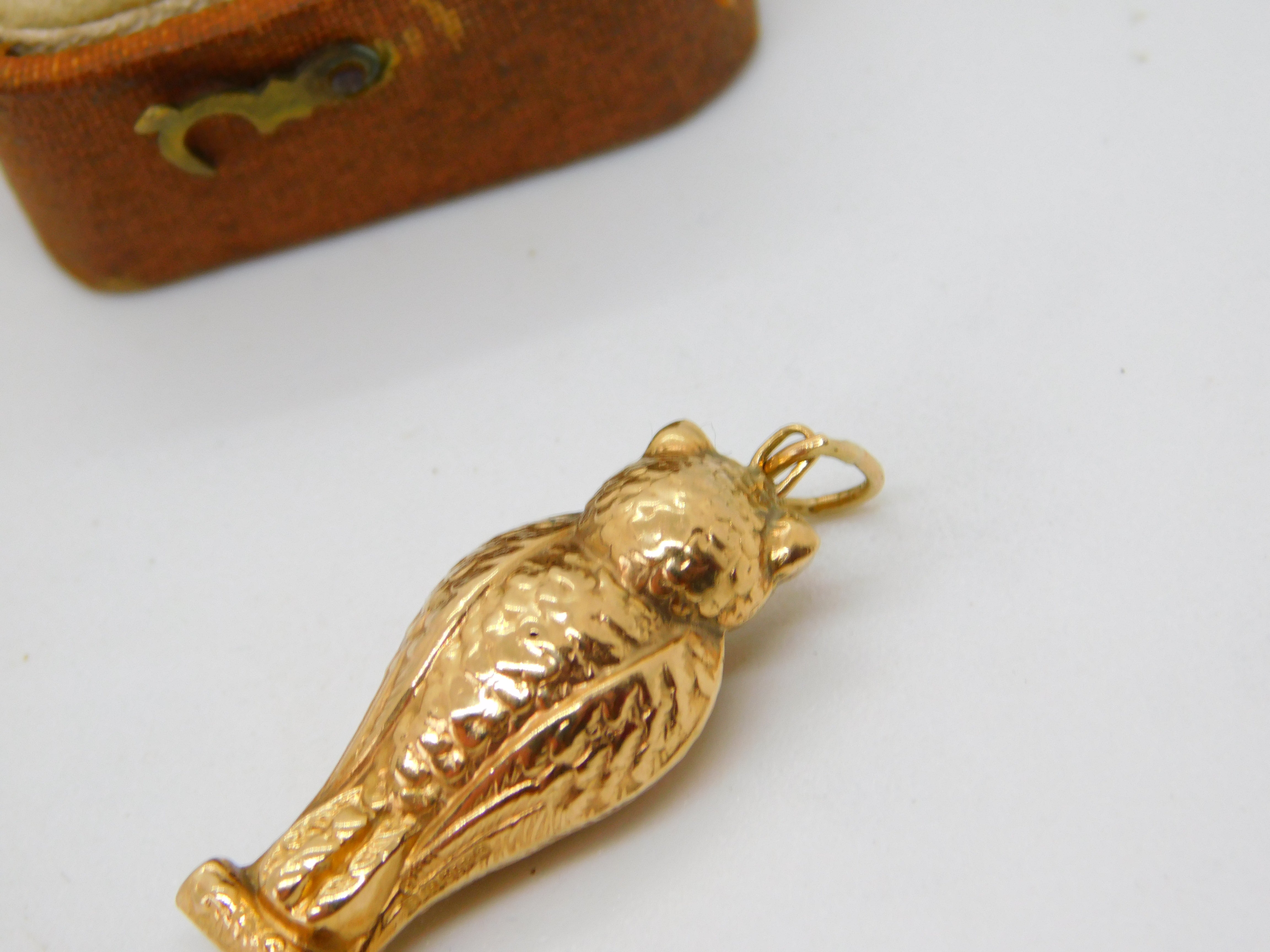 Details: A fantastic and wonderfully designed vintage 9ct yellow gold wise owl charm or pendant with lovely detailing hallmarked Birmingham 1961. This is a wonderful item that would make a perfect gift or addition to any collection. The BOX pictured is for PRESENTATION ONLY and is NOT included in the listings but used to frame the pictures unless specifically stated otherwise.