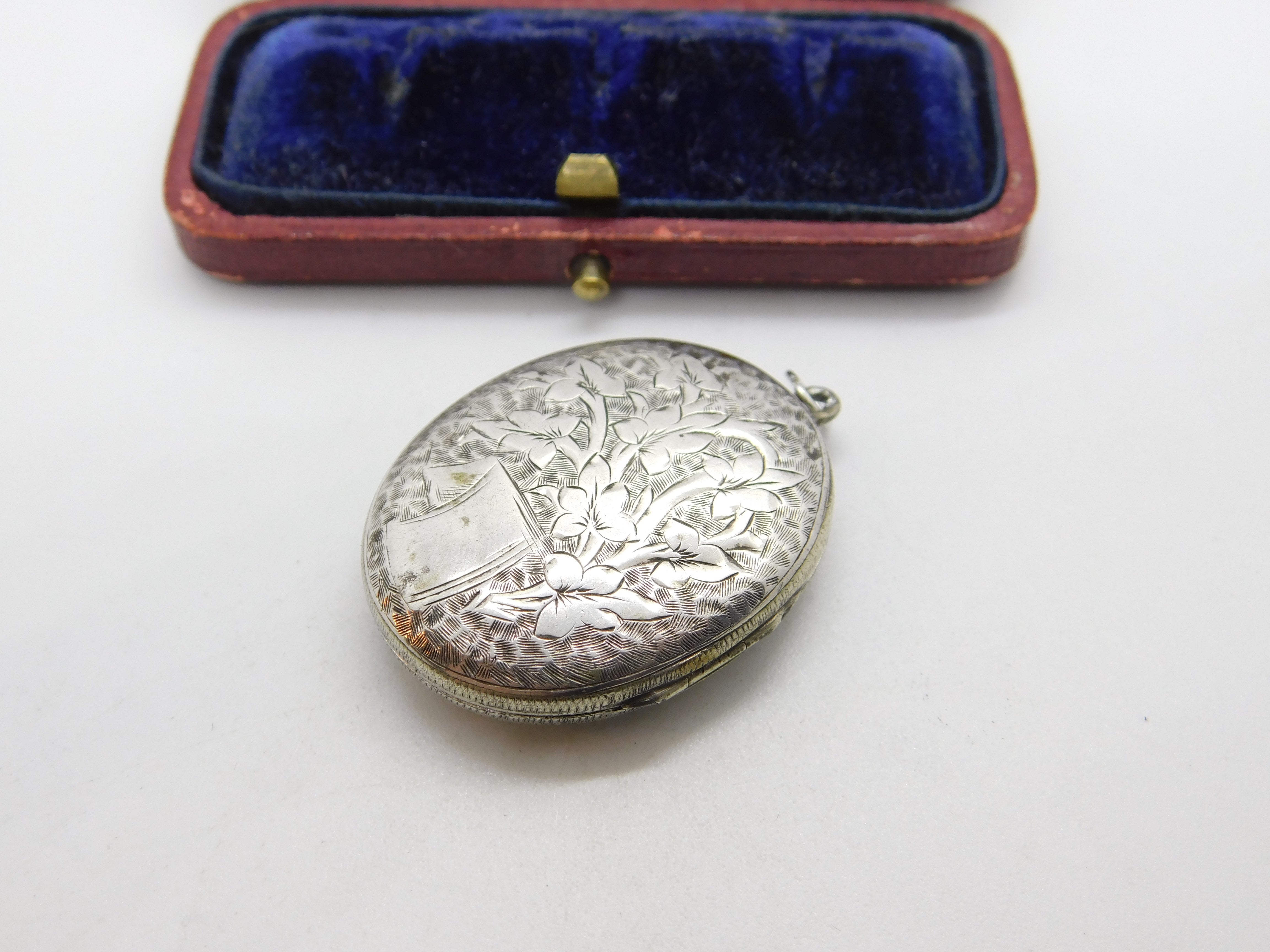 Aesthetic Victorian Sterling Silver Floral Pattern Double Locket Pendant Antique