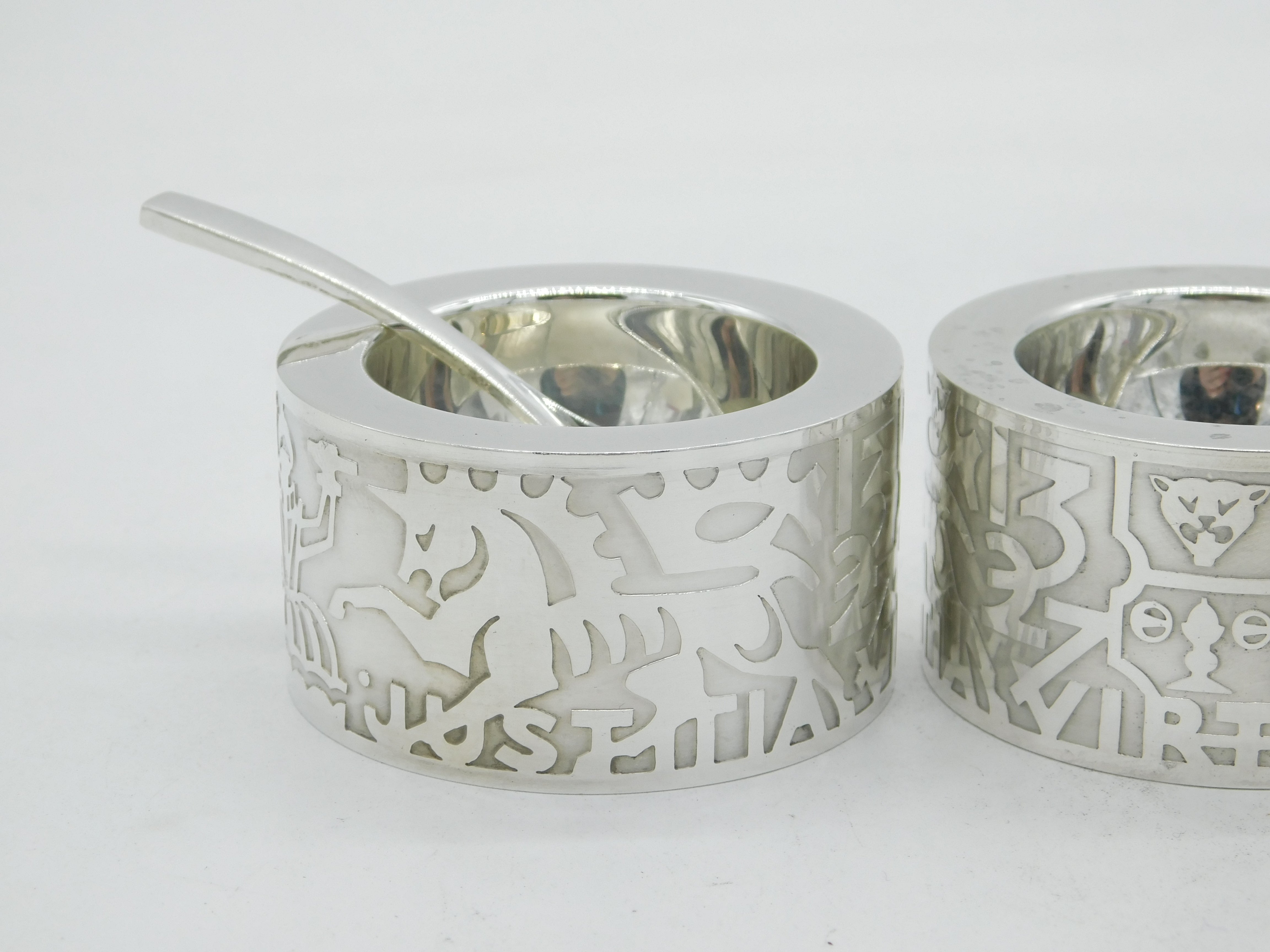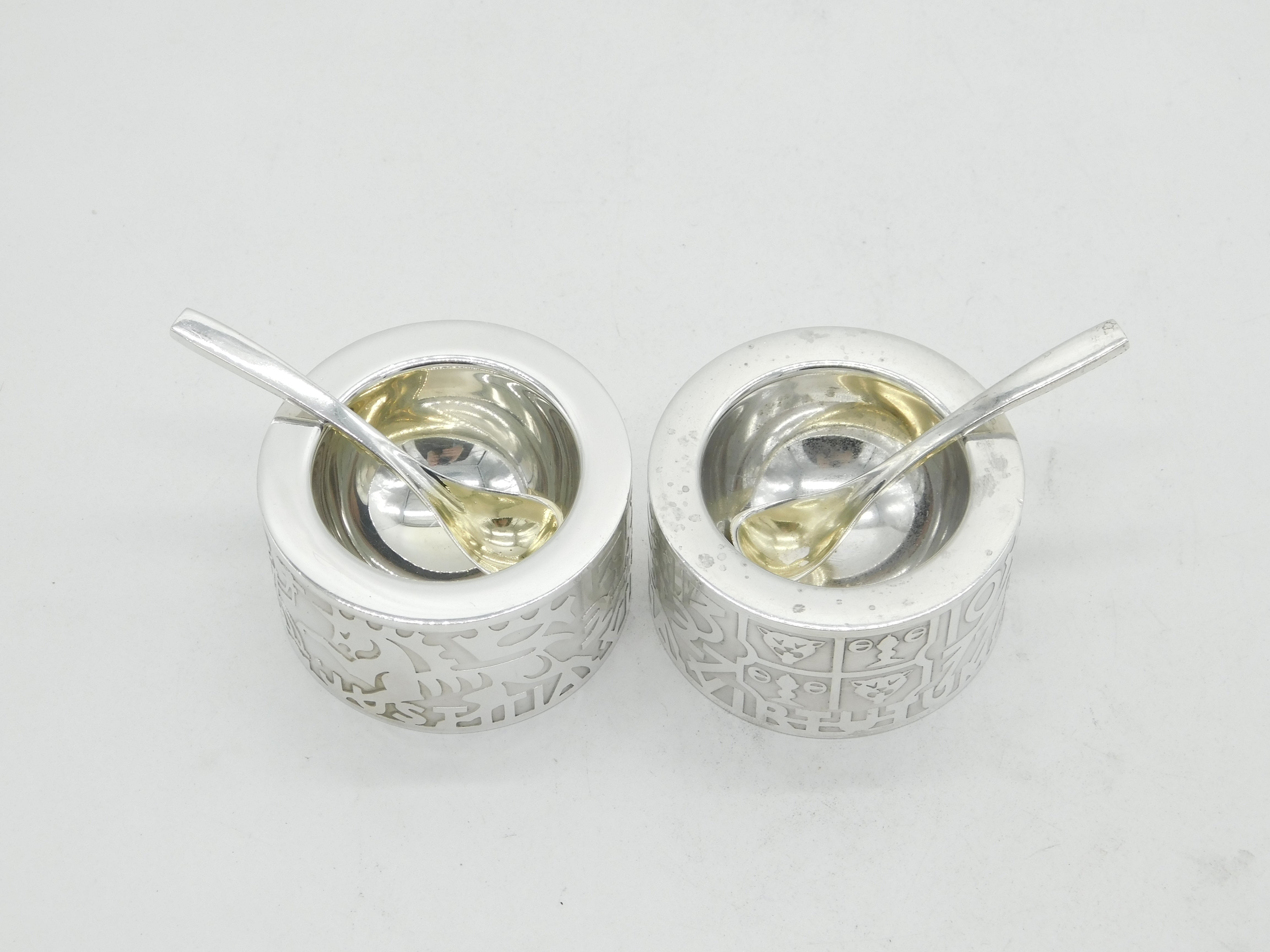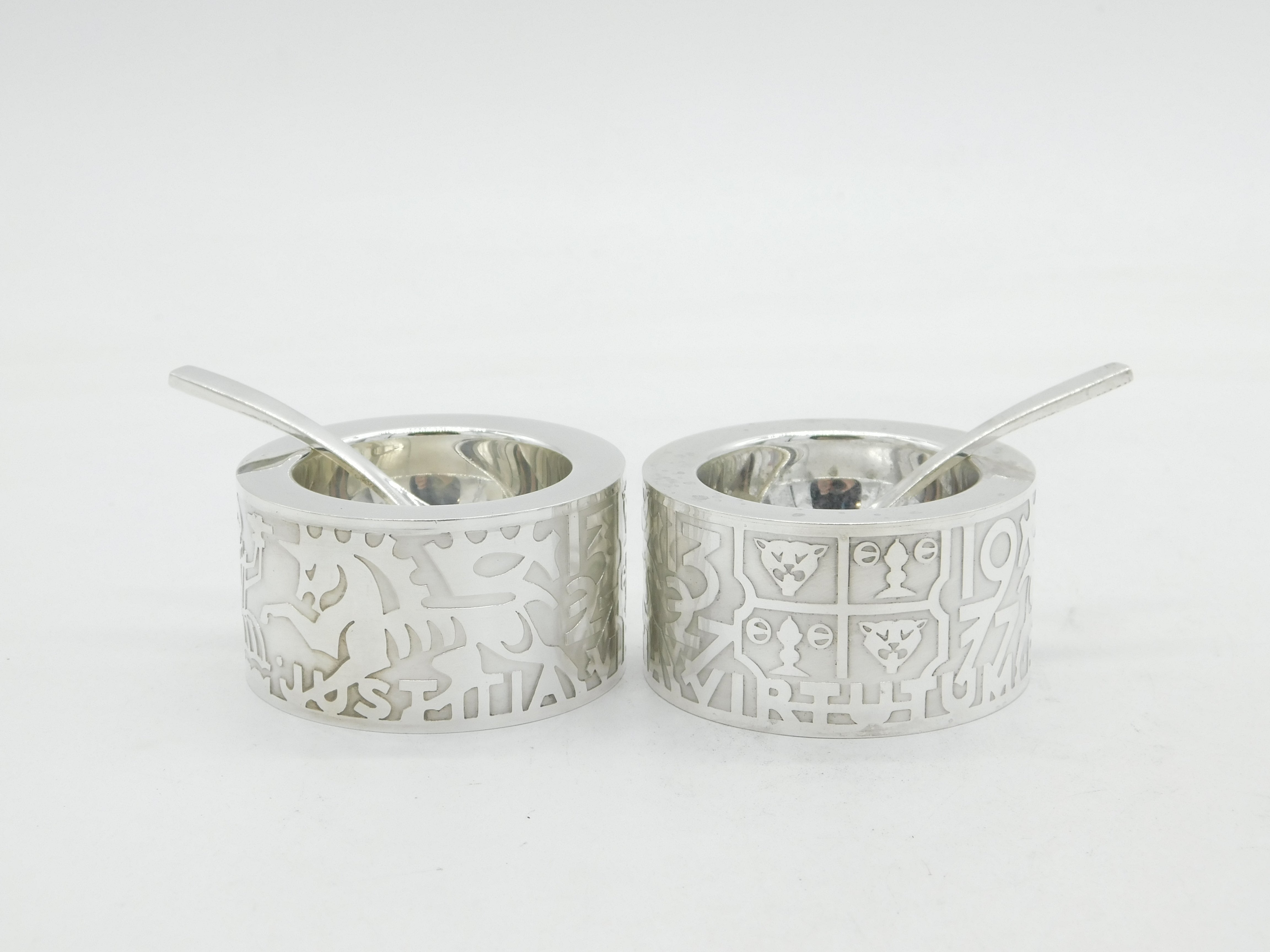 Alex Styles Pair of Sterling Silver Goldsmiths 650th Anniversary Salt Cellars Vintage