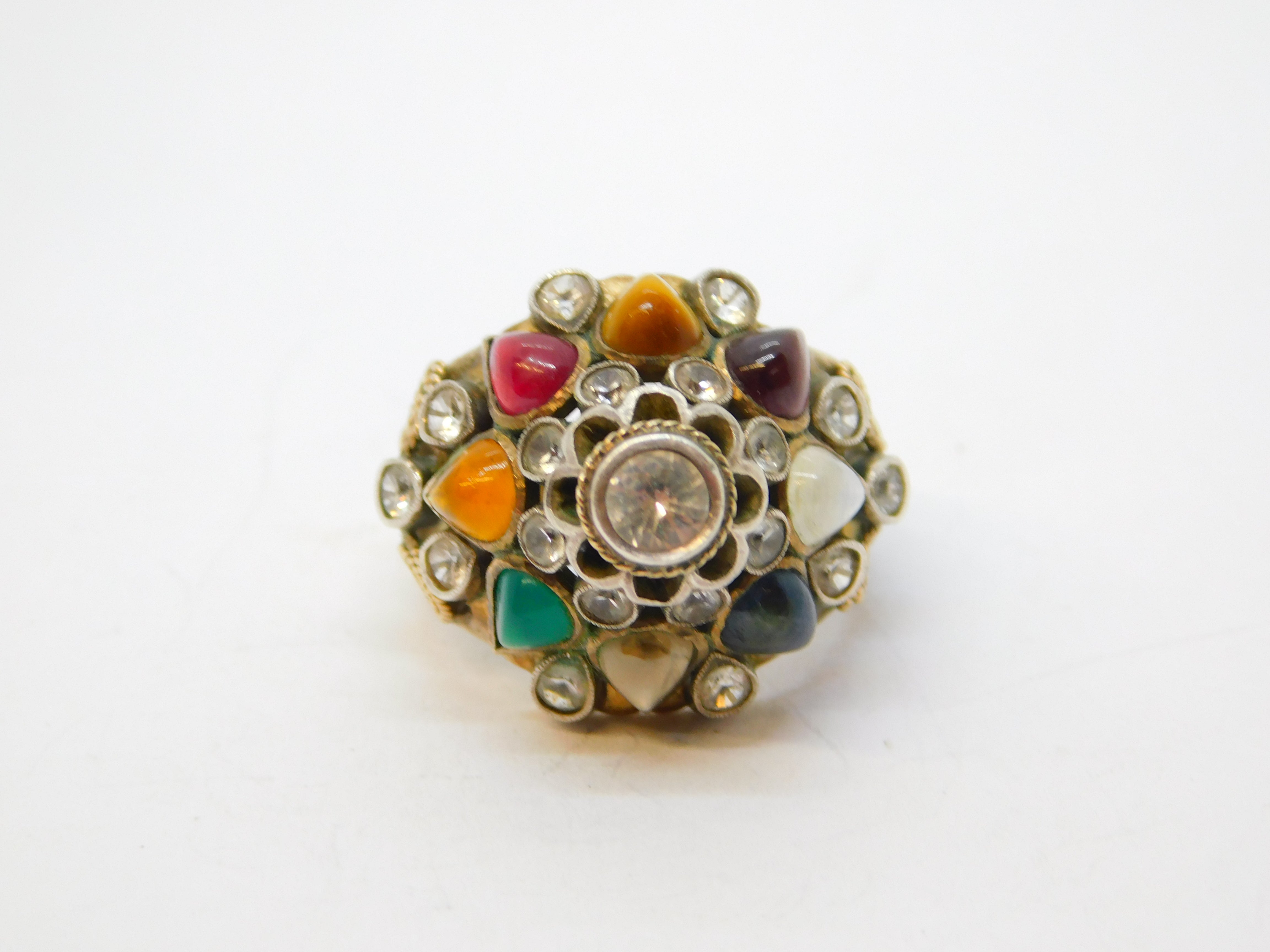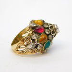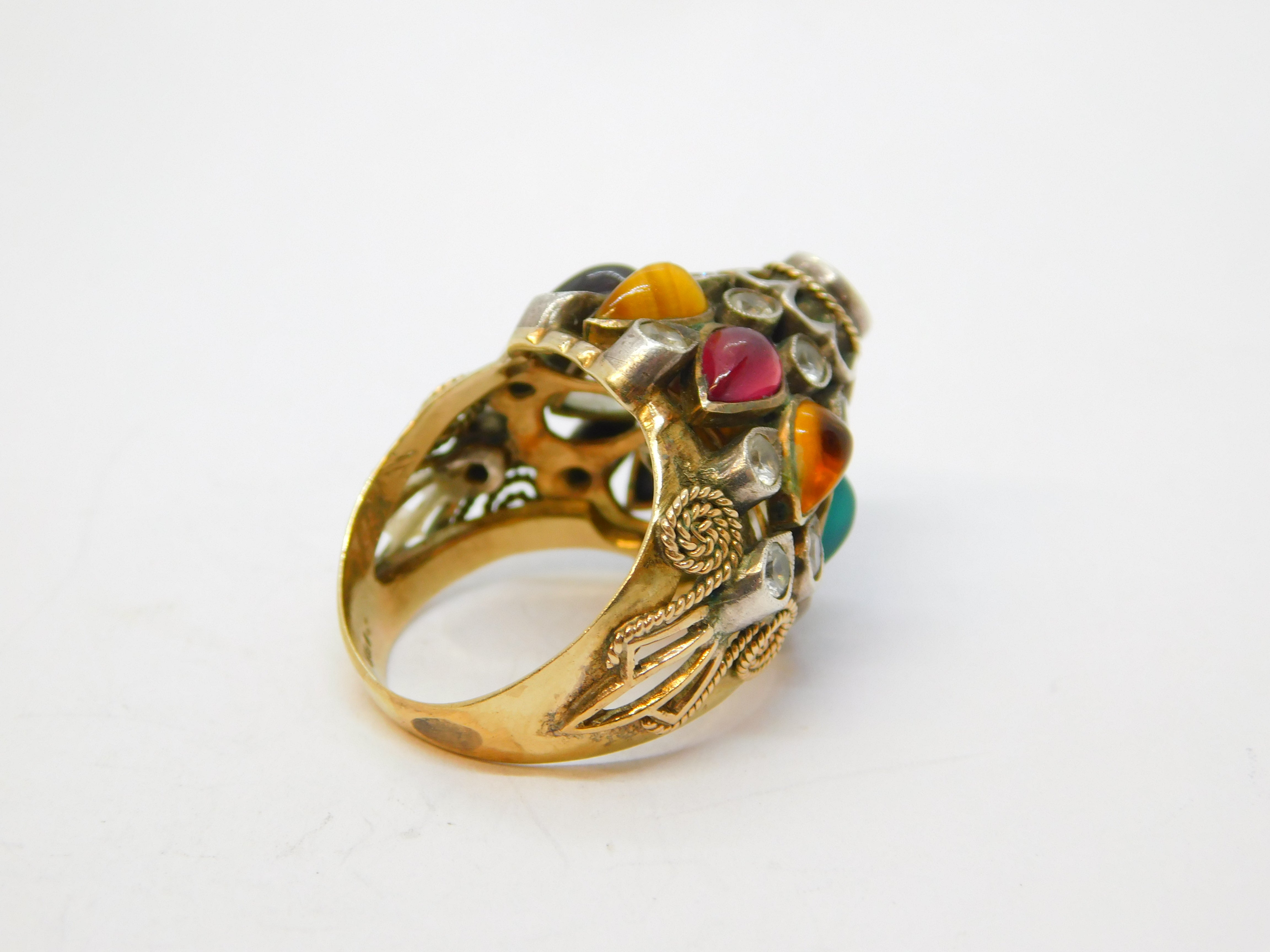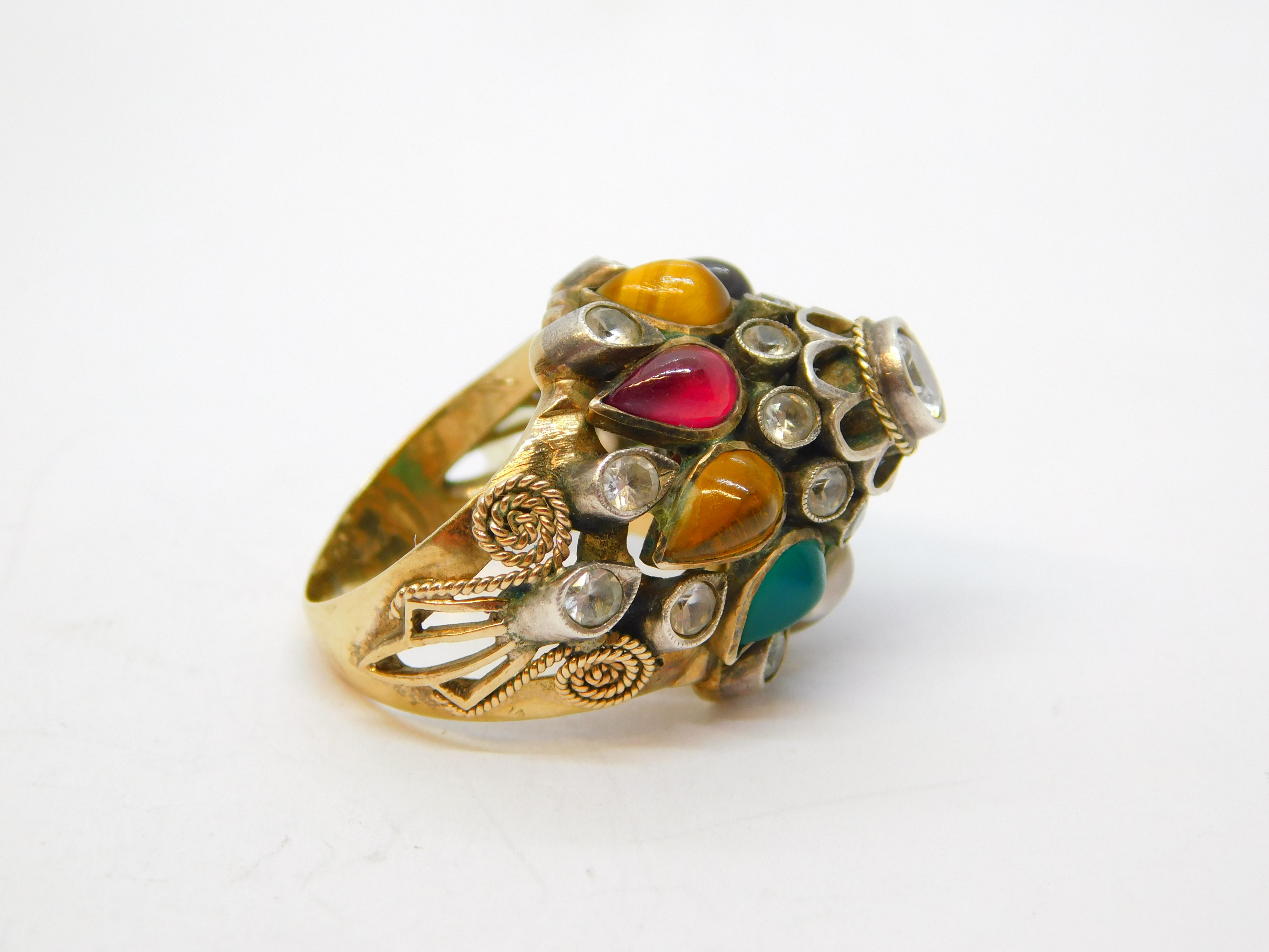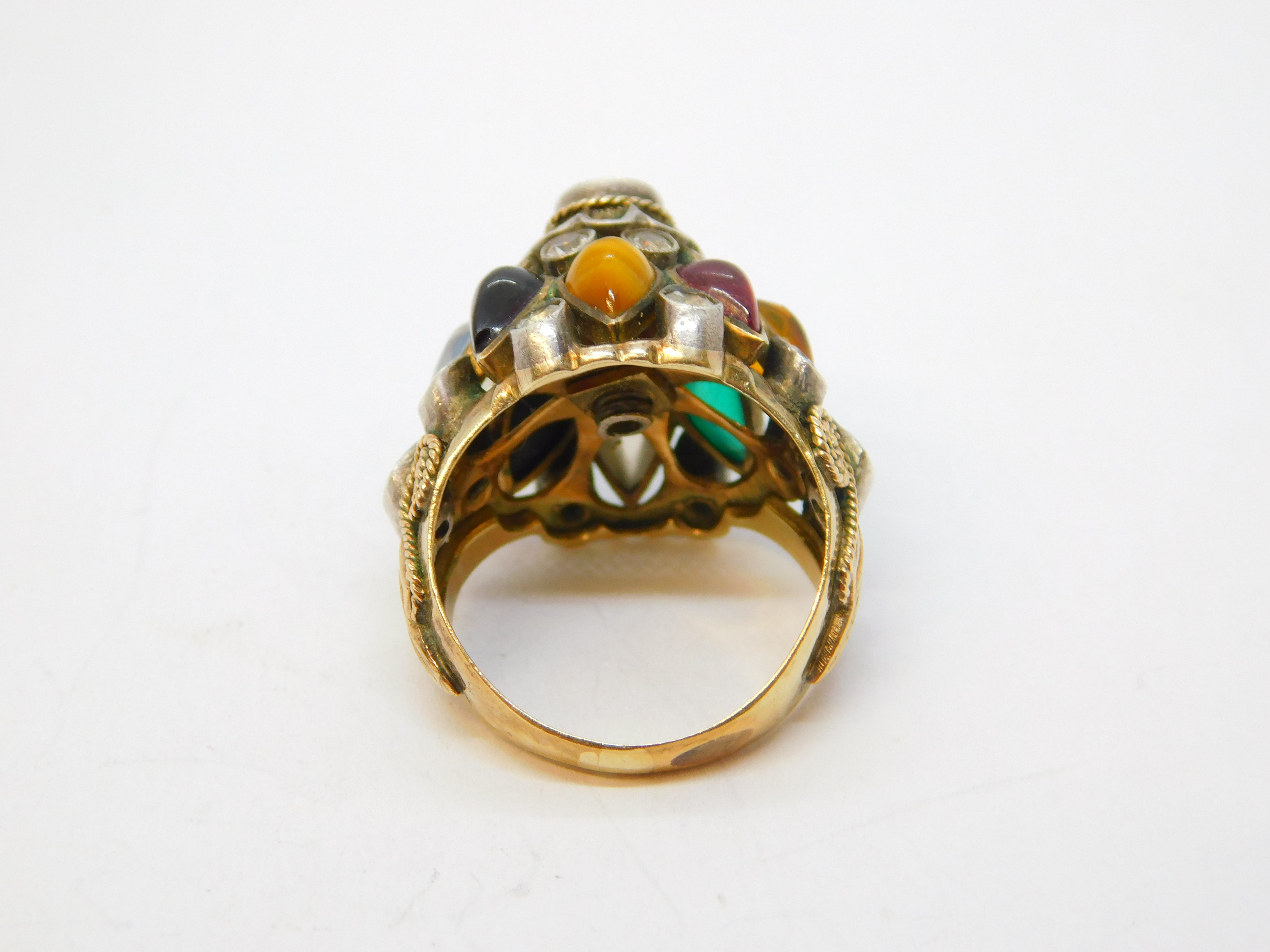 Austro-Hungarian 10ct Gold, Multi-Gem Set Statement Dress Ring Antique c1890