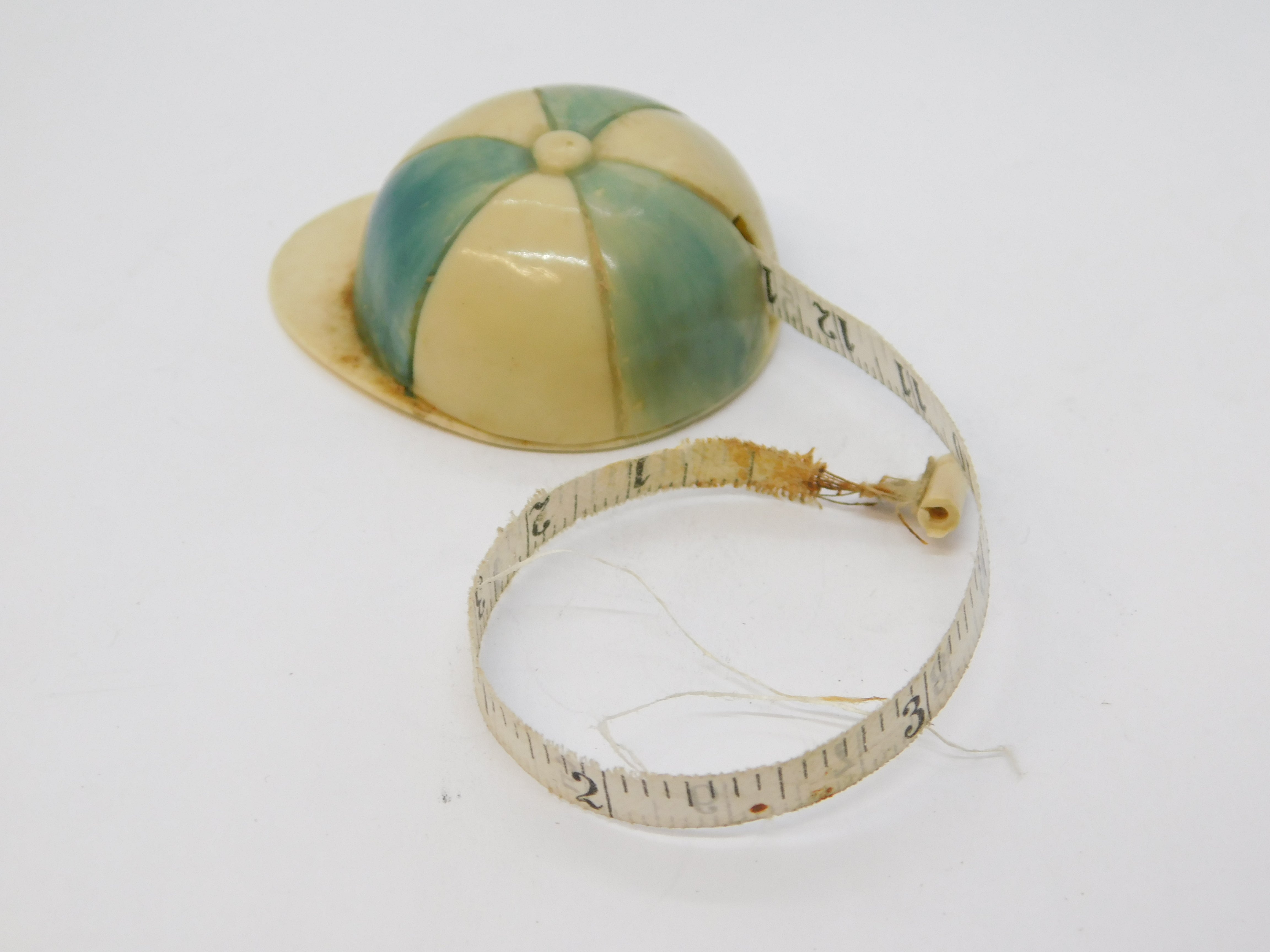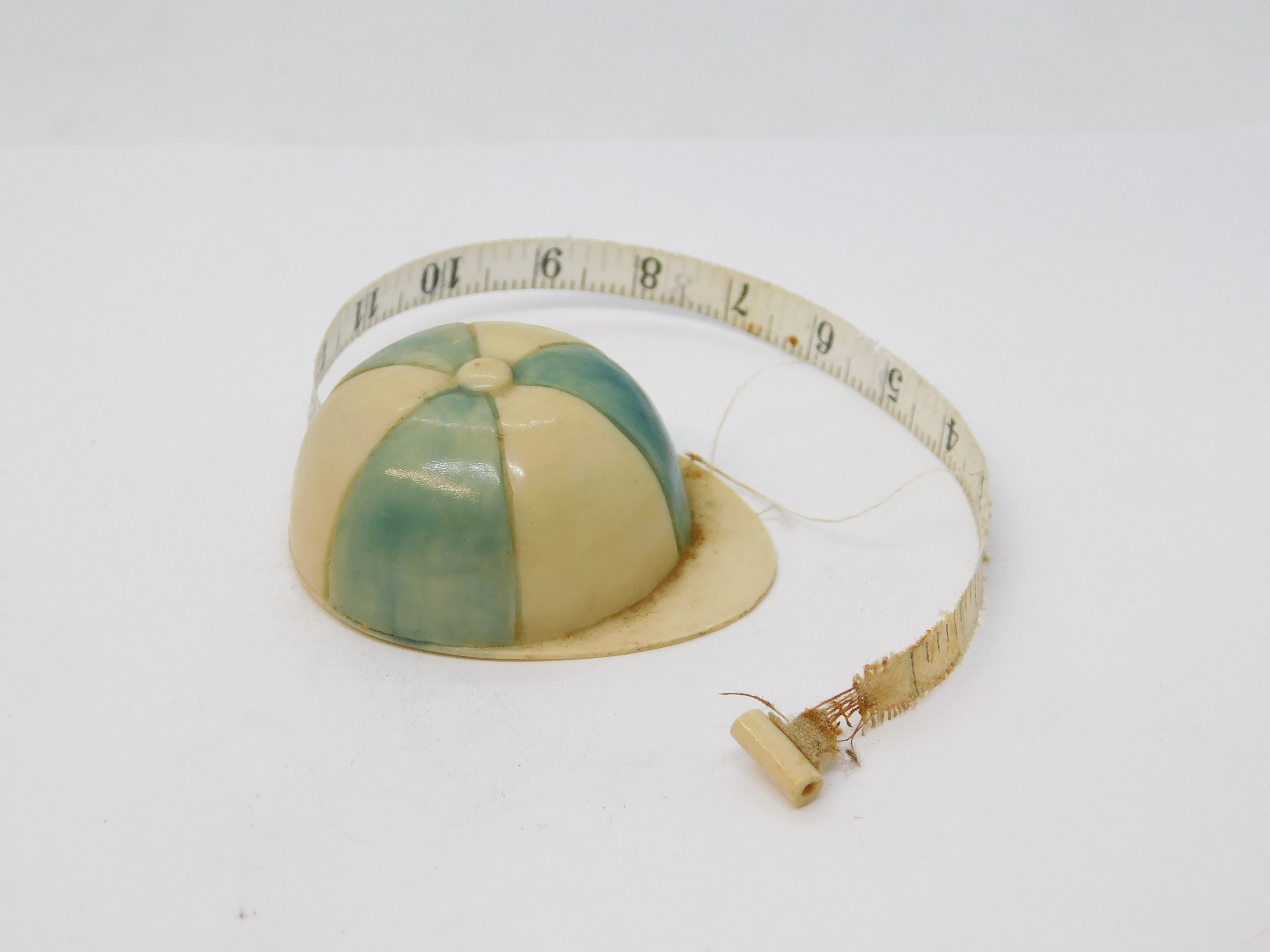 Bakelite Blue-White Novelty Jockey Cap Tape Measure Antique c1920 Art Deco