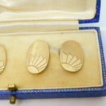 Boxed 9ct Yellow Gold Rising Sun Pattern Gents Cufflinks Vintage 1968 Birmingham