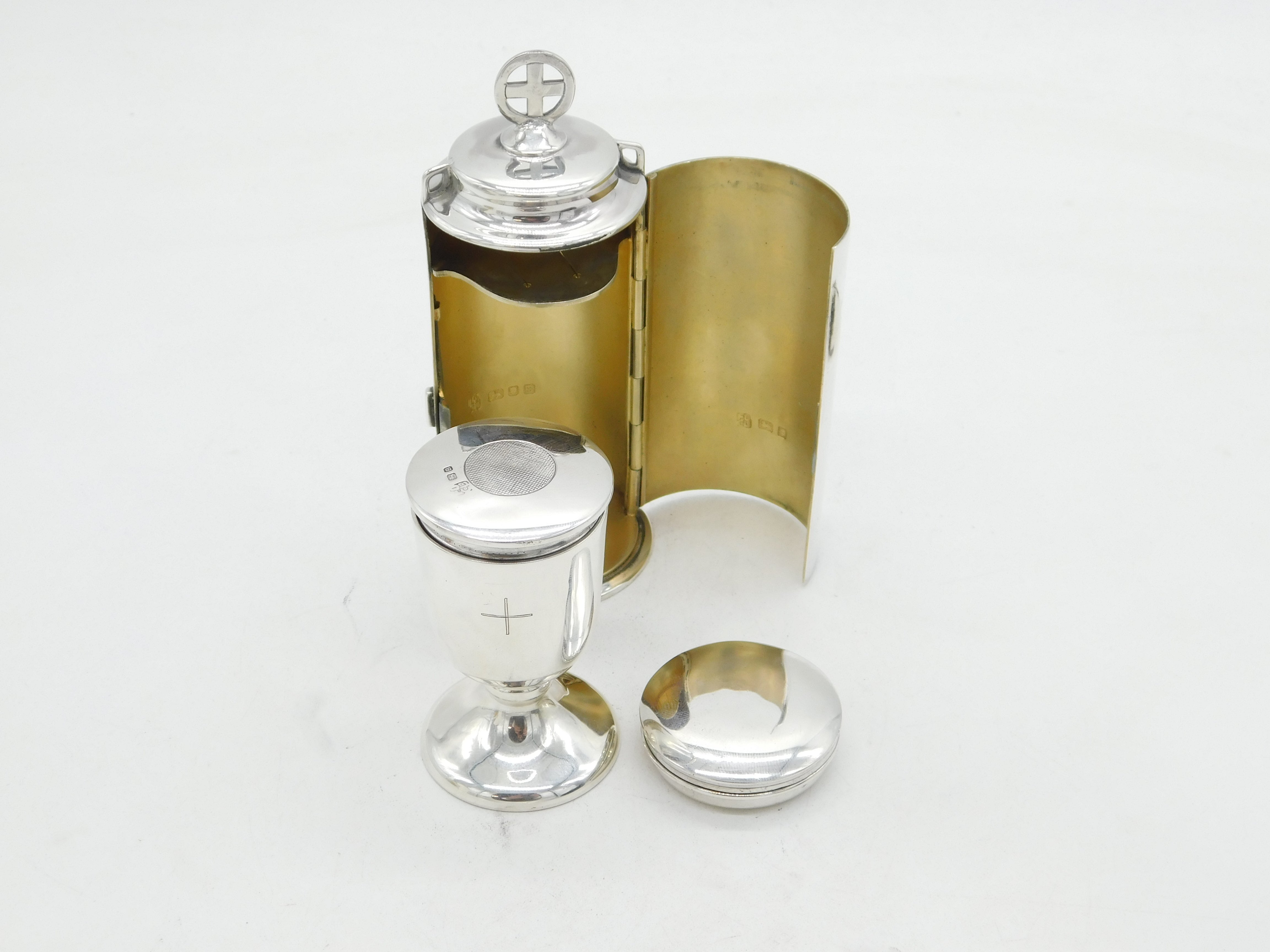 Boxed Sterling Silver Travelling Ecclesiastical Communion Set Antique Art Deco