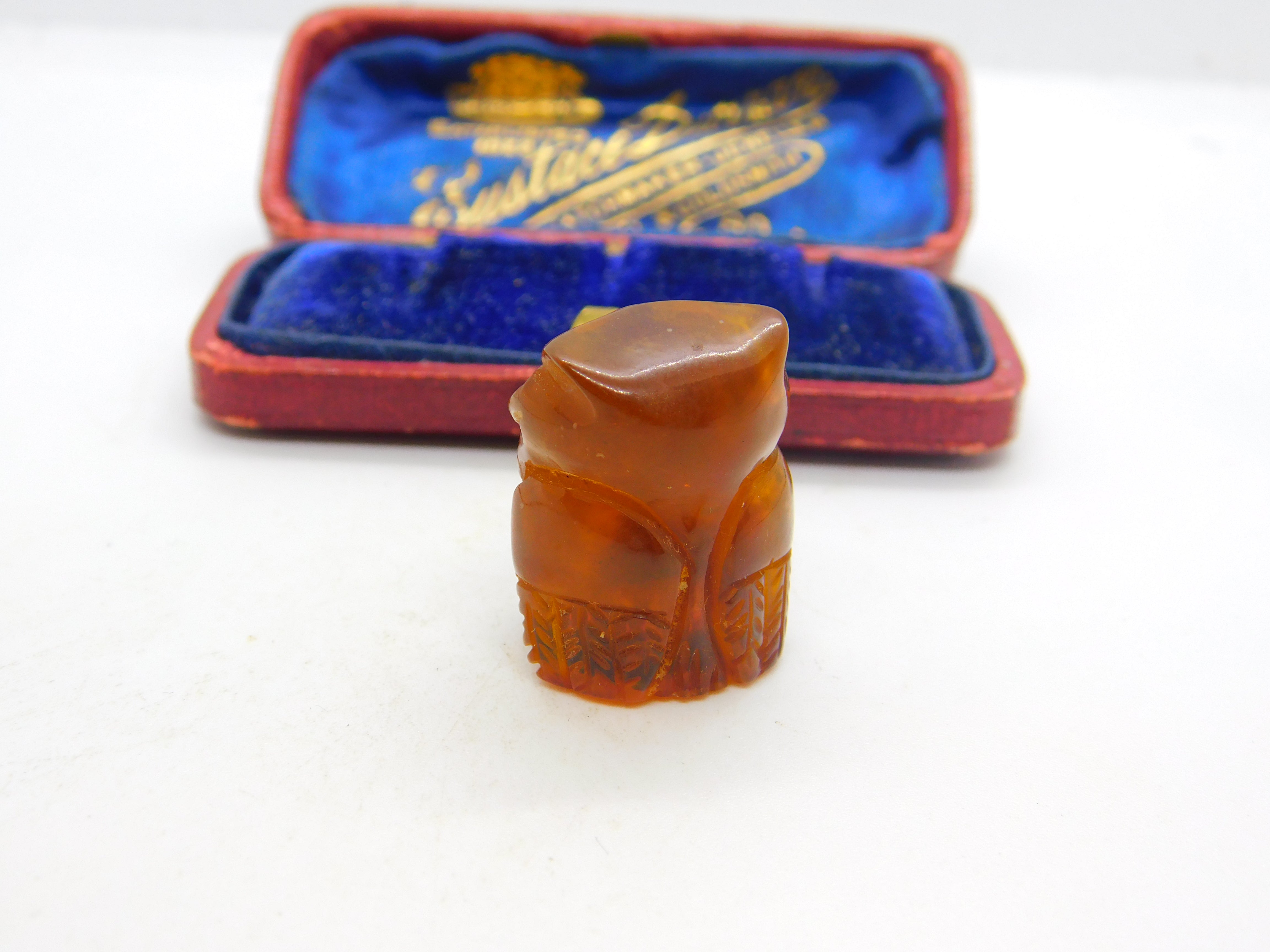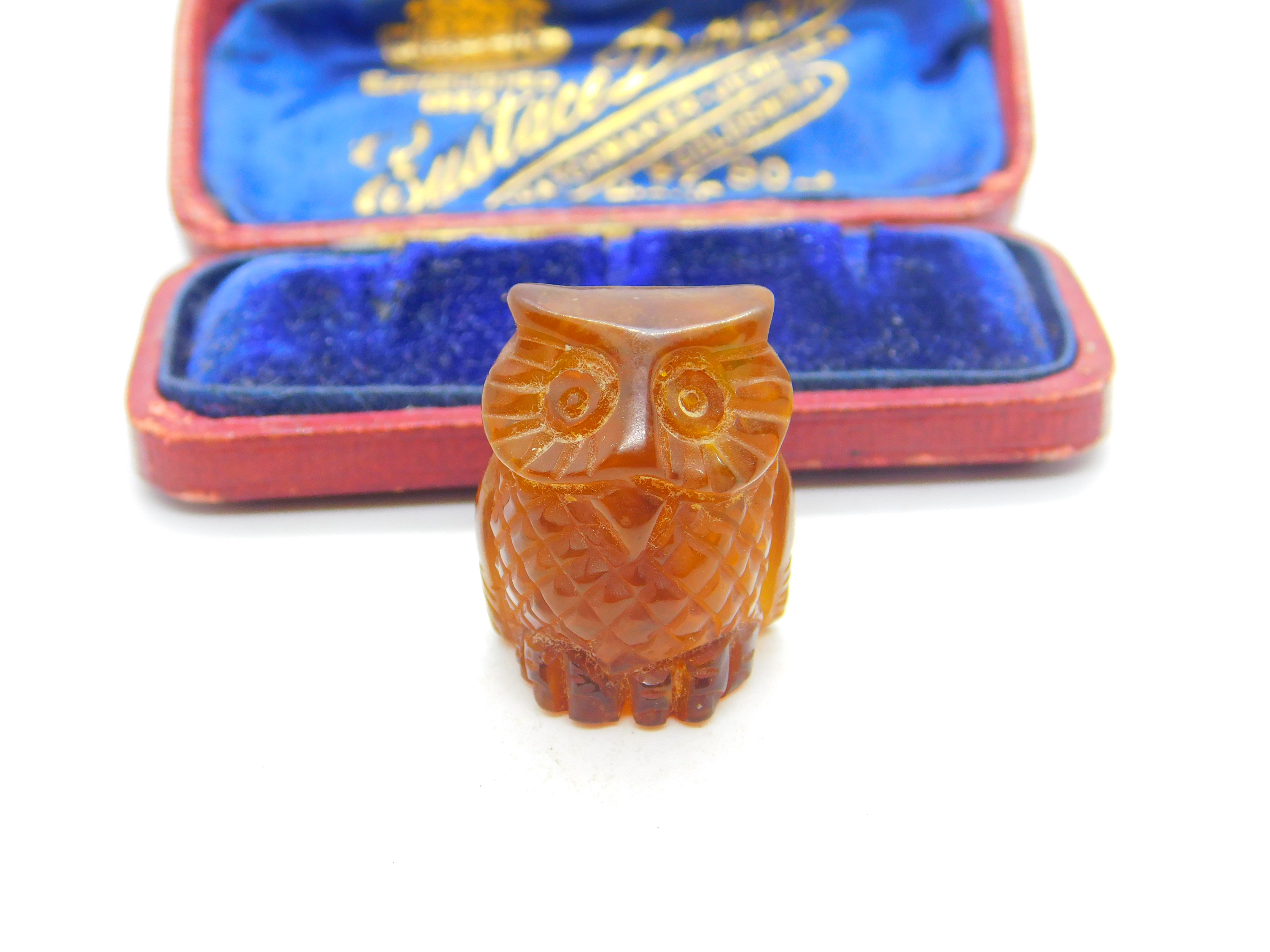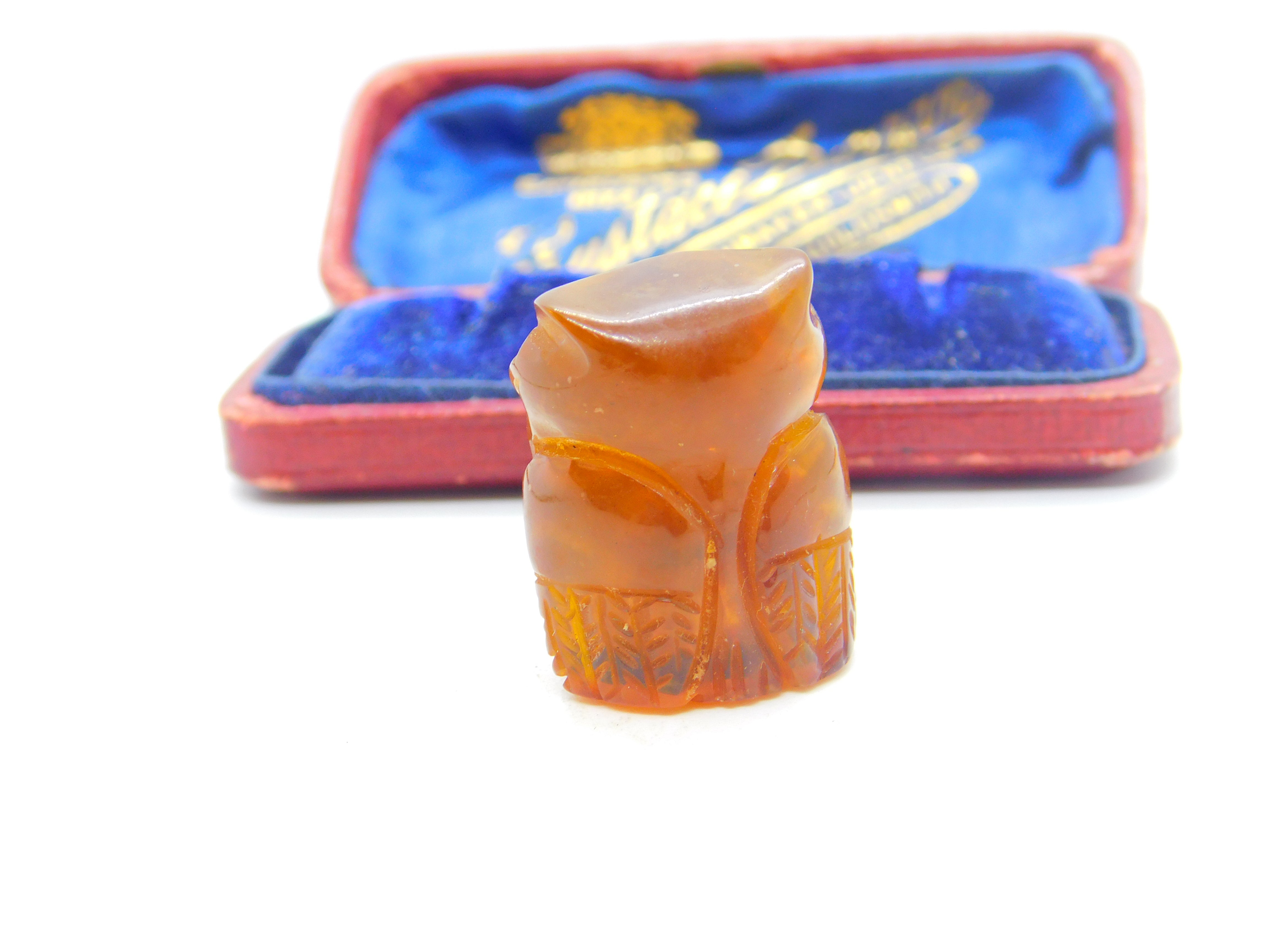 Carved Natural Baltic Amber Wise Owl Figure Antique c1920 Art Deco