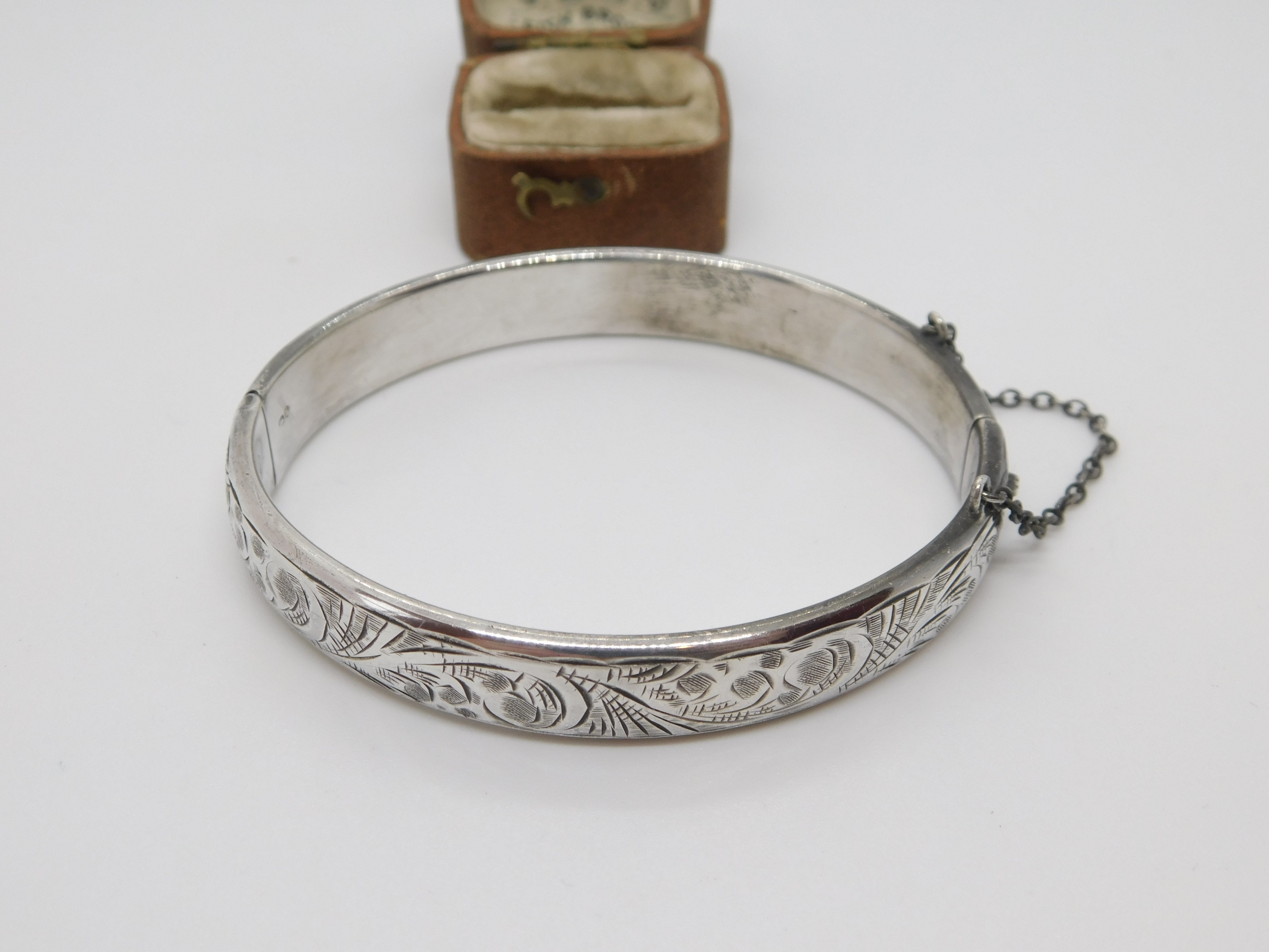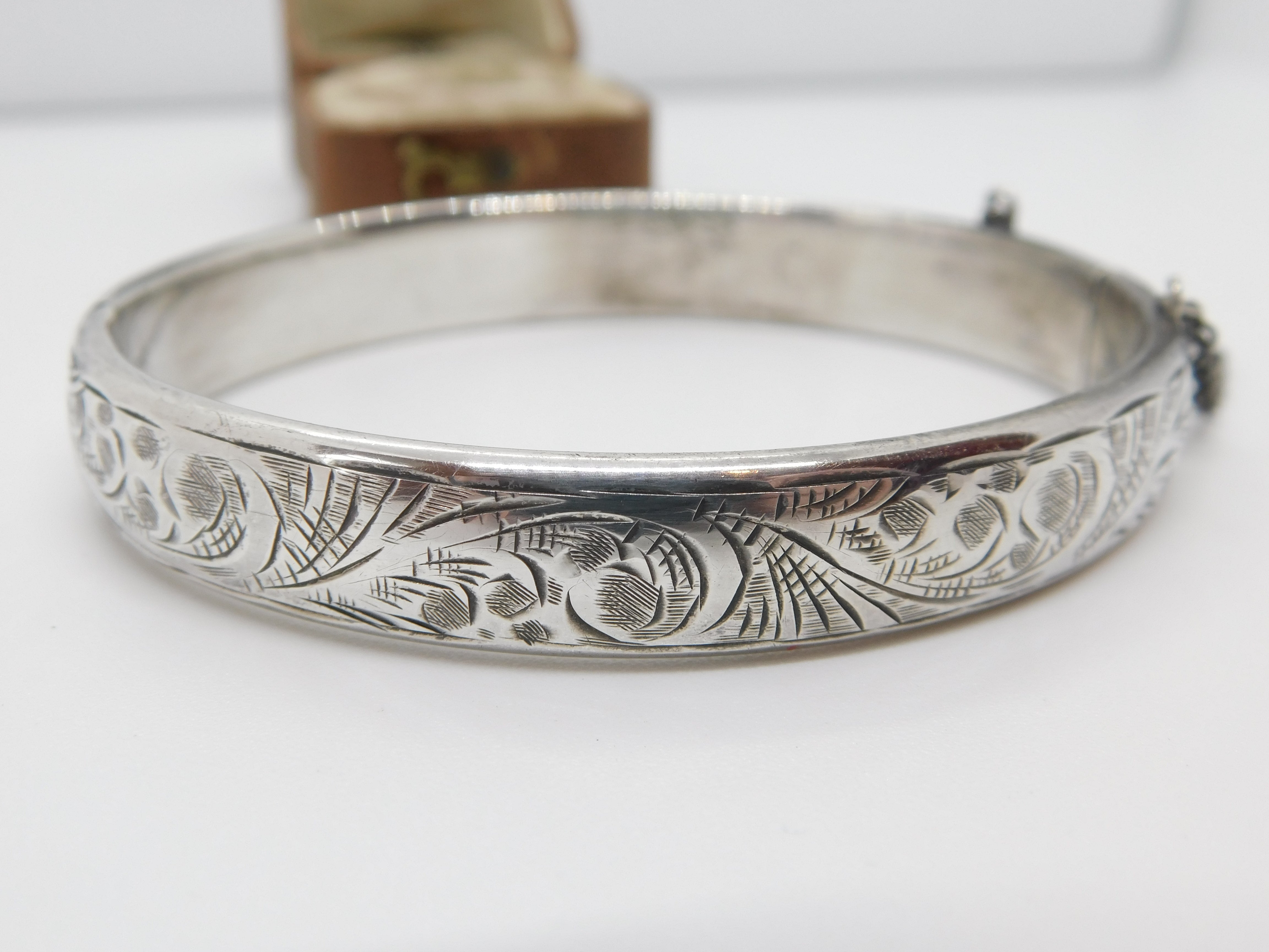 Charles Horner Sterling Silver Floral Cuff Bangle Bracelet 1955 Chester Vintage