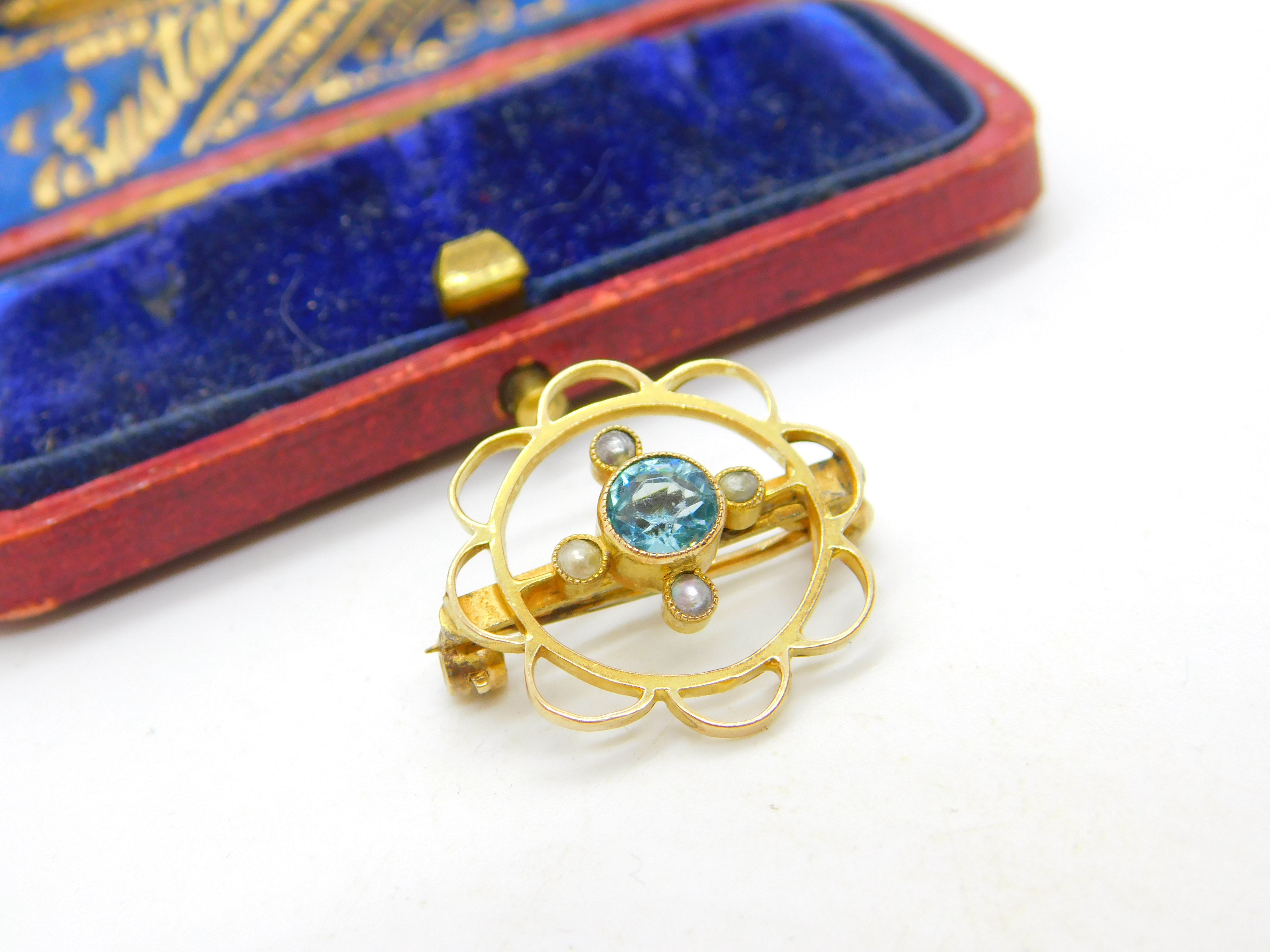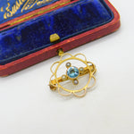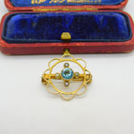 Edwardian 15ct Gold, Topaz & Seed Pearl Floral Sweetheart Brooch c1910 Antique