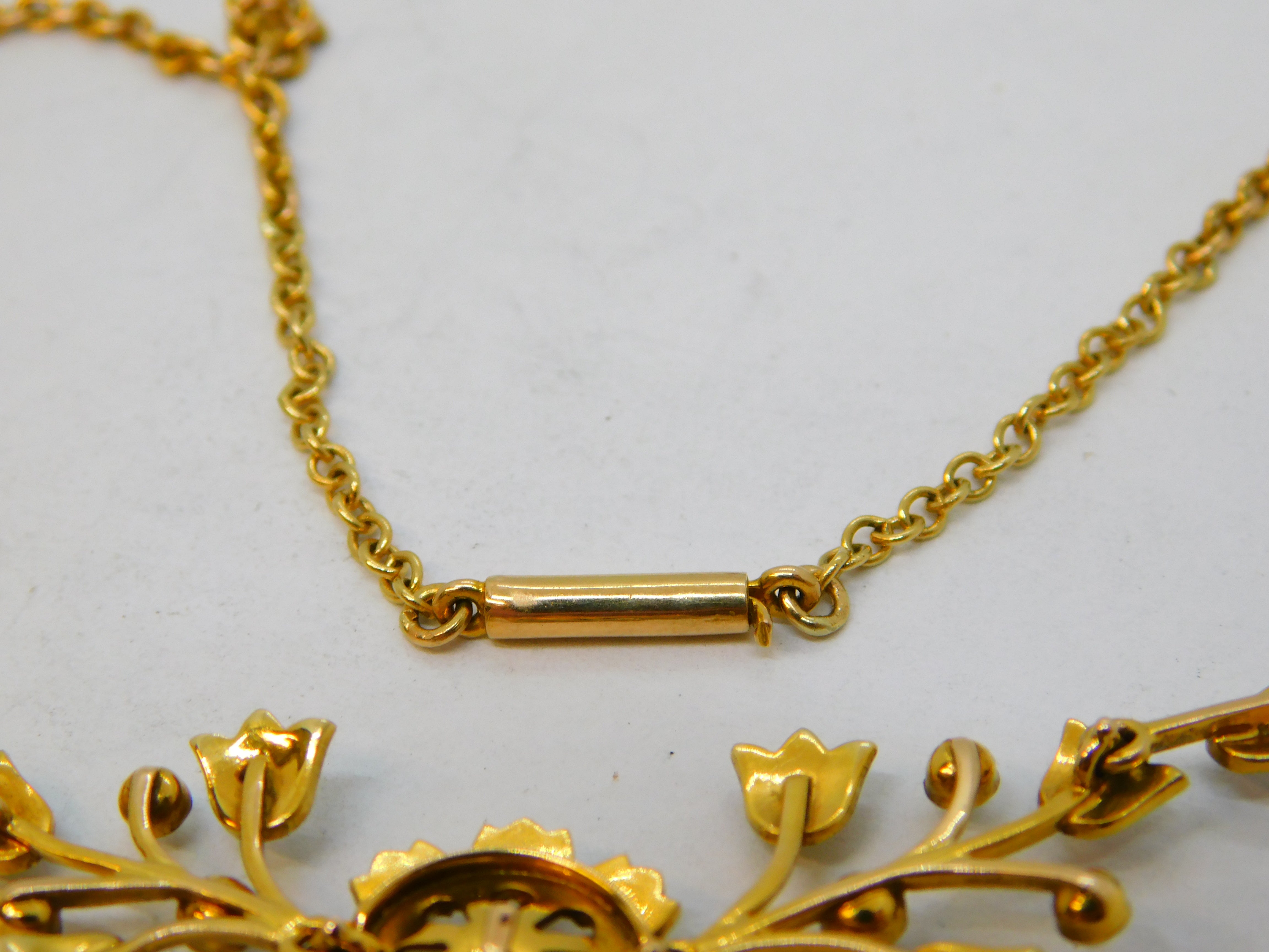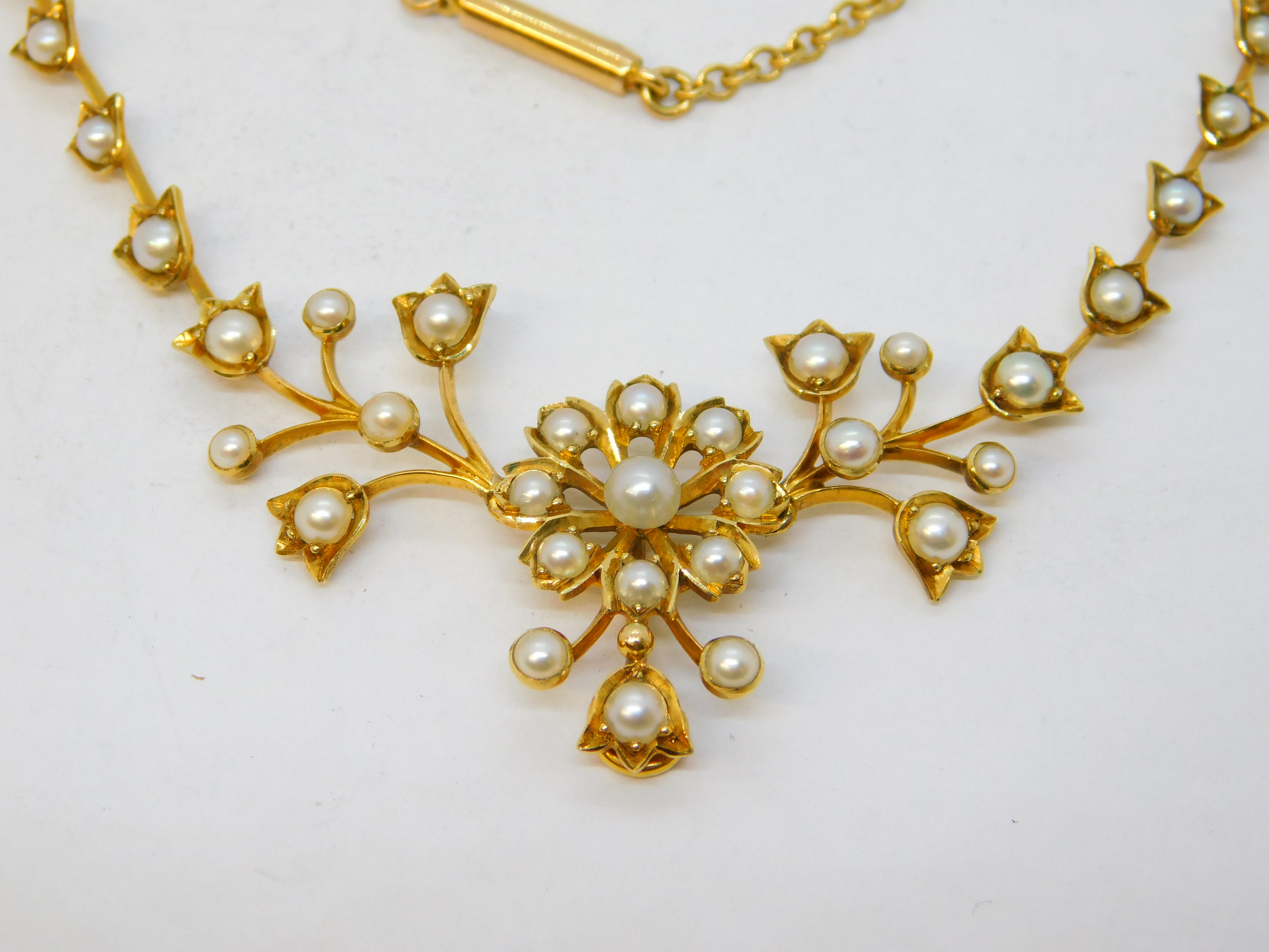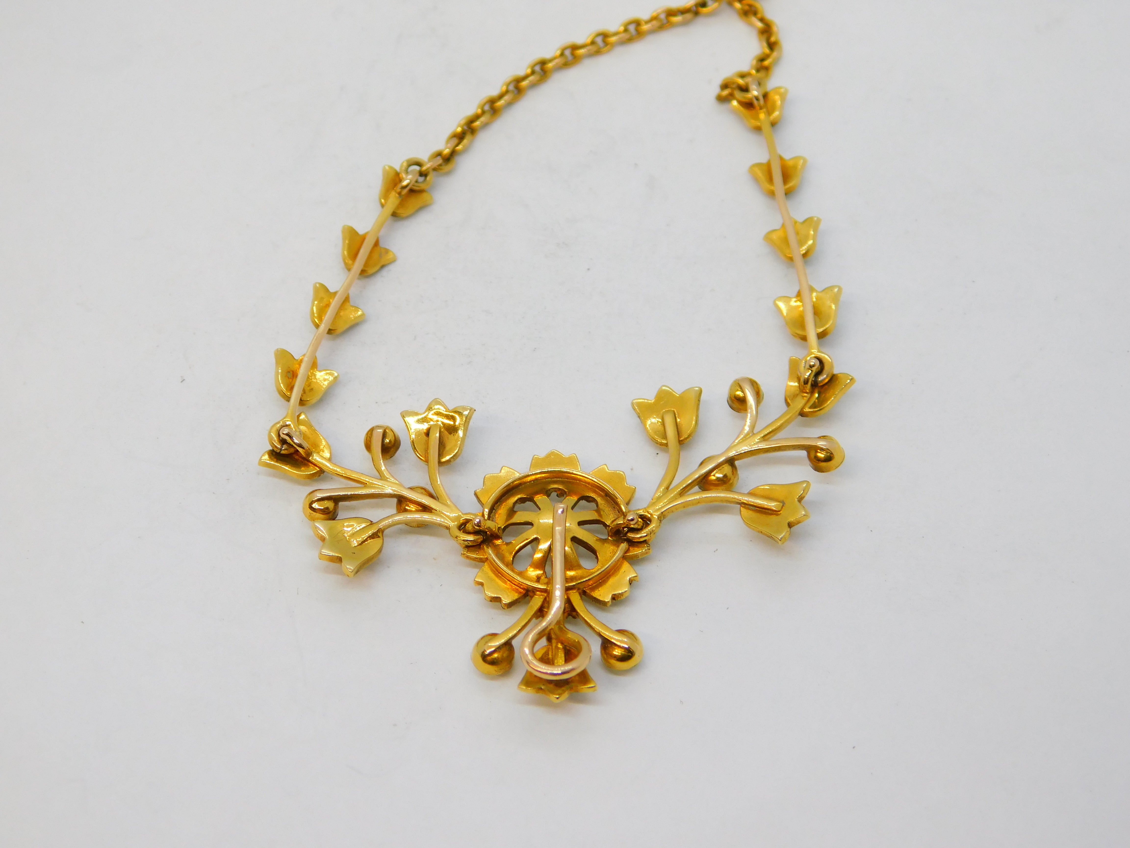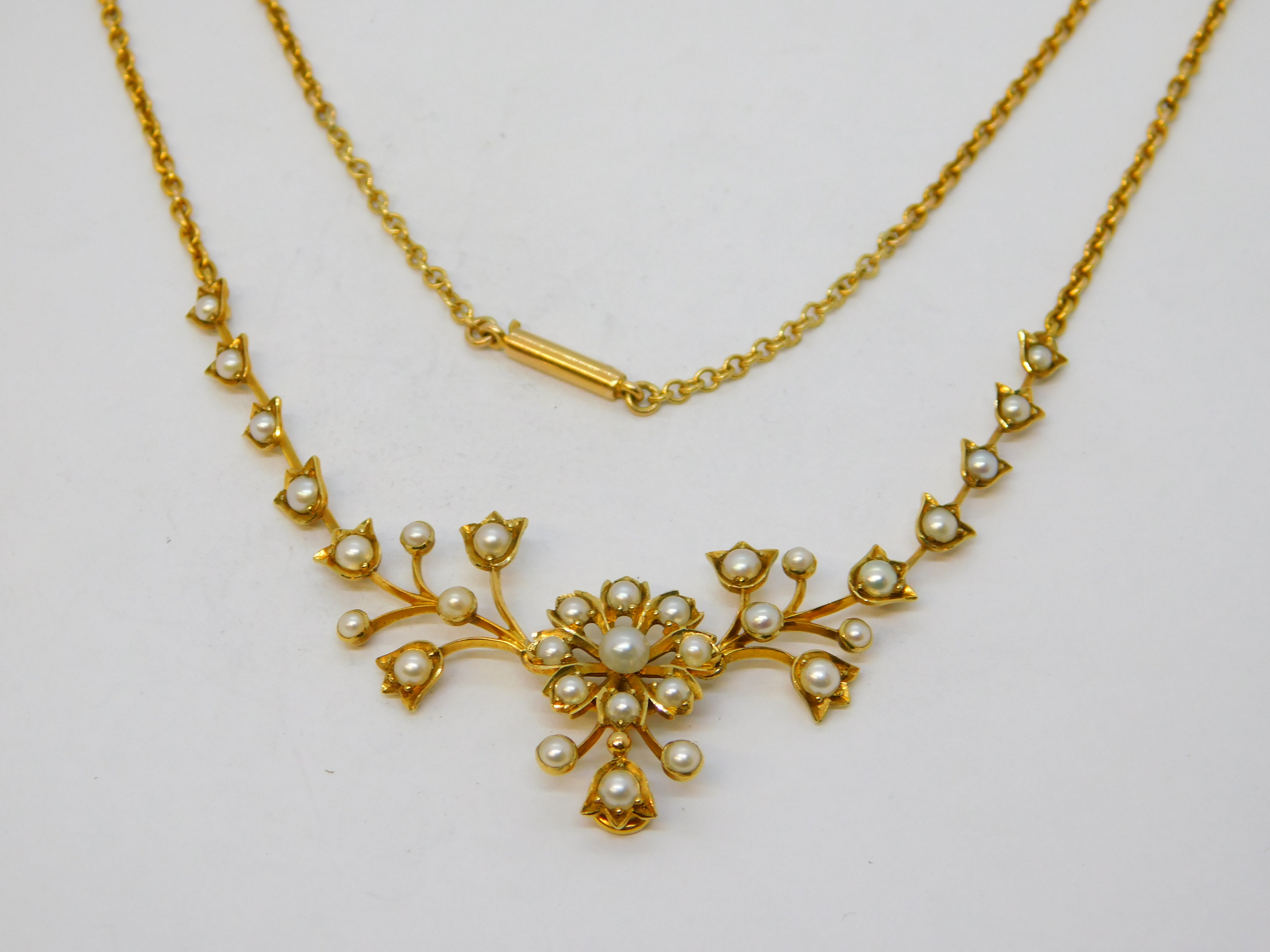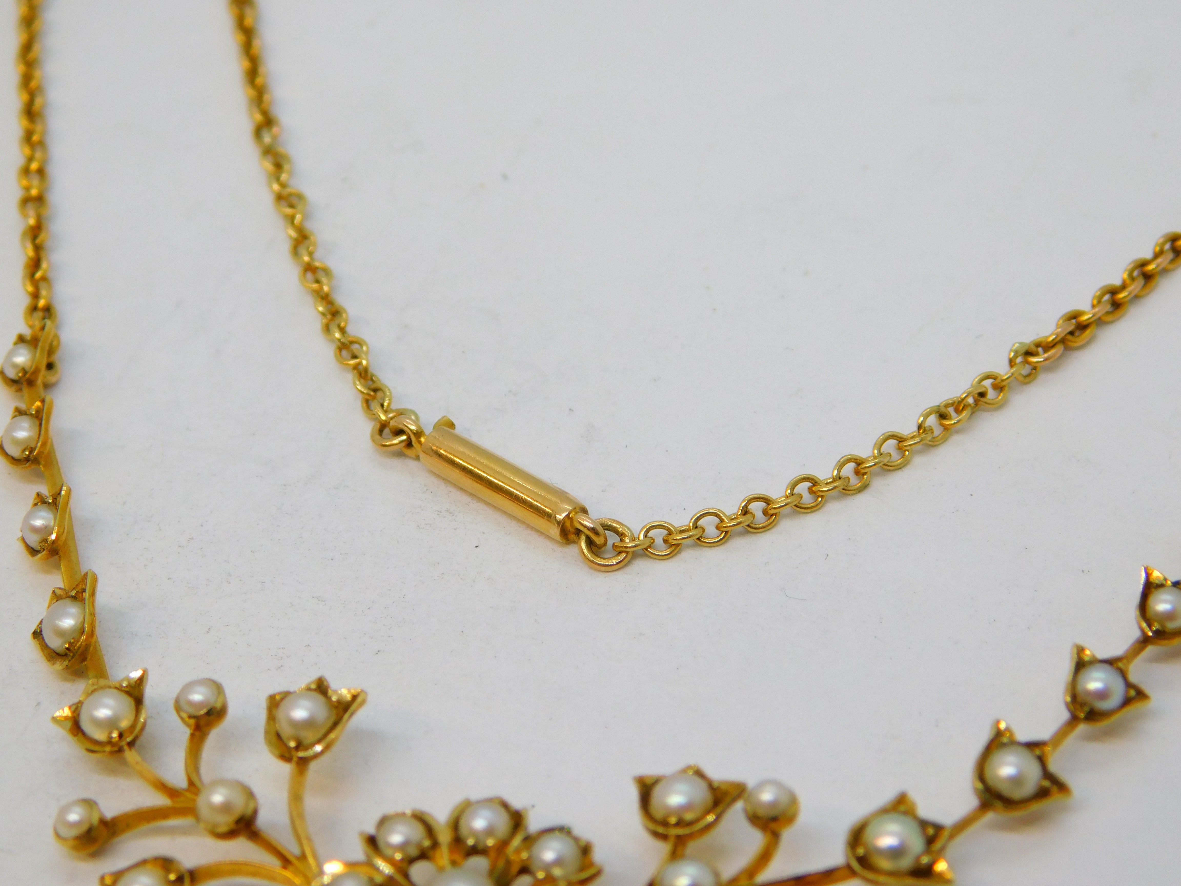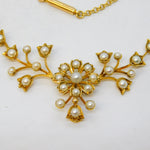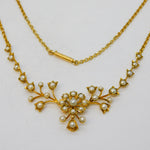 Edwardian 15ct Yellow Gold & Seed Pearl Floral Chain Necklace Antique c1910