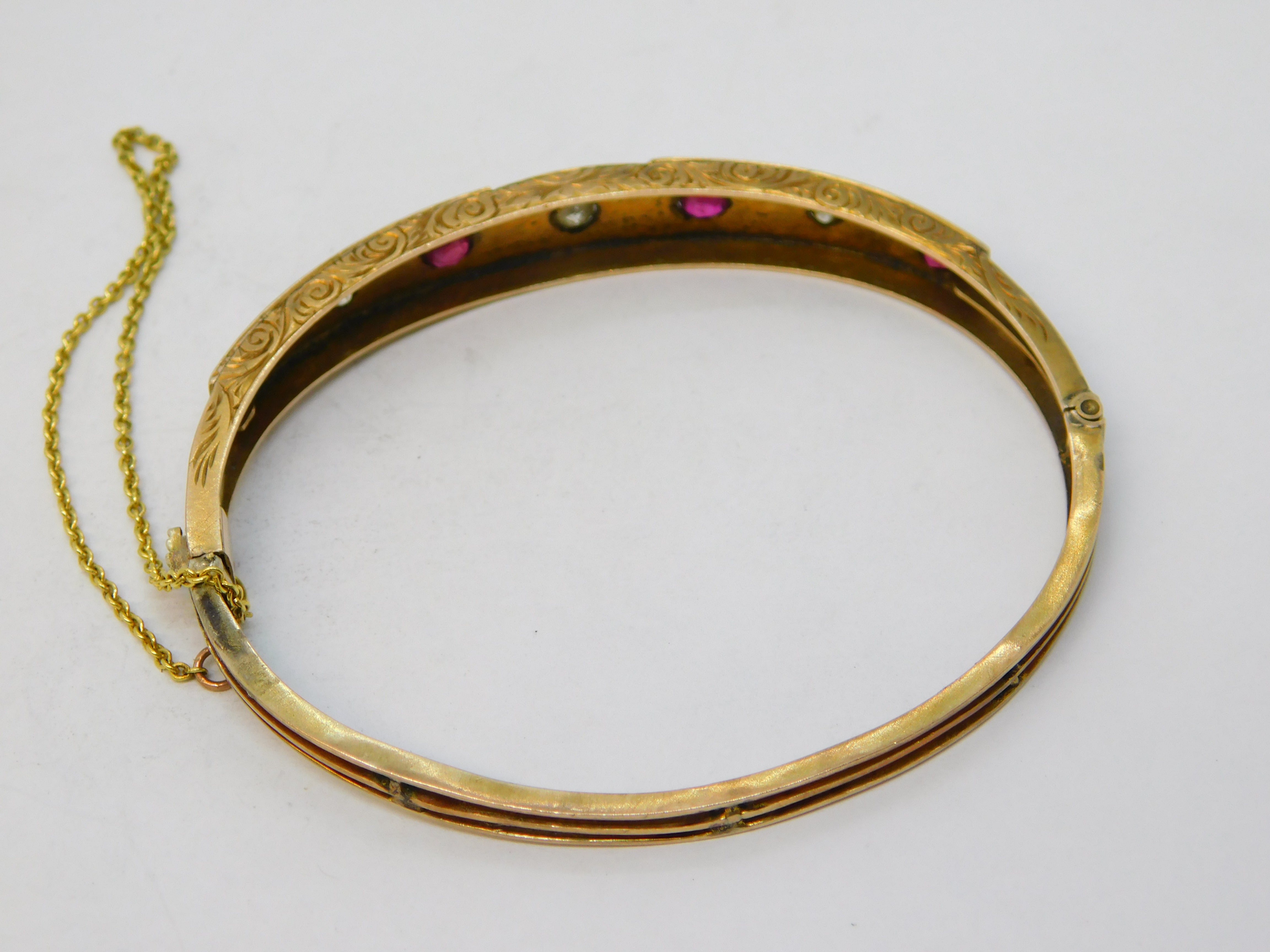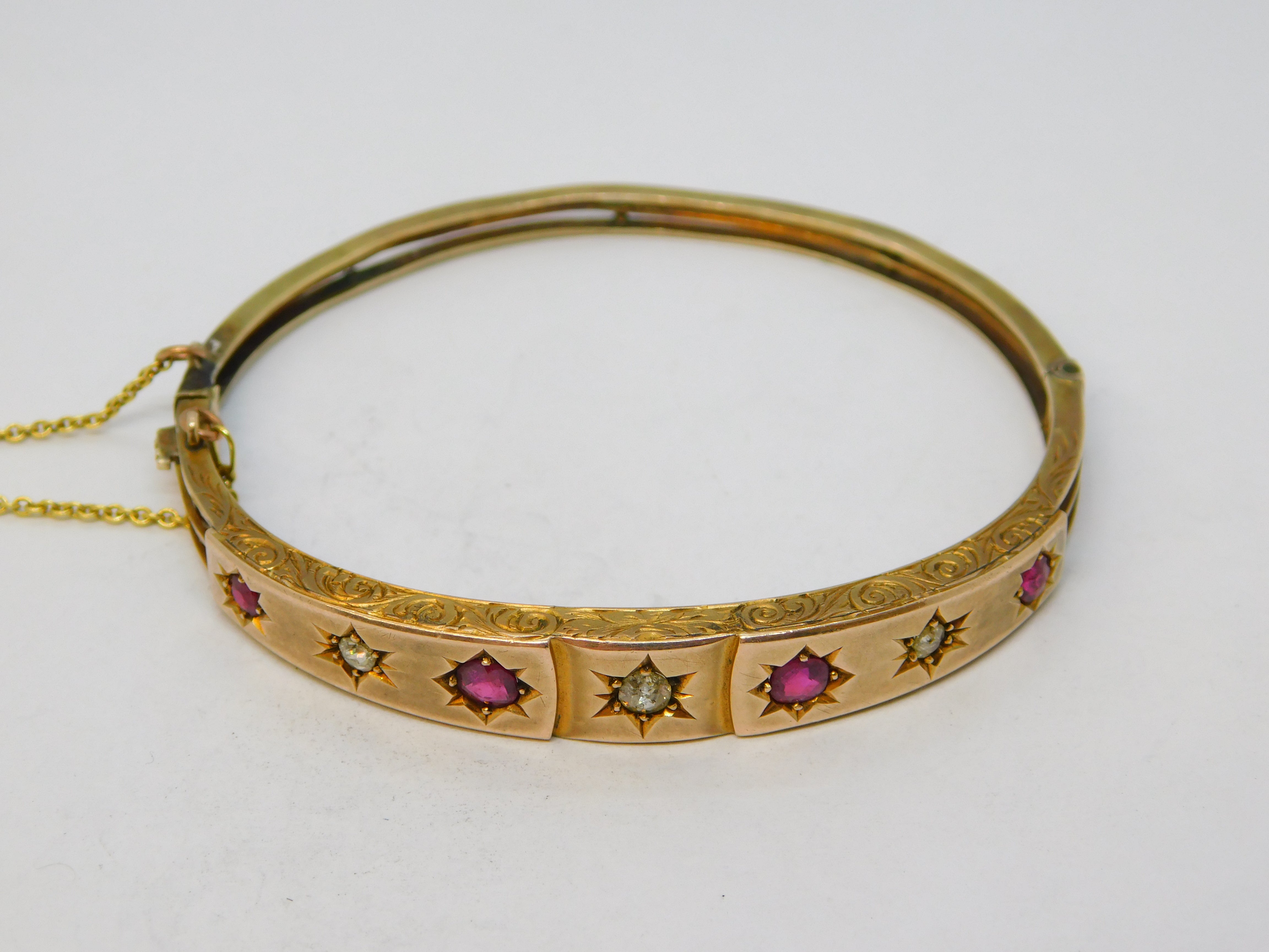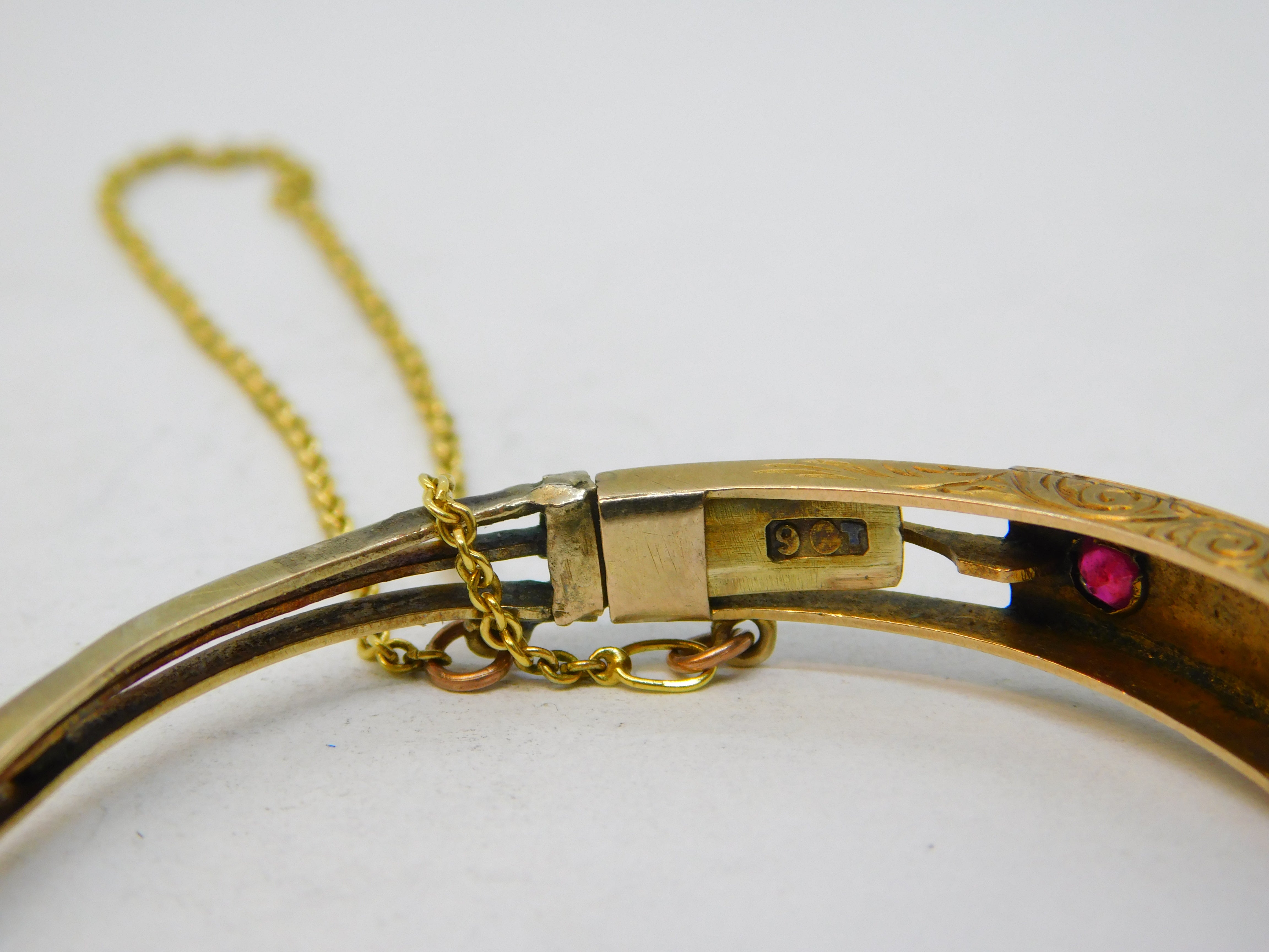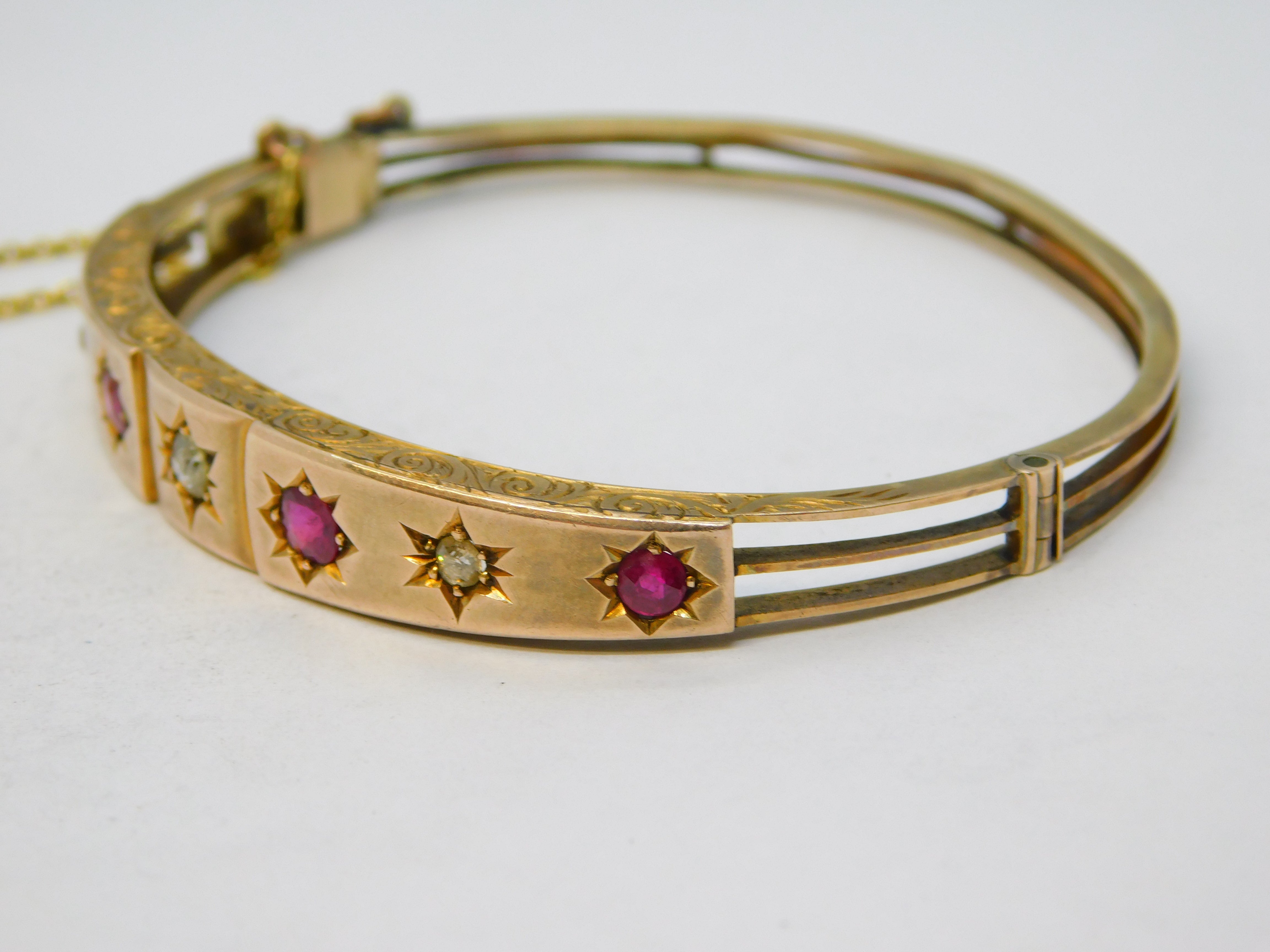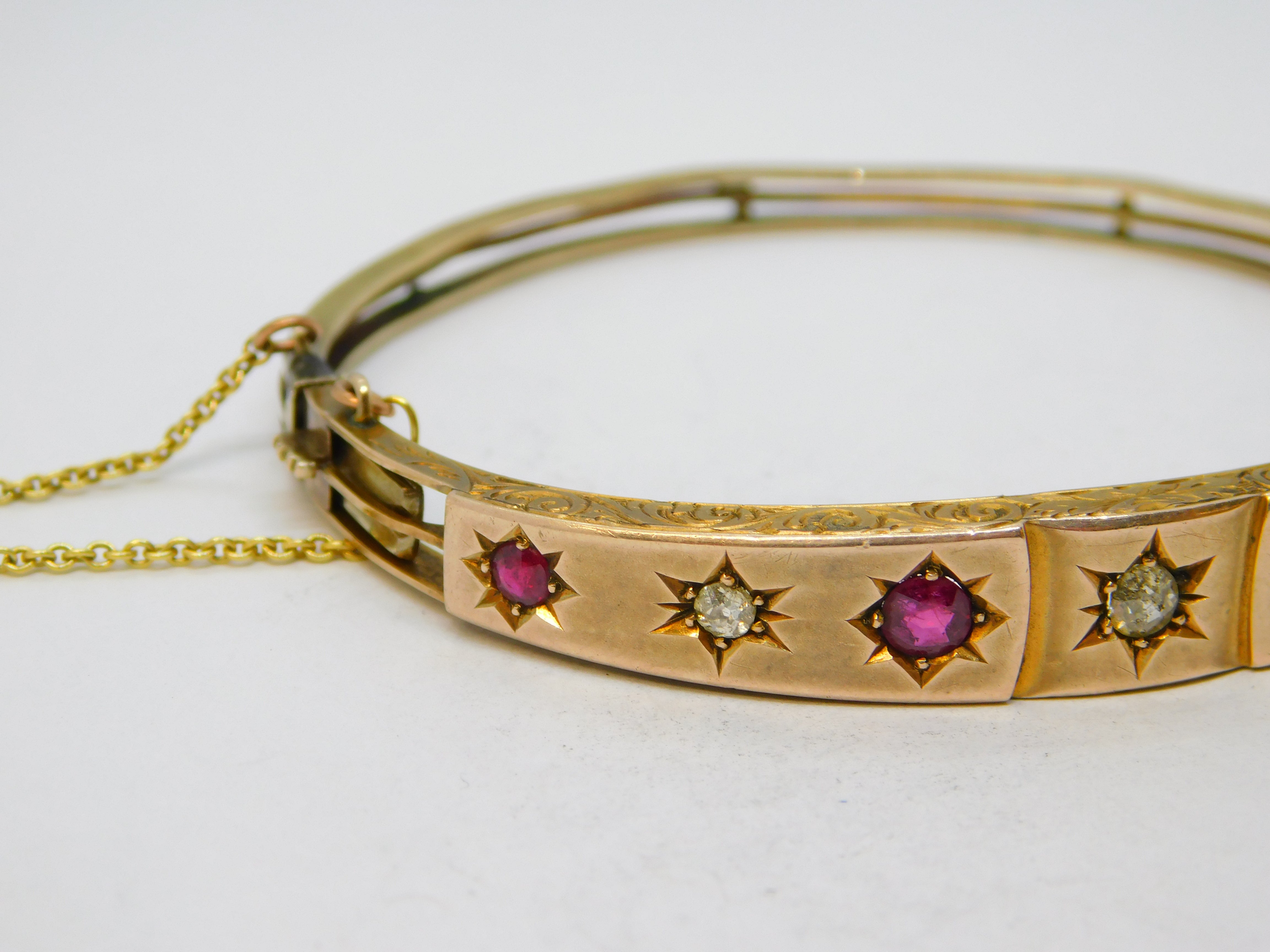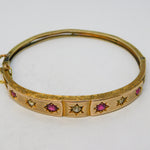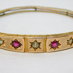 Edwardian 9ct Gold, Brilliant-Cut Diamond & Ruby Bangle Bracelet Antique