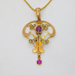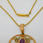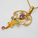 Edwardian 9ct Gold, Garnet & Seed Pearl Lavalier Pendant Necklace Antique