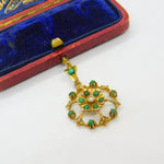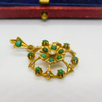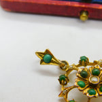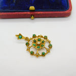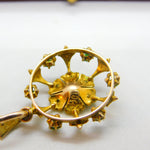 Edwardian 9ct Yellow Gold, Turquoise & Pearl Set Floral Drop Pendant c1910