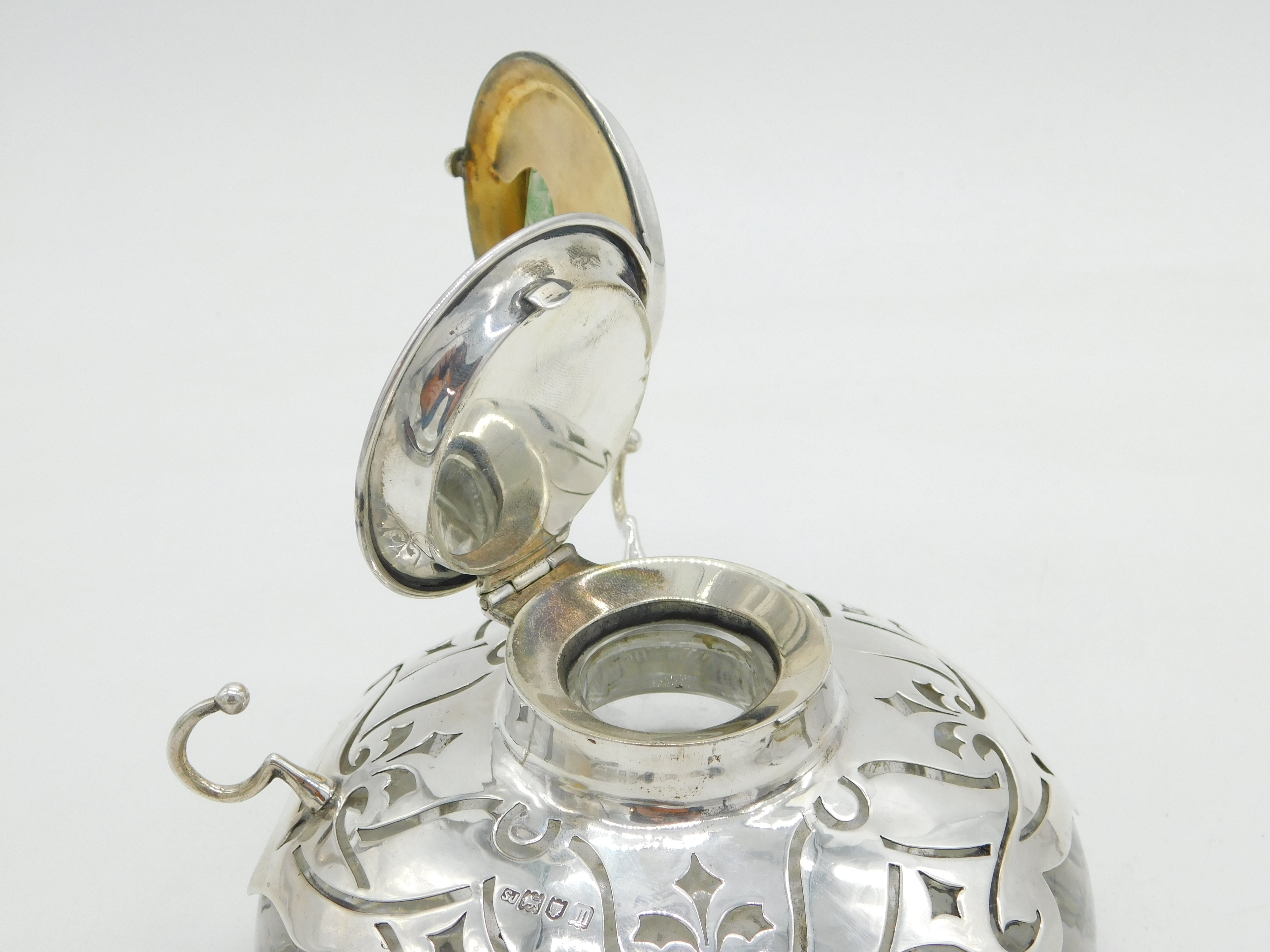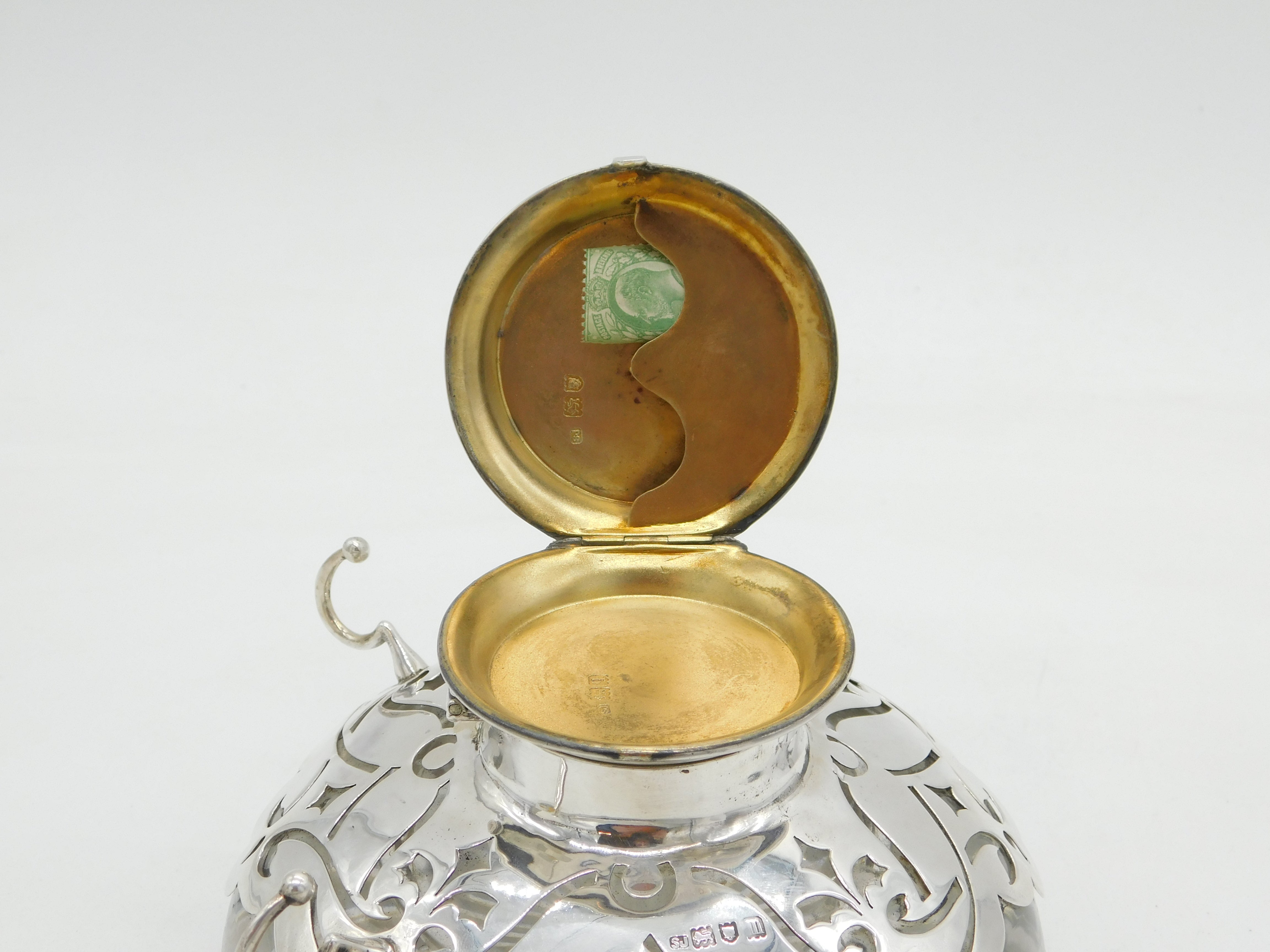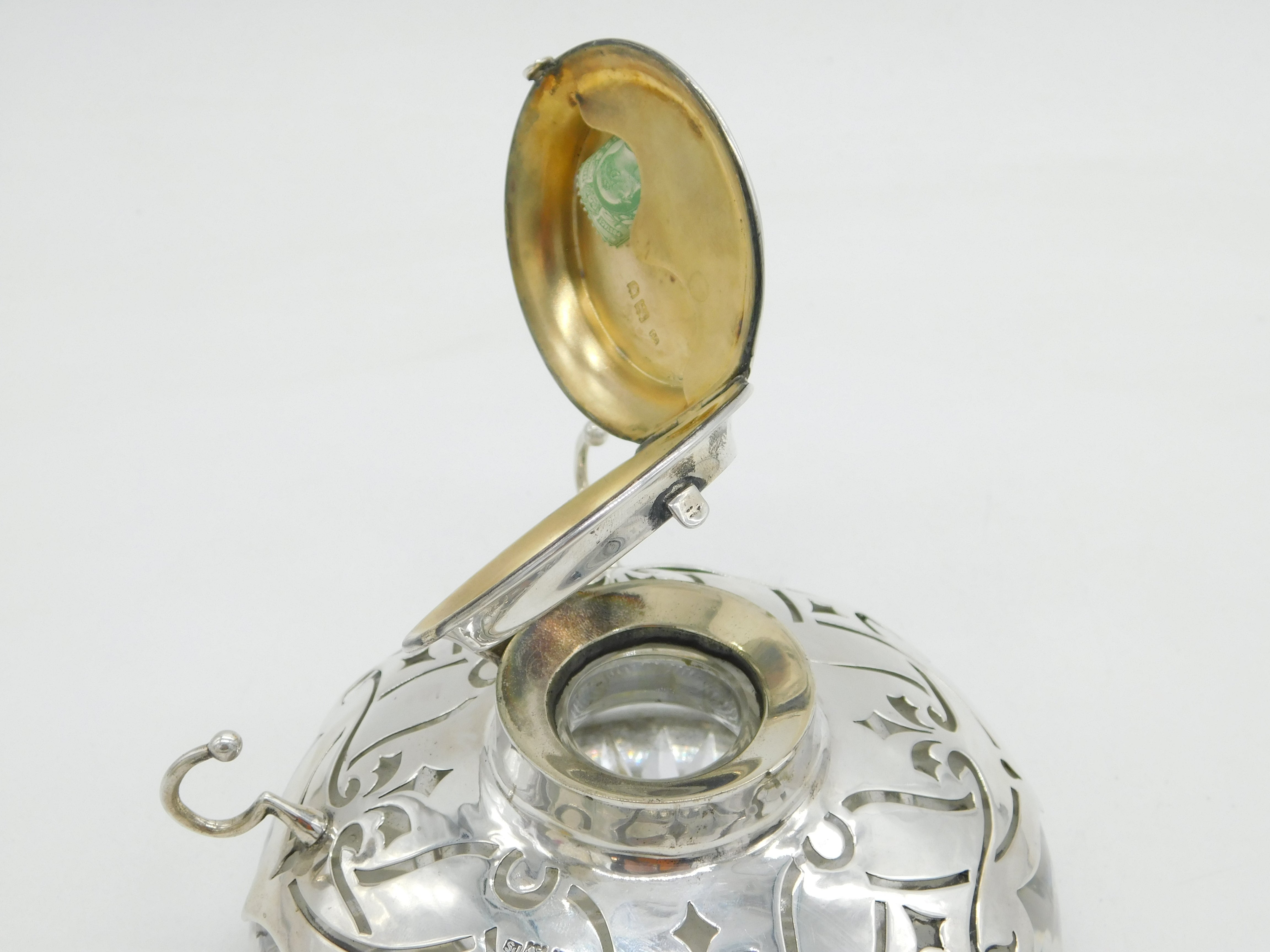 Edwardian Large Sterling Silver Floral Combination Desk Stand Antique London