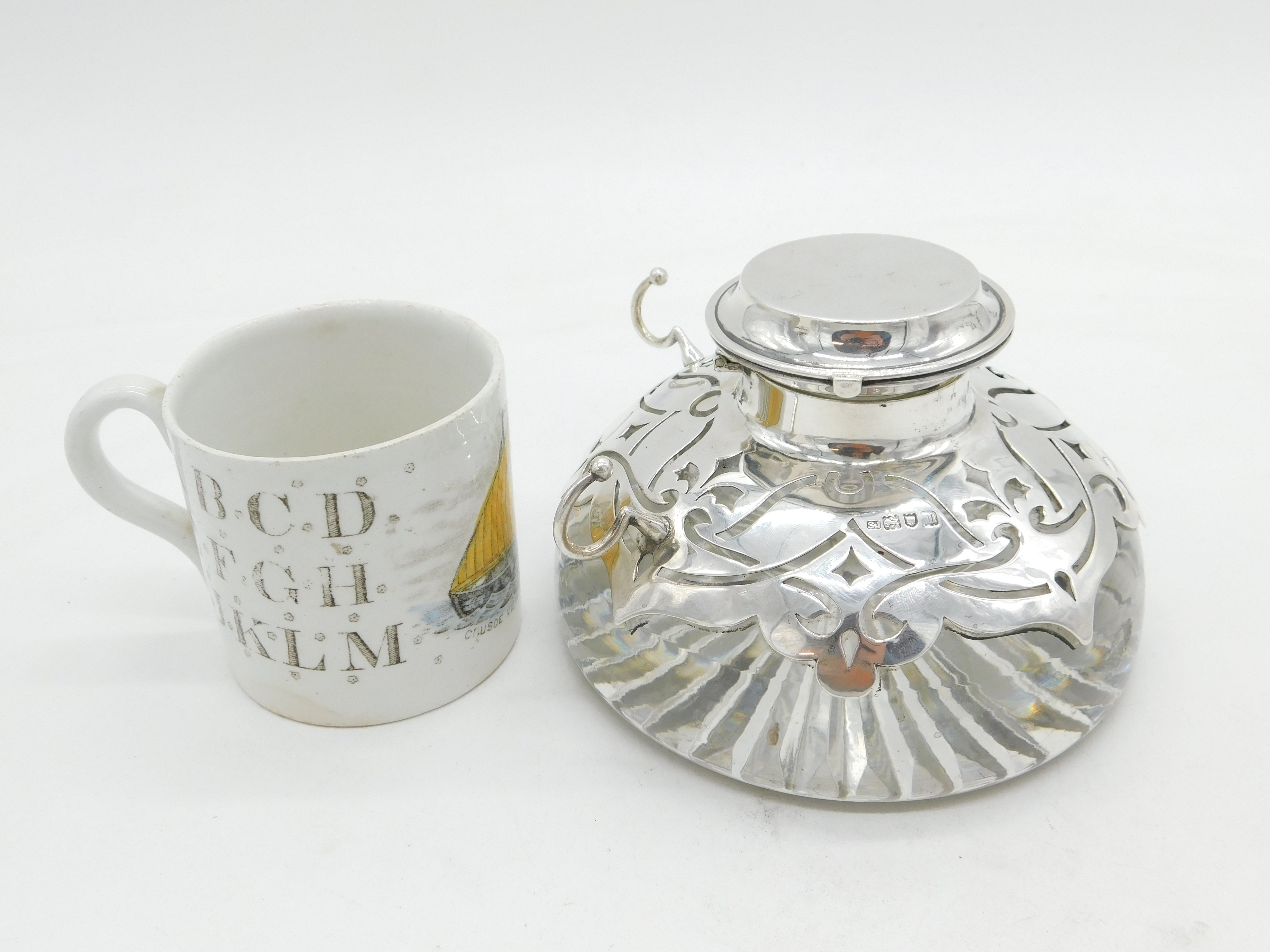 Details: A fantastic and wonderfully designed antique edwardian sterling silver mounted large cut glass combination desk stand with pen holder and integrated stamp box in the double lid. Hallmarked to the edge for London 1907 by Samuel JacobThis is a wonderful item that would make a perfect gift or addition to any collection. We are more than happy to provide XRF reports for items upon request.