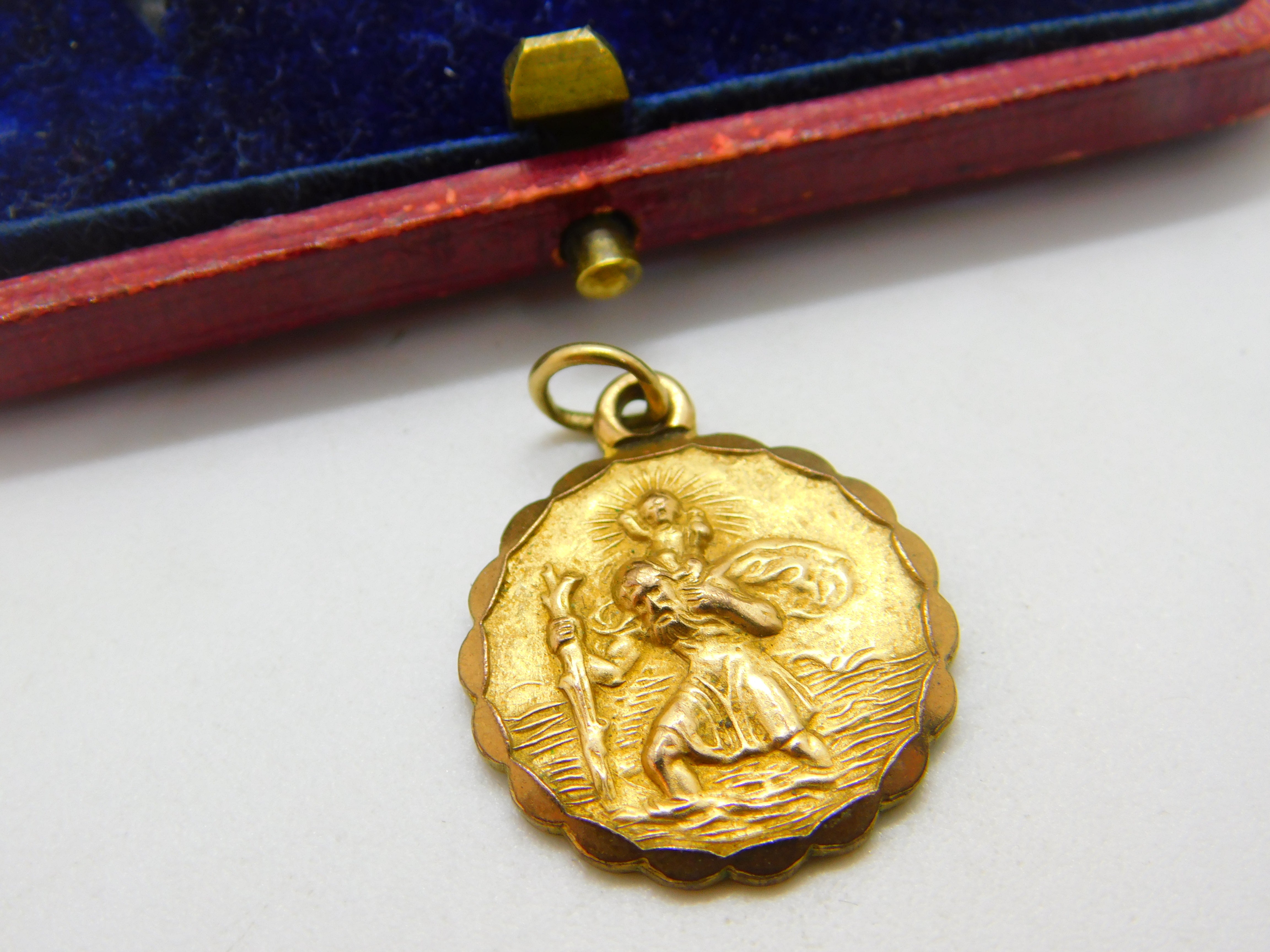Georg Jensen 9ct Yellow Gold St. Christopher Pendant with Travel Reverse 1963