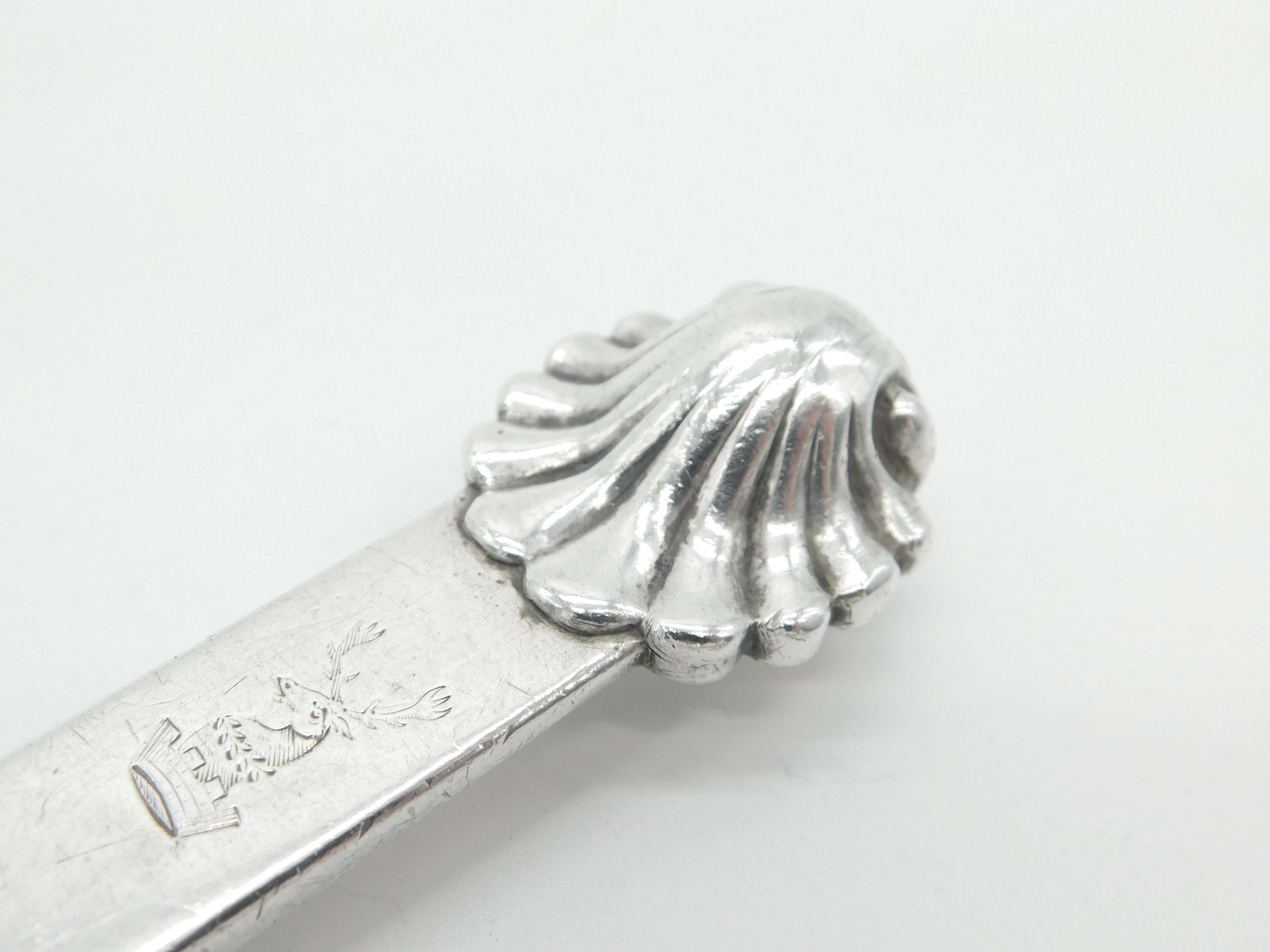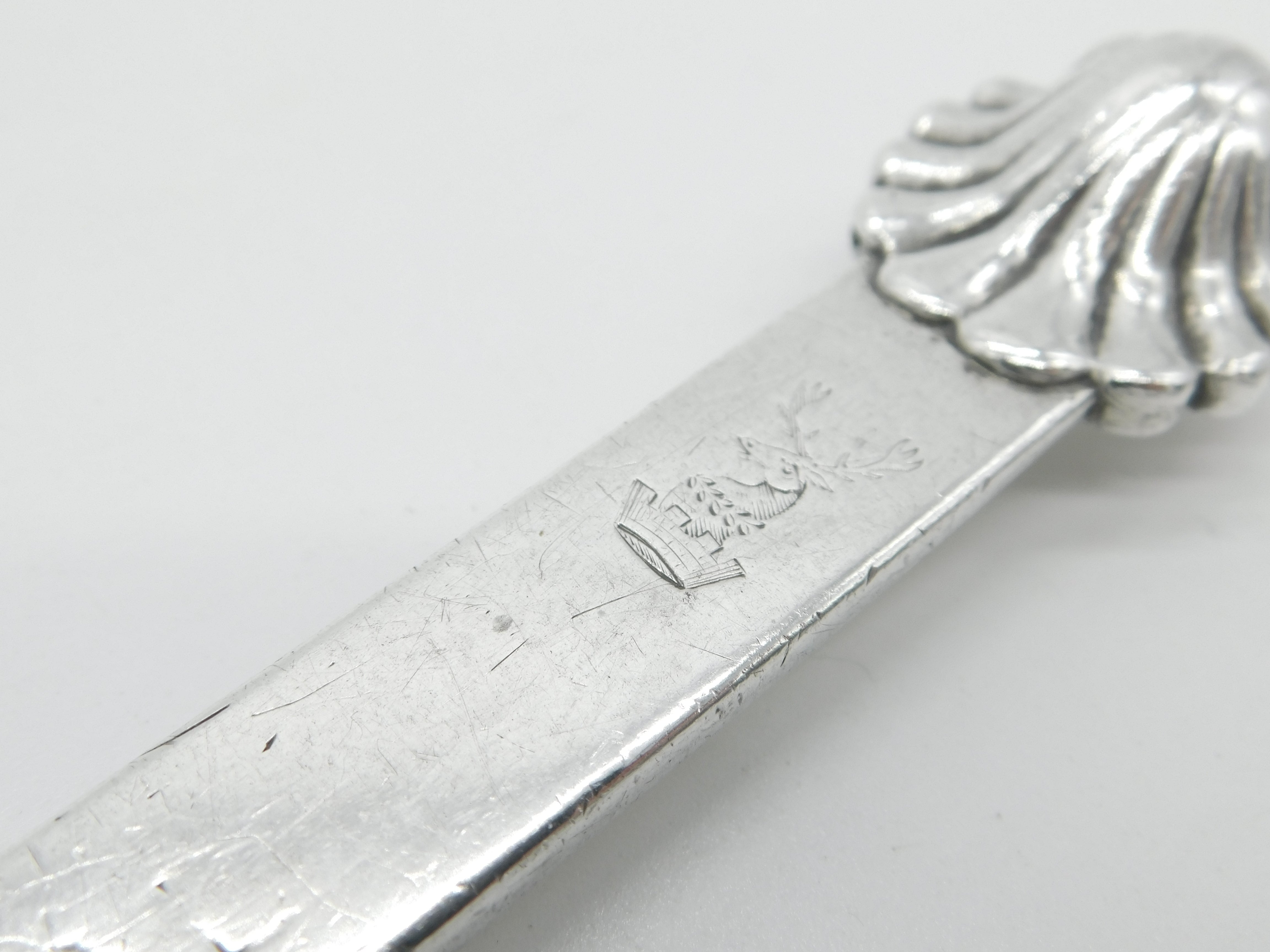 George II Large Sterling Silver Crested Meat Skewer Shell Terminal c1740 London