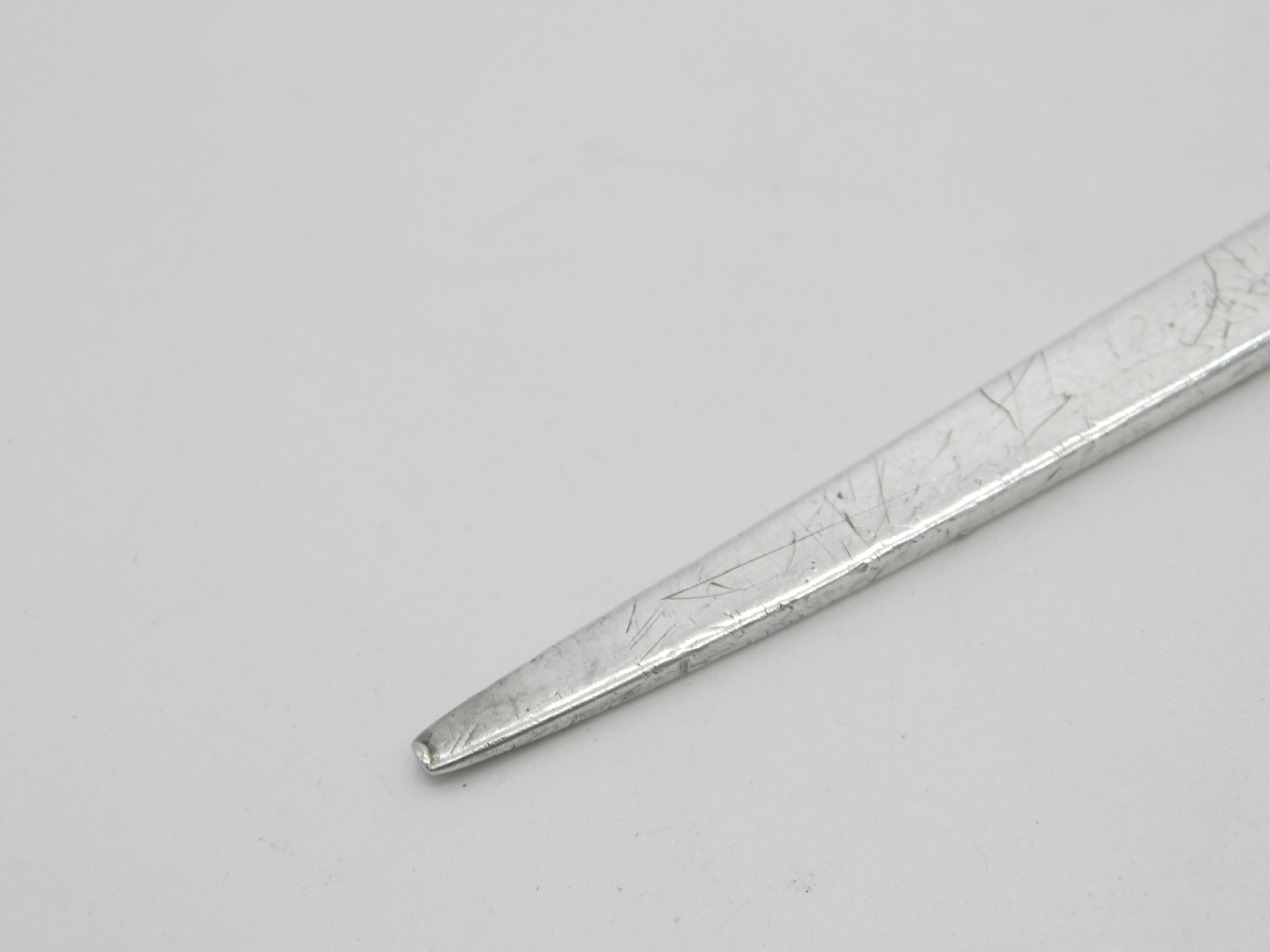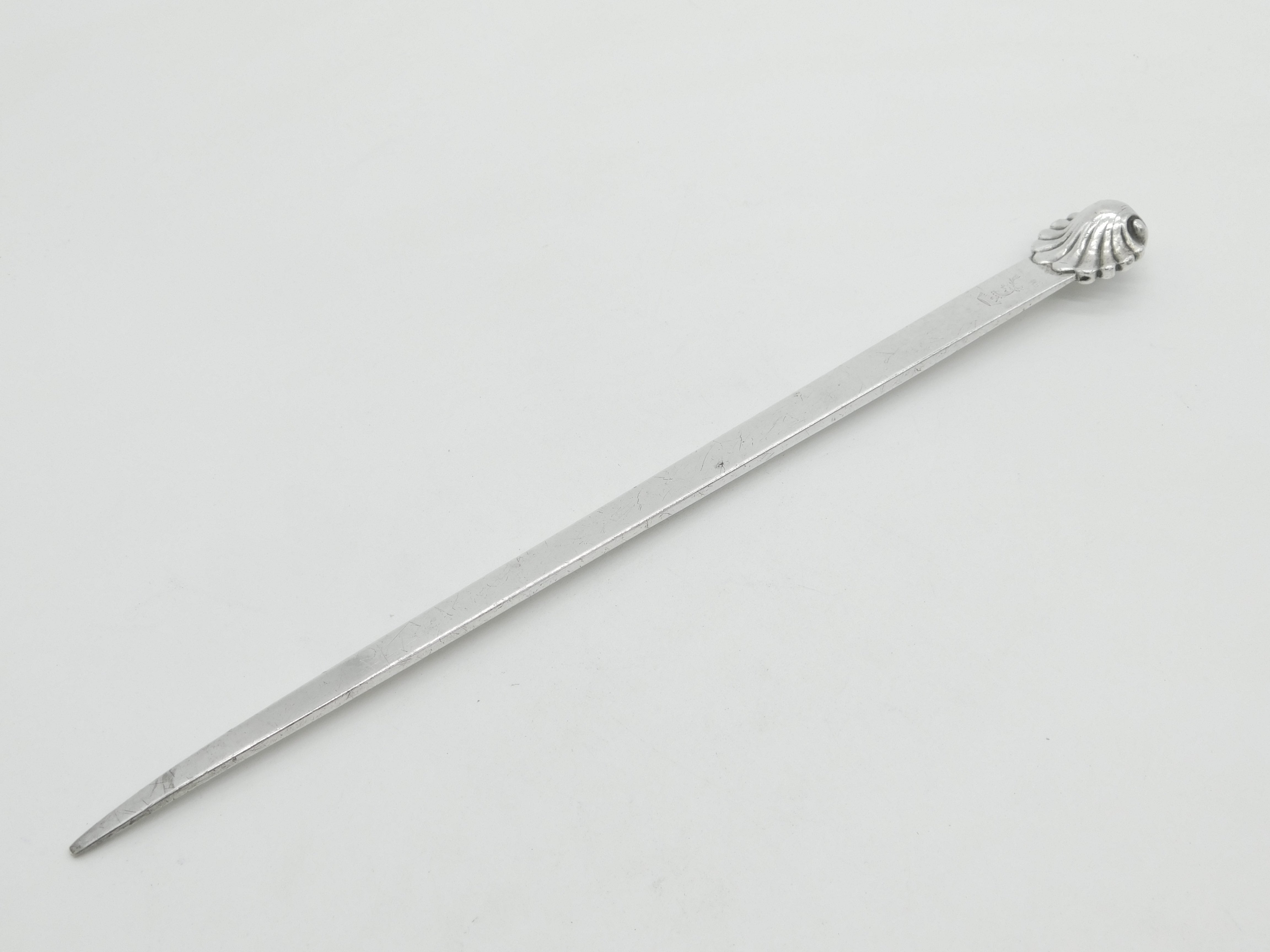 Details: A fantastic and wonderfully designed antique early Georgian King George II large sterling silver meat skewer with scallop shell to the terminal crested to both edges and faintly hallmarked c1740, London. The skewer is fairly scratched clearly with use but is lovely nonetheless. This is a wonderful item that would make a perfect gift or addition to any collection. The BOX pictured is for PRESENTATION ONLY and is NOT included in the listings but used to frame the pictures unless specifically stated otherwise.