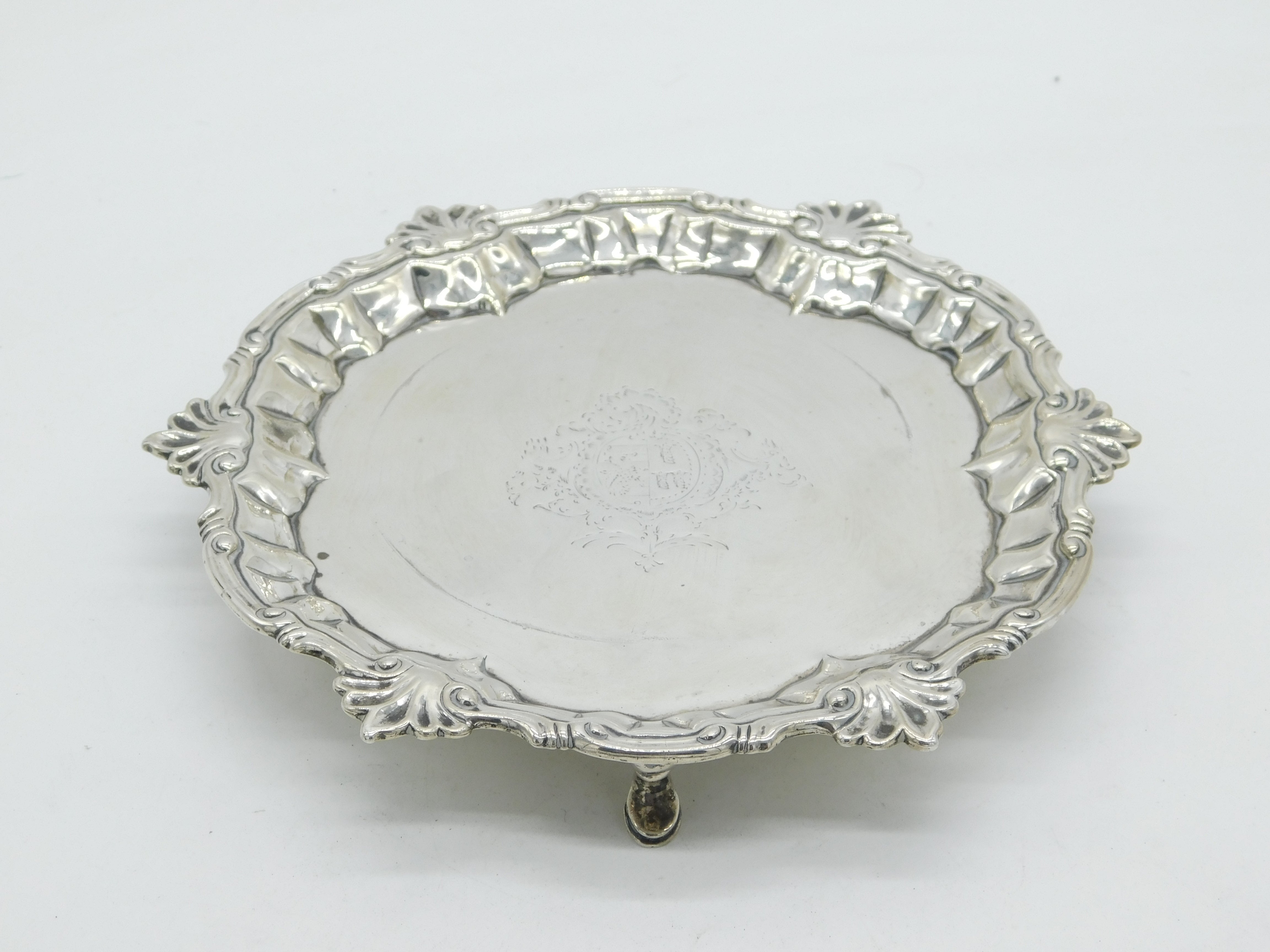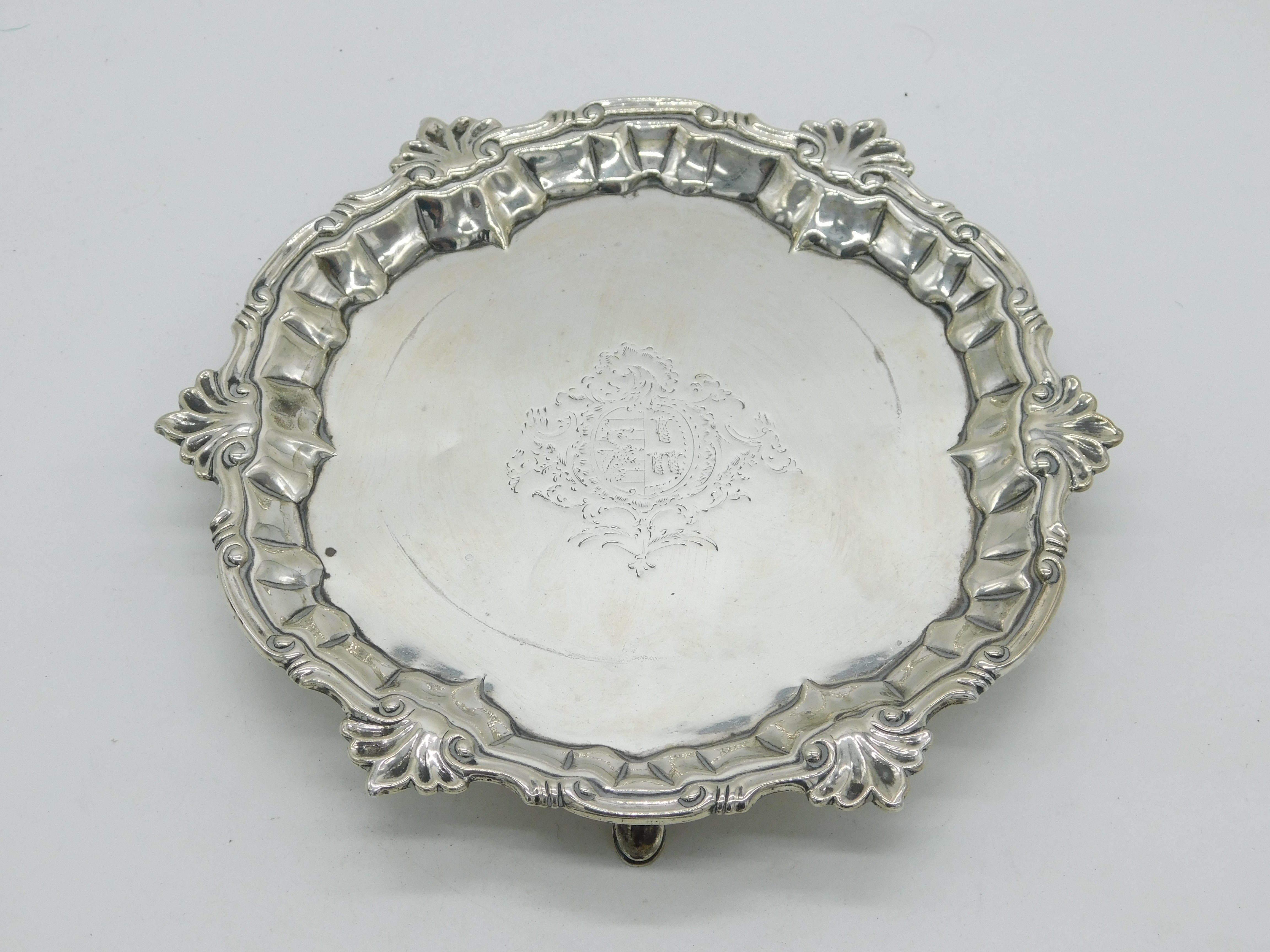 George II Sterling Silver Armorial Crested Salver Dish Antique 1756 London