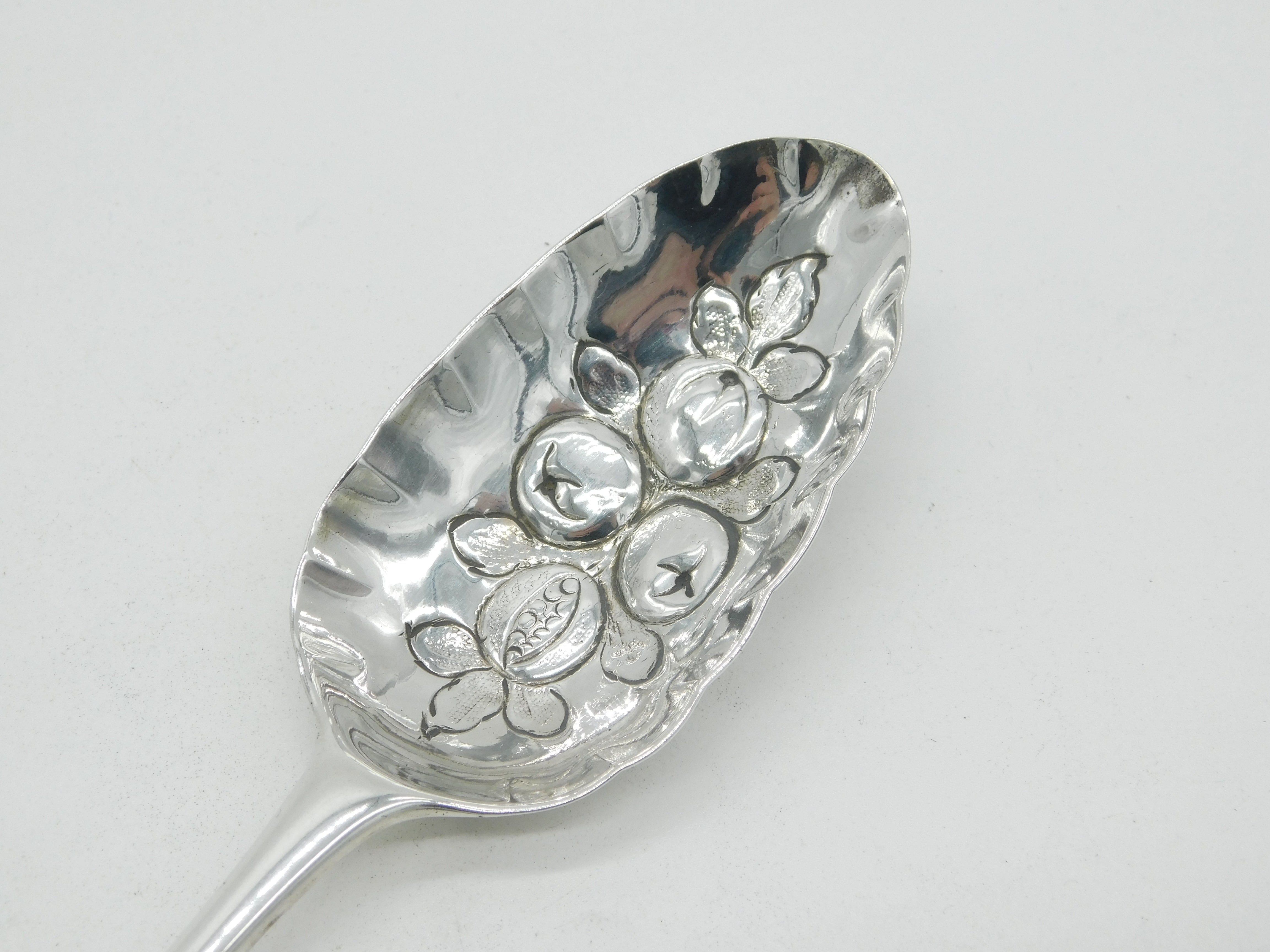 George II Sterling Silver Berry Dessert Serving Spoon 1737 London Antique