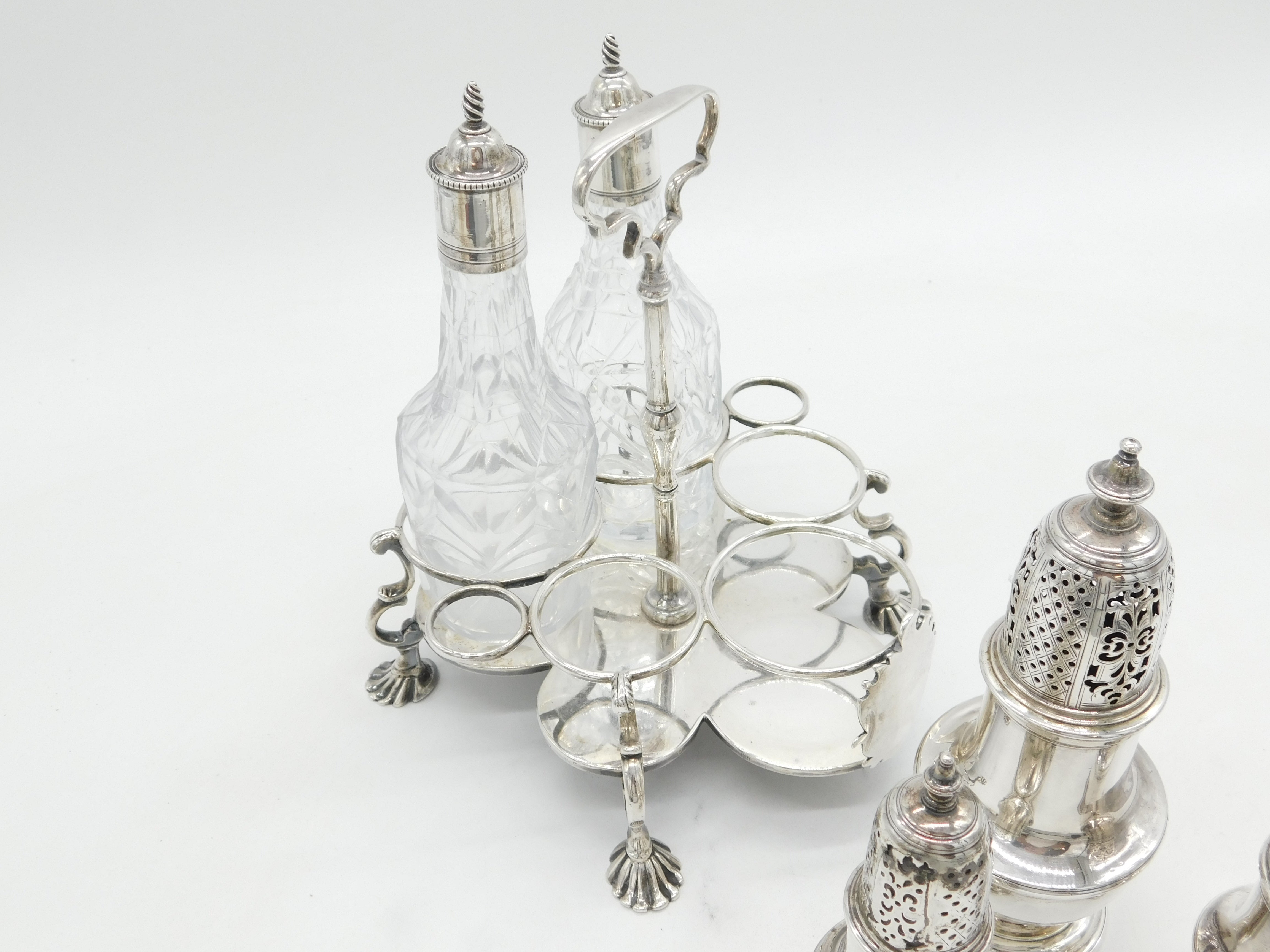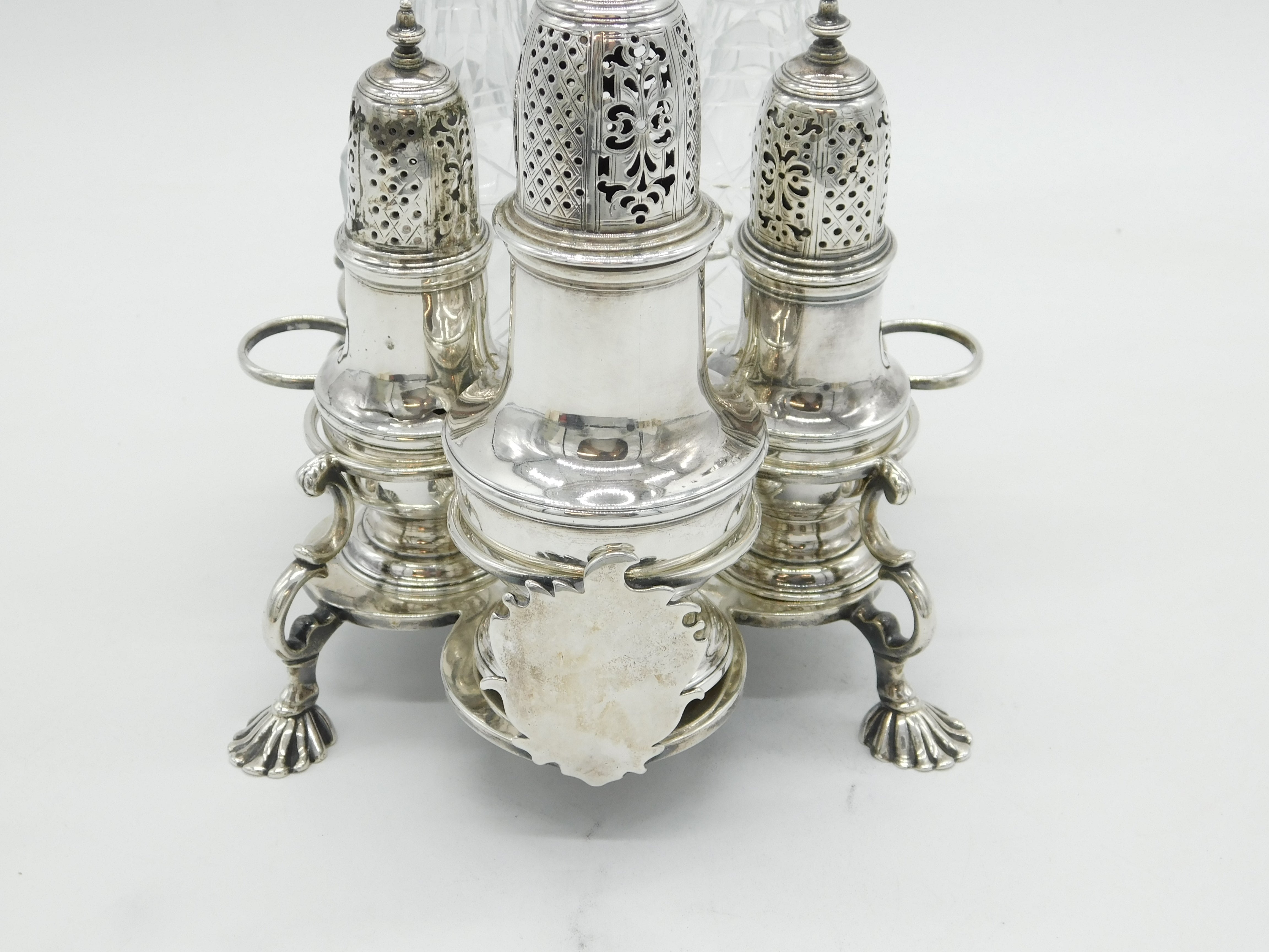 George II Sterling Silver Cut Glass Five-Piece Cruet Set Antique 1751 London