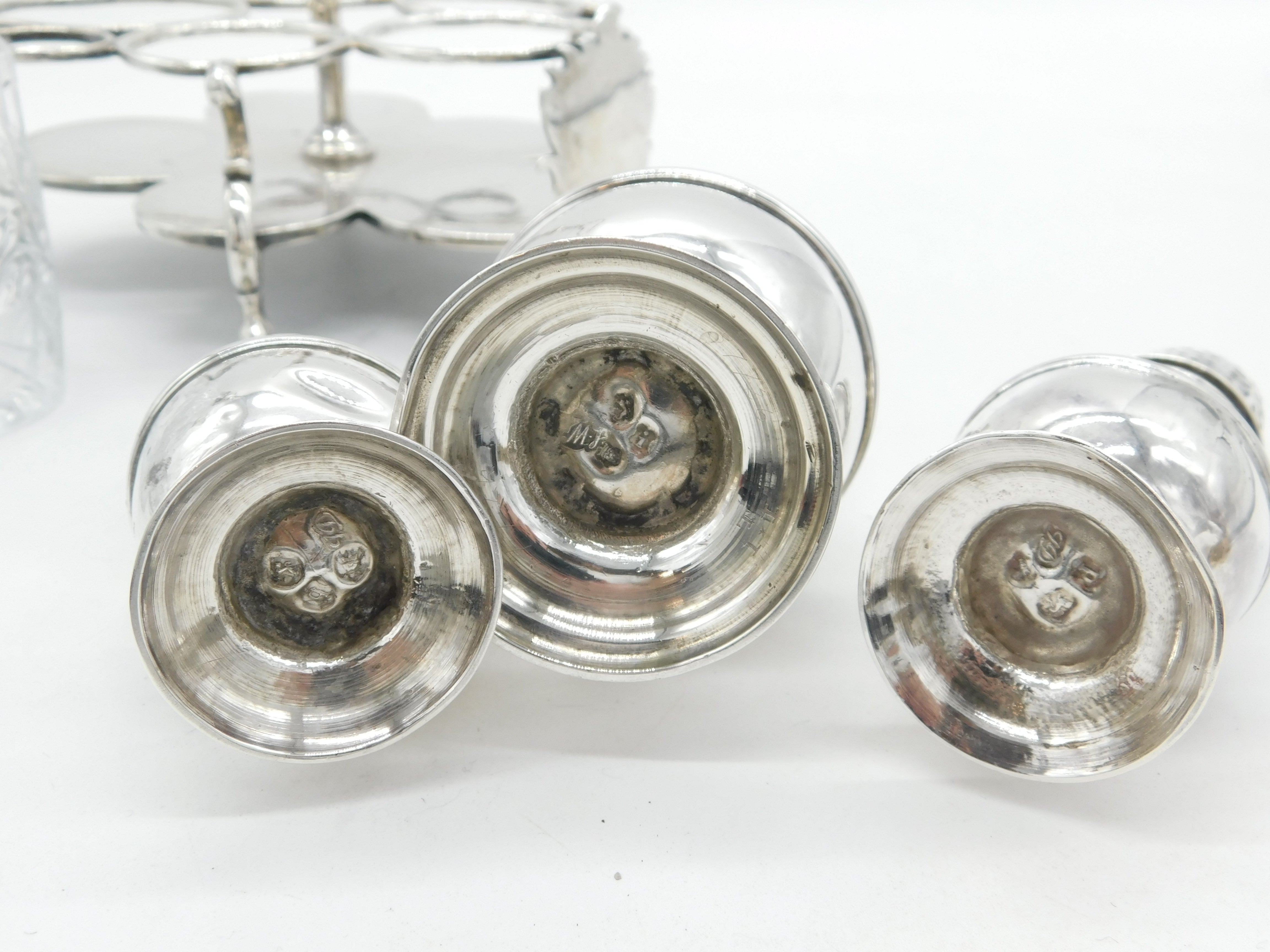 Condition Report: Both the small casters have minor splits to the silver please note, one of the cut glass sauce bottles has a chip to the top rim of the glass. Otherwise nice order. The item is in condition commensurate with age, all our items are quality conditioned prior to listings however some may have age related signs of wear commensurate with their antique status; please refer to the photos provided as they further inform condition. Please do not hesitate to enquire if you have any questions regarding the product.