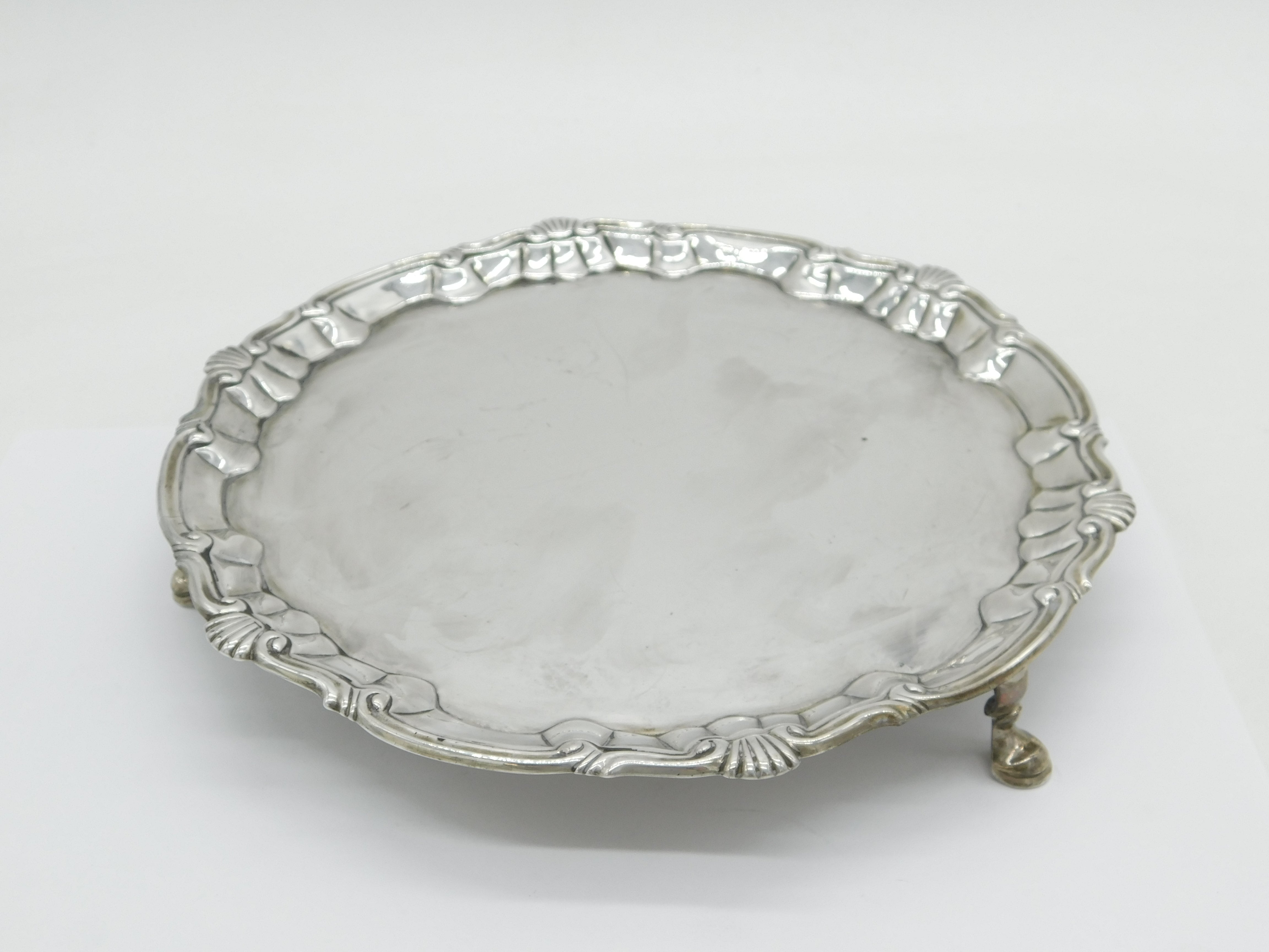 George II Sterling Silver Floral Edge Salver Dish Antique 1756 London