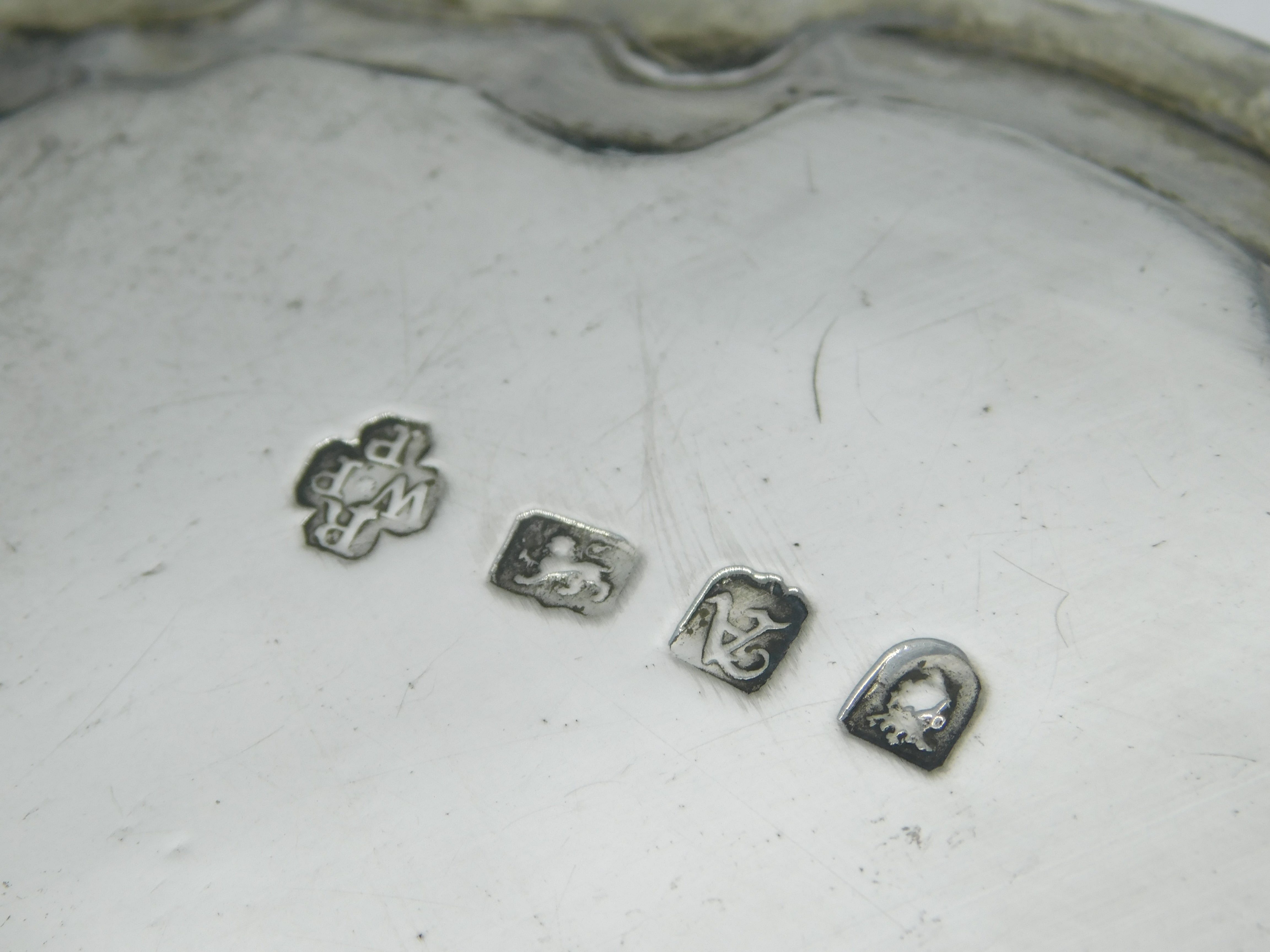 Details: A fantastic and wonderfully designed antique early-georgian sterling silver floral edged salver dish with lovely clean detailing hallmarked London 1756 by William & Robert Peaston. This is a wonderful item that would make a perfect gift or addition to any collection. We are more than happy to provide XRF reports for items upon request.
