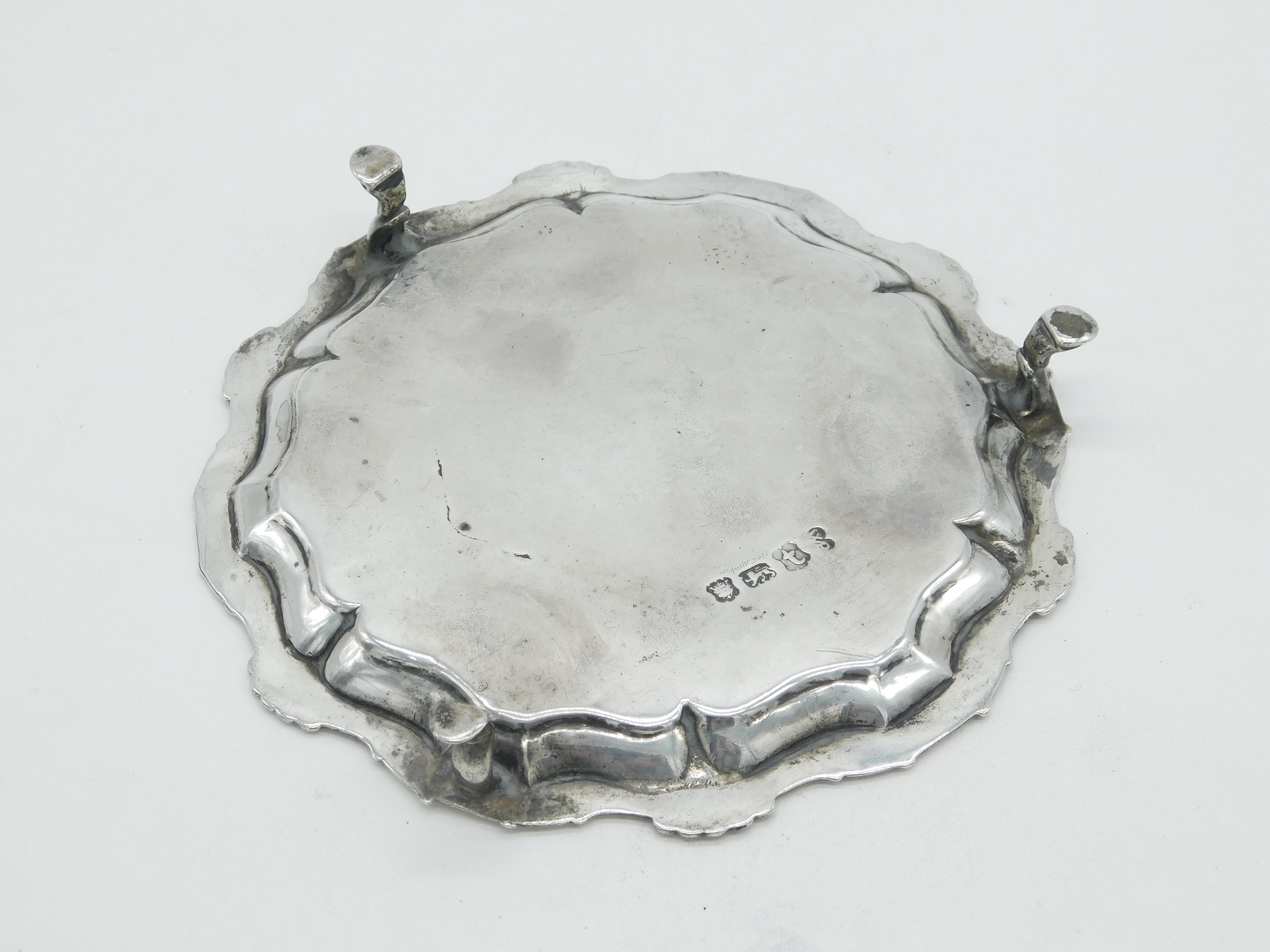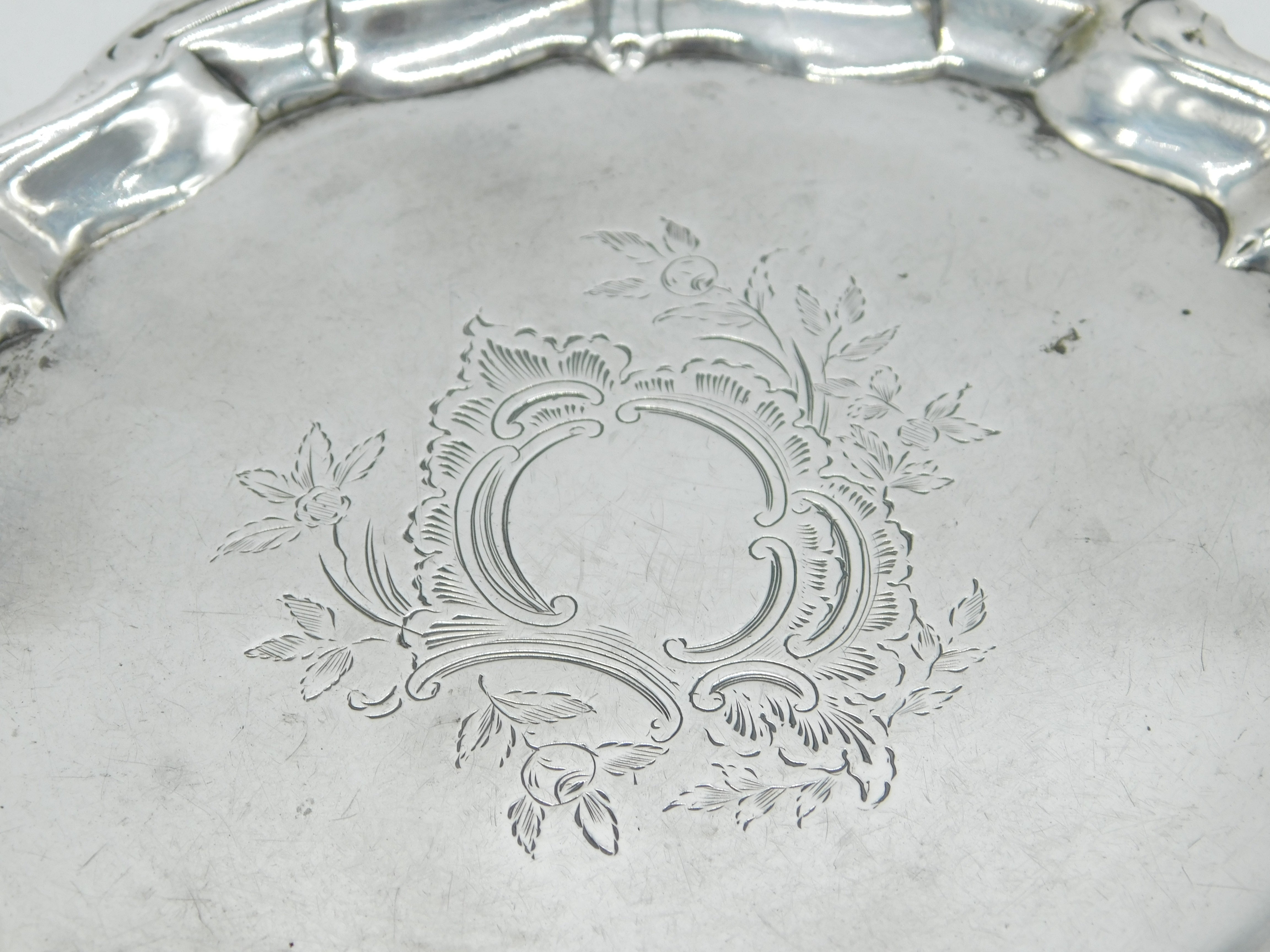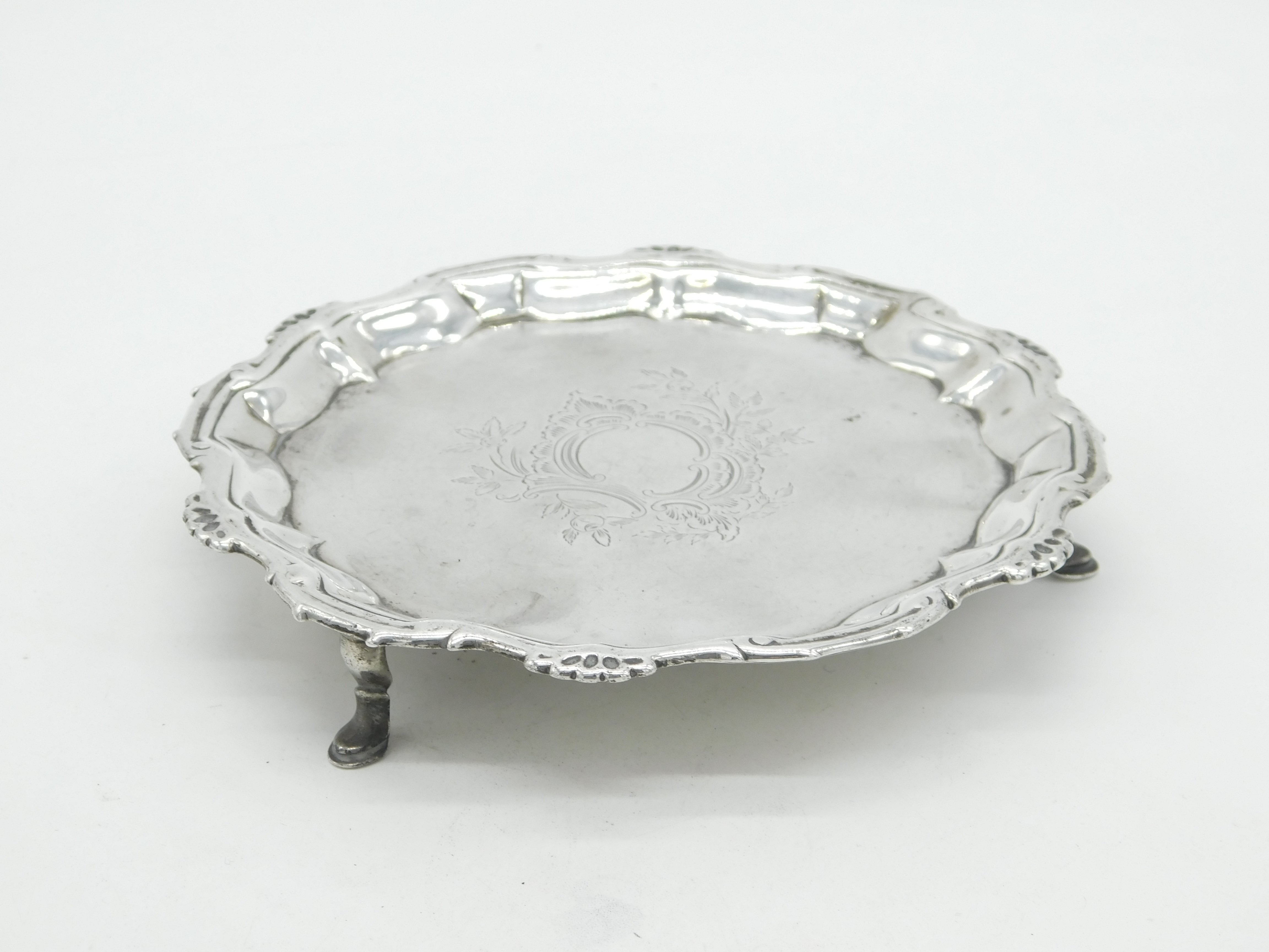George II Sterling Silver Floral Pattern Salver Dish Antique 1754 London