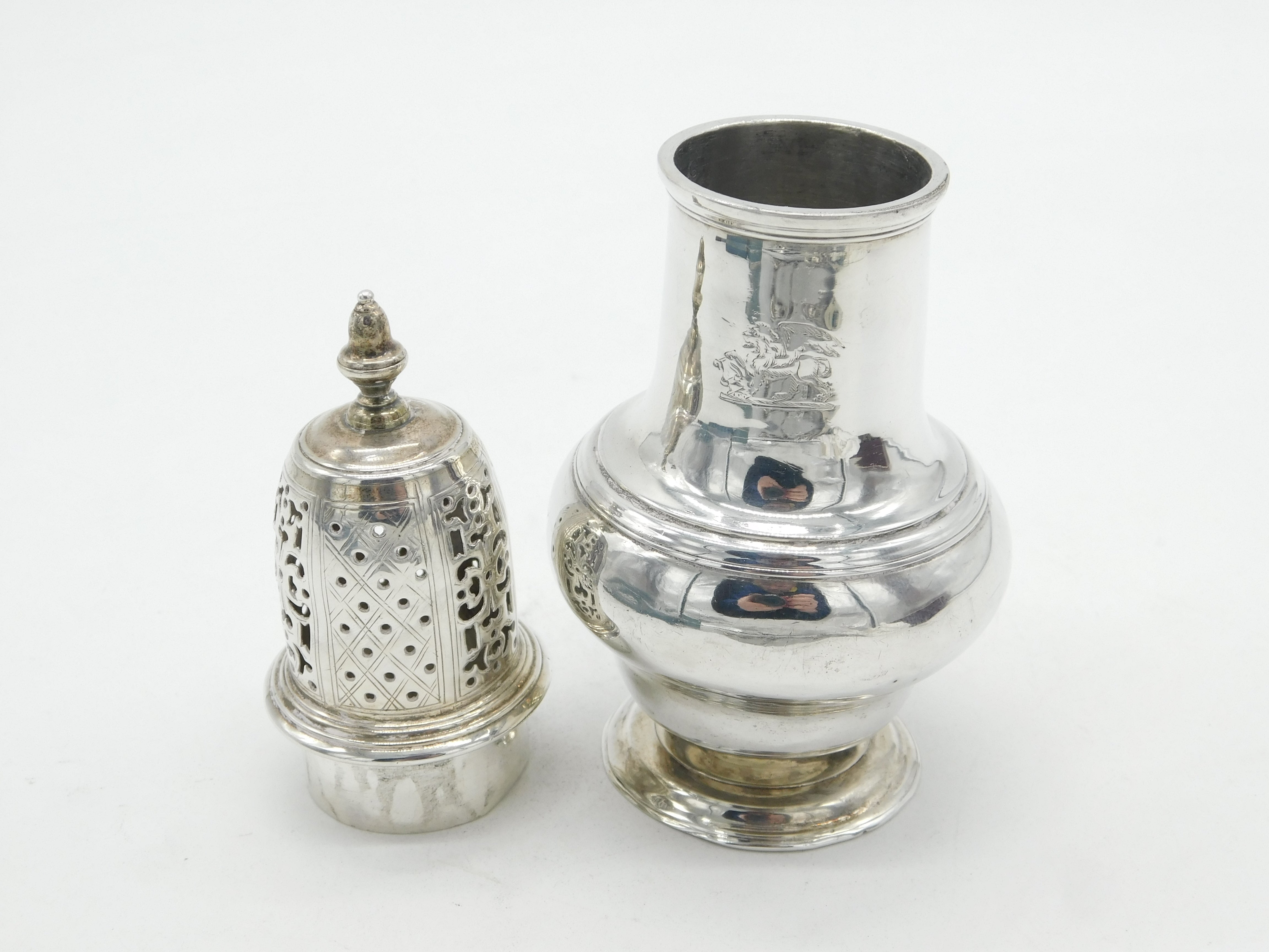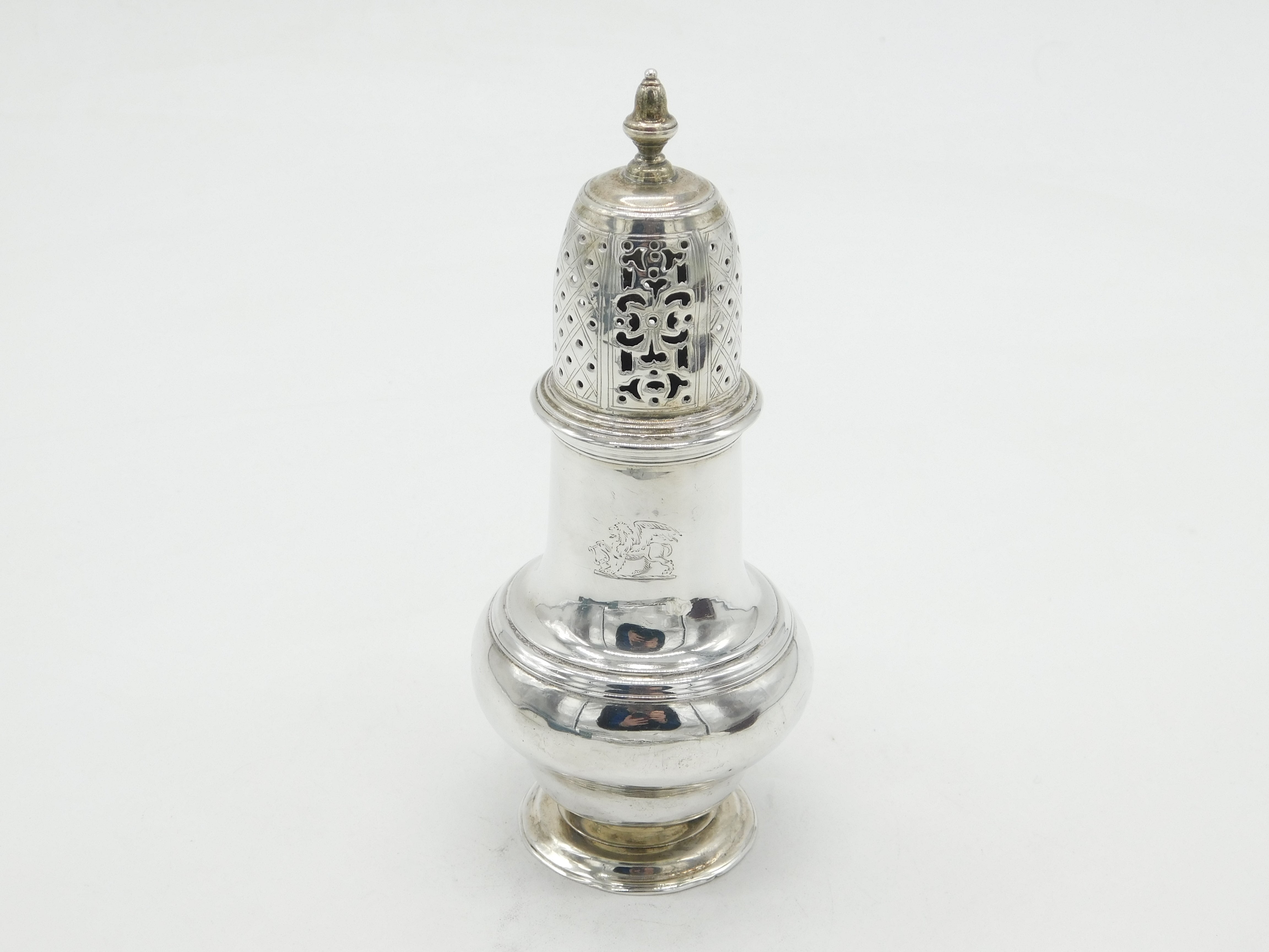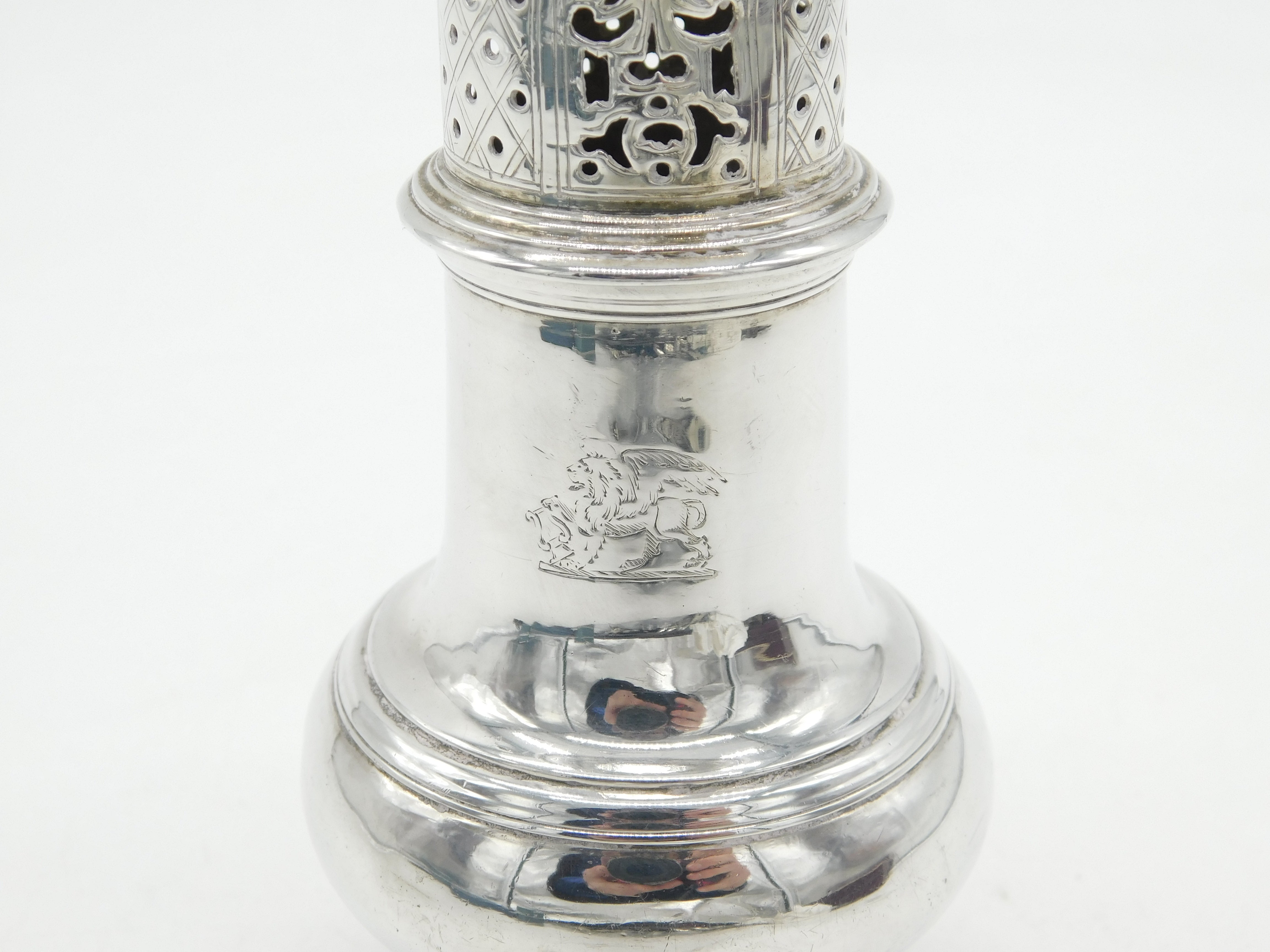 George II Sterling Silver Lion Crest Muffineer Sugar Caster Antique 1758 London