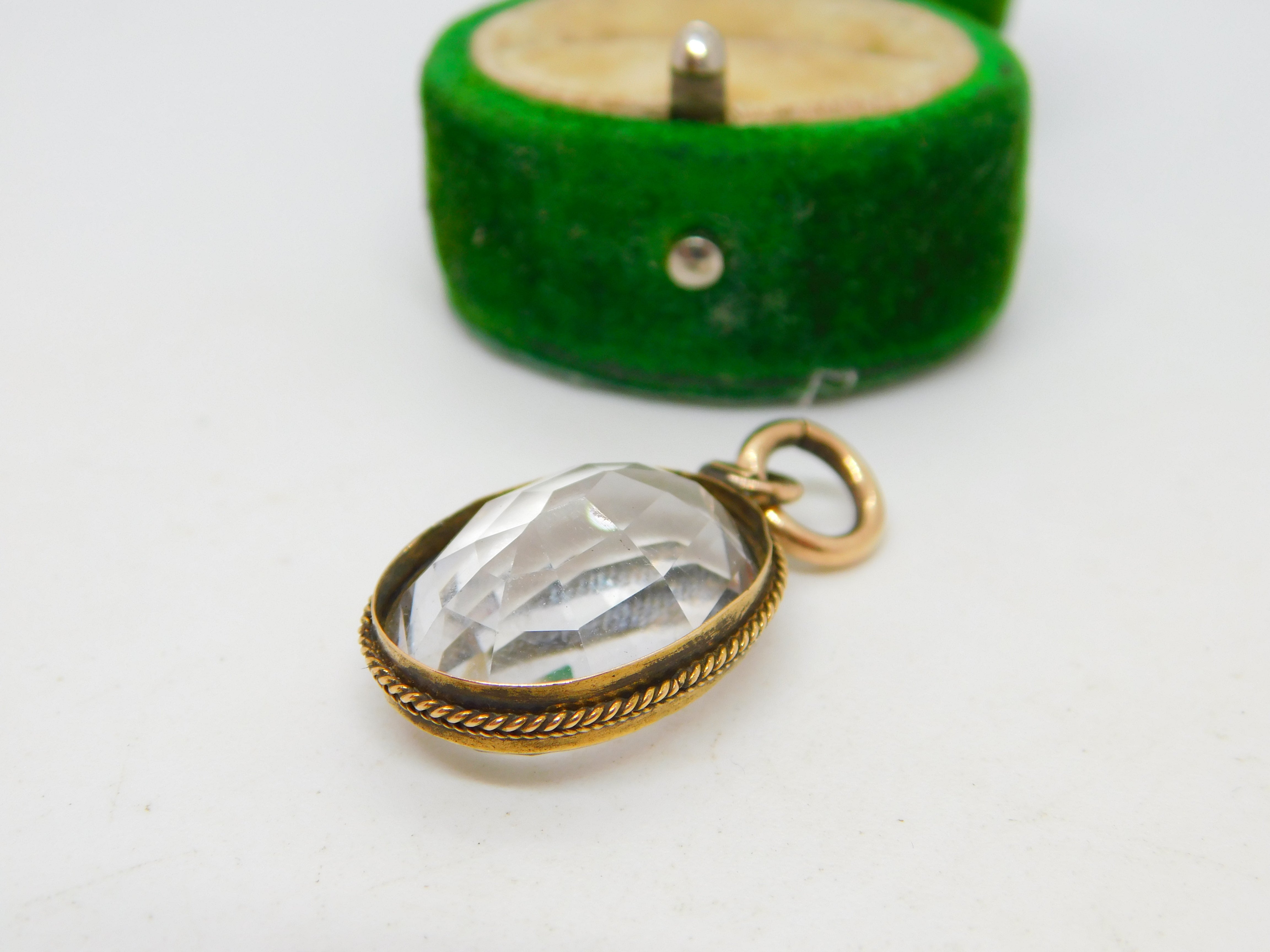 George III 15ct Yellow Gold Faceted Rock Crystal Pendant Antique c1820