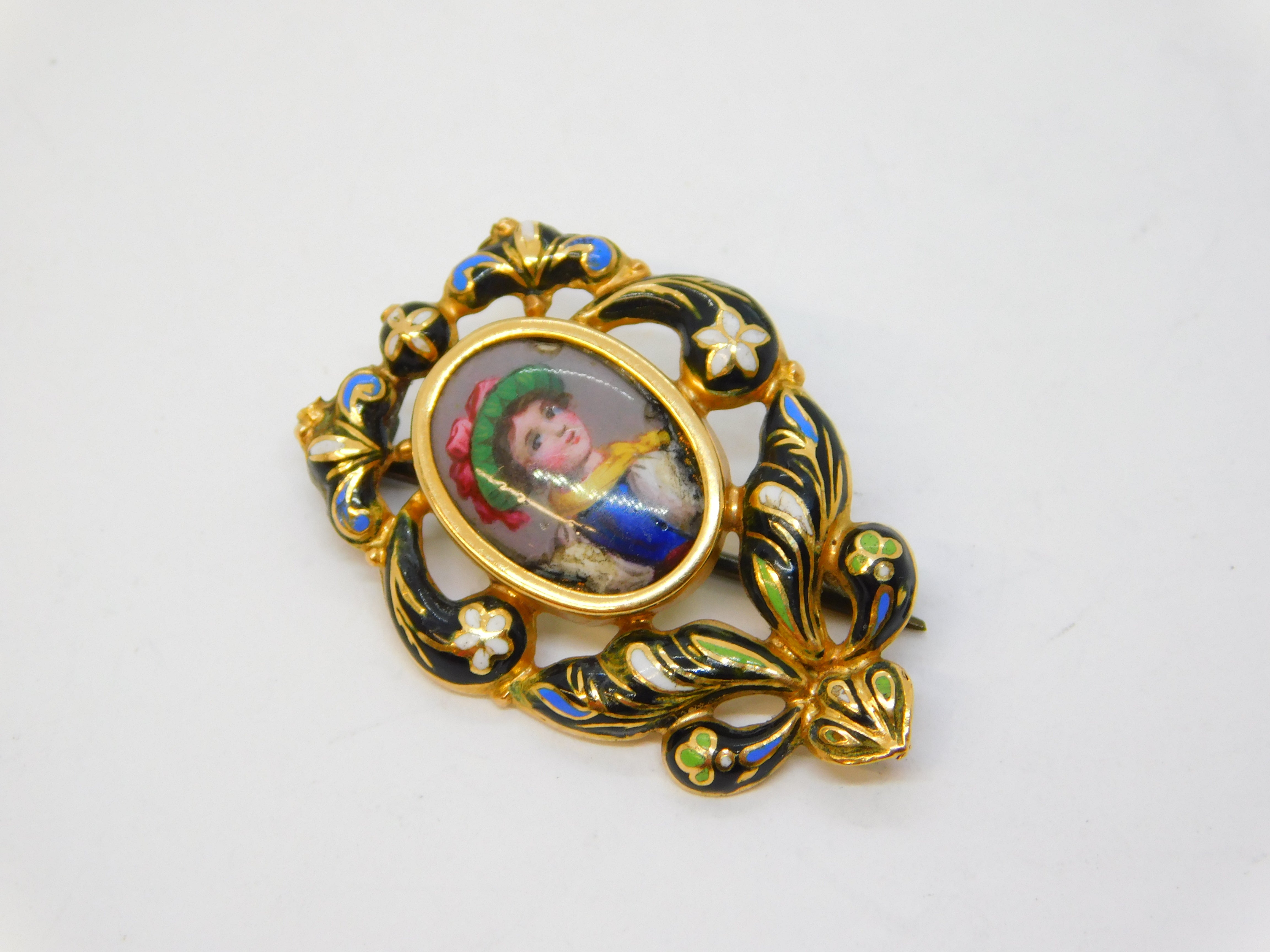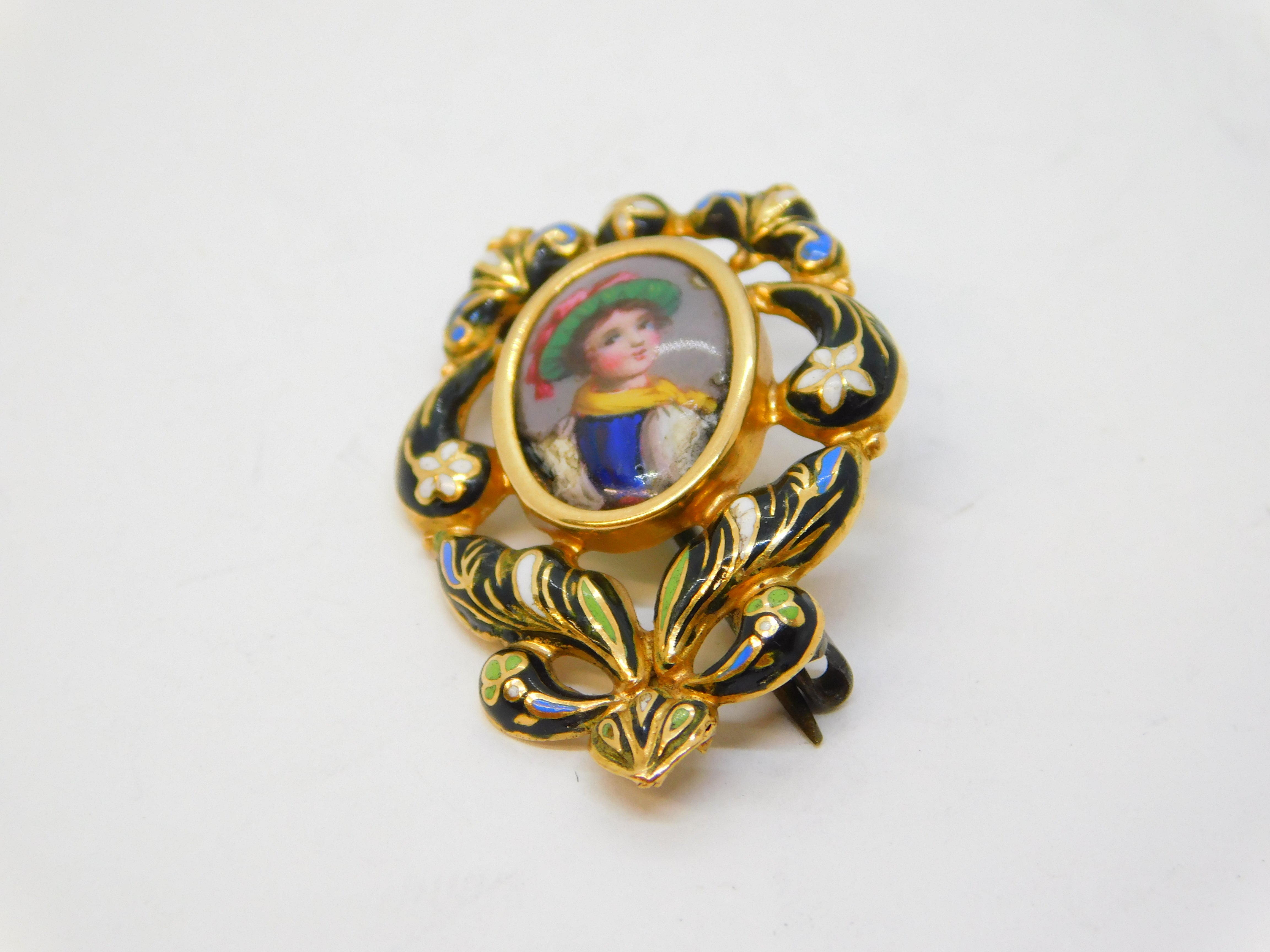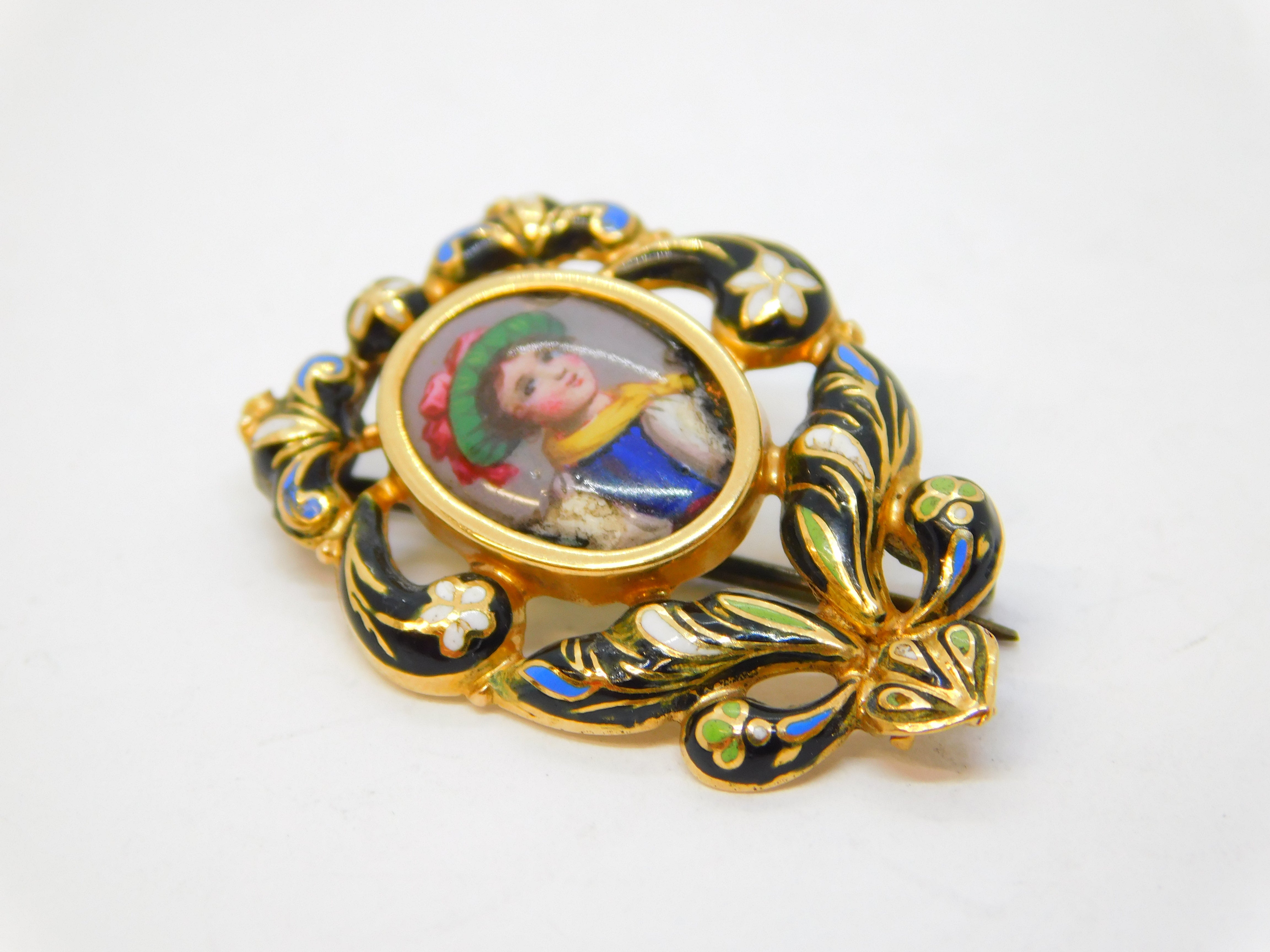 George III 18ct Gold & Colourful Enamel Child Figure Brooch Antique c1780
