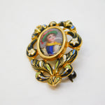 Details: A fantastic and wonderfully designed antique georgian 18ct gold floral decorated brooch with black-blue enamel surrounding a central enamel plaque depicting a young child figure, possibly a mourning brooch and likely French, c1780. The gold has been XRF tested as it is unmarked - please see pictures for report. The enamel is slighly damaged to the central plaque please note. This is a wonderful item that would make a perfect gift or addition to any collection. We are more than happy to provide XRF reports for items upon request.
