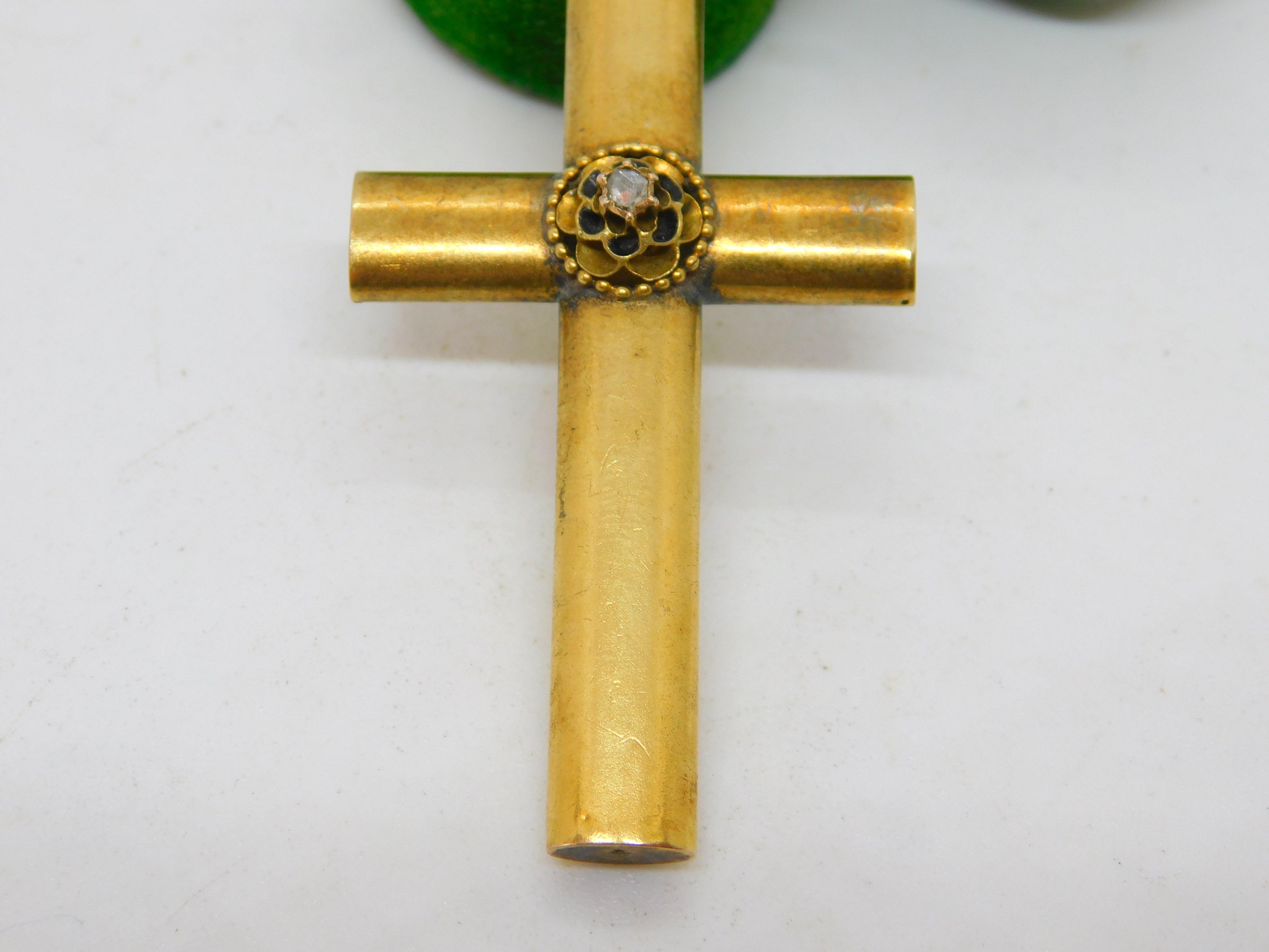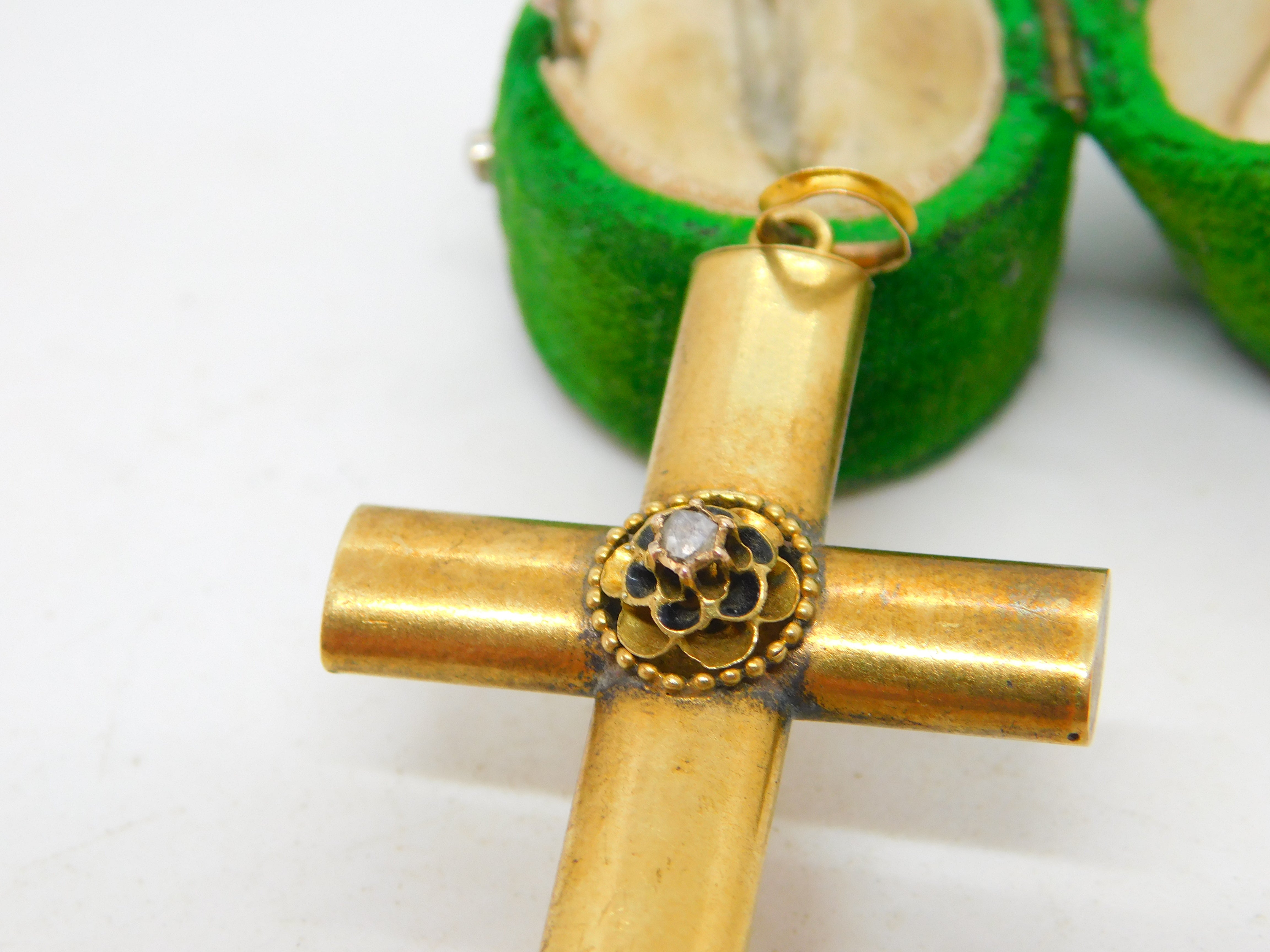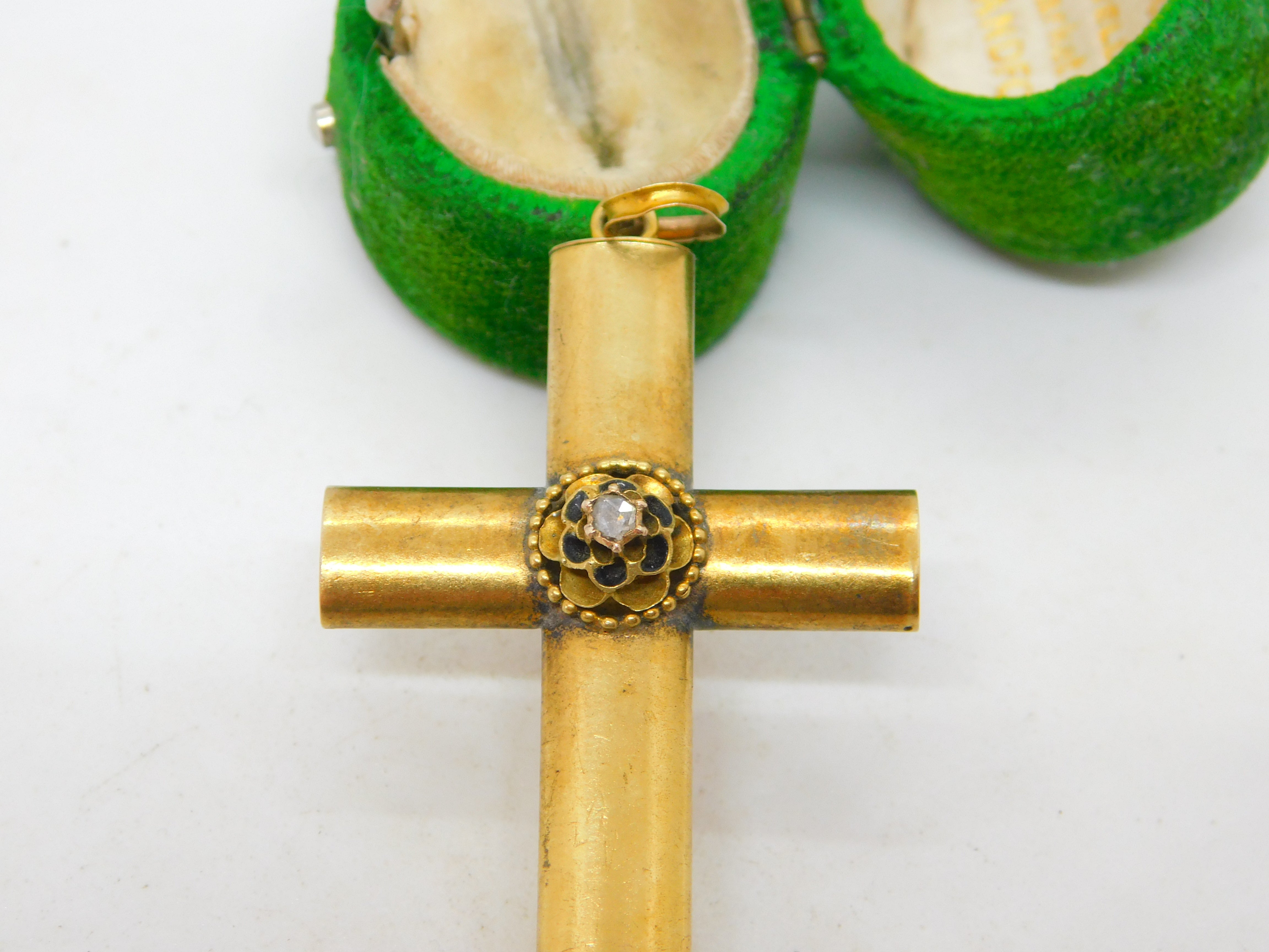 George III 18ct Yellow Gold 0.1ct Old-Cut Diamond Cross Pendant Antique c1820