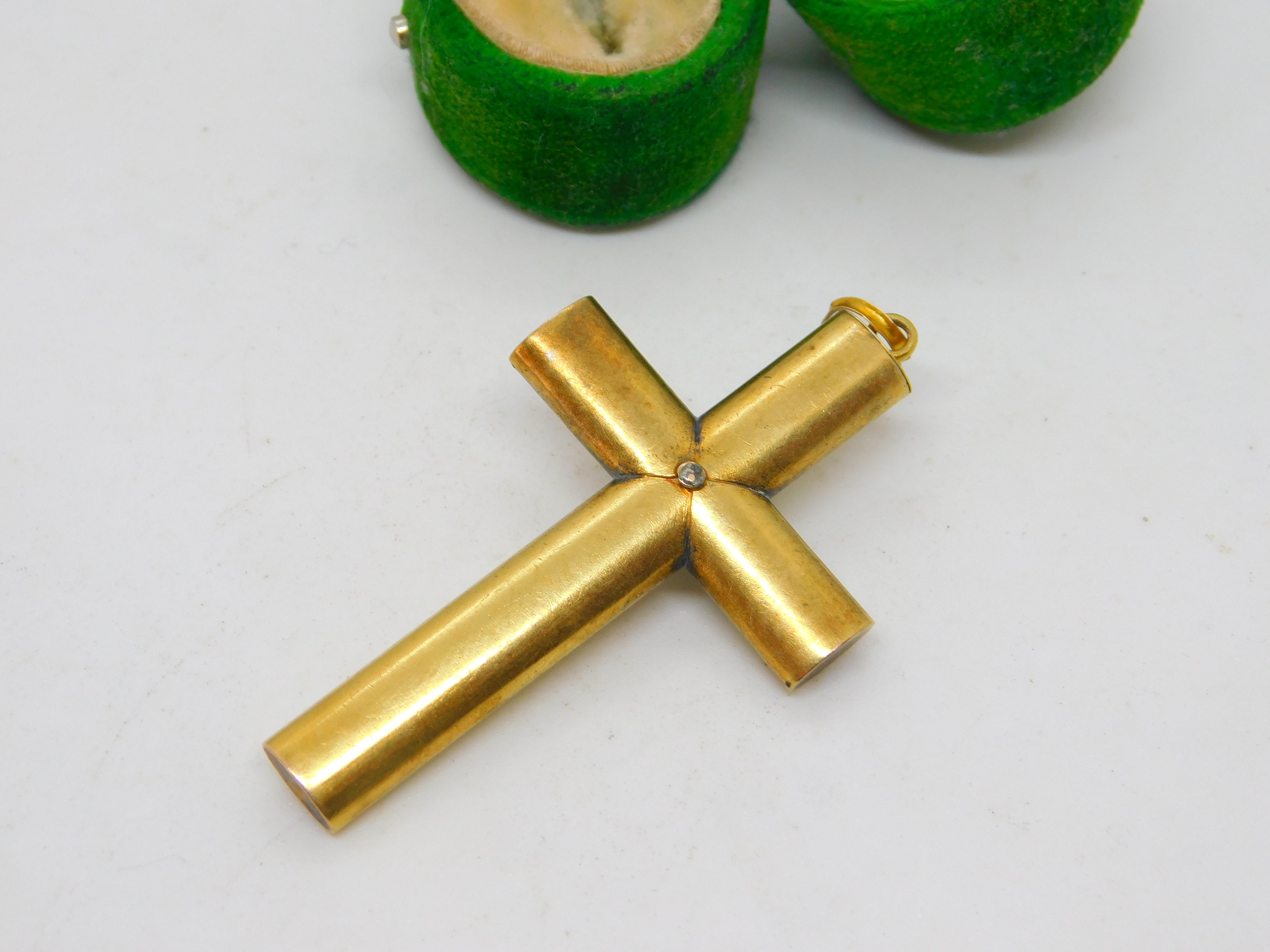 Details: A fantastic and wonderfully designed antique georgian 18ct yellow gold large cross pendant set with a central old-cut diamond c1820, the gold has been XRF tested as it is unmarked. This is a wonderful item that would make a perfect gift or addition to any collection. The BOX pictured is for PRESENTATION ONLY and is NOT included in the listings but used to frame the pictures unless specifically stated otherwise.