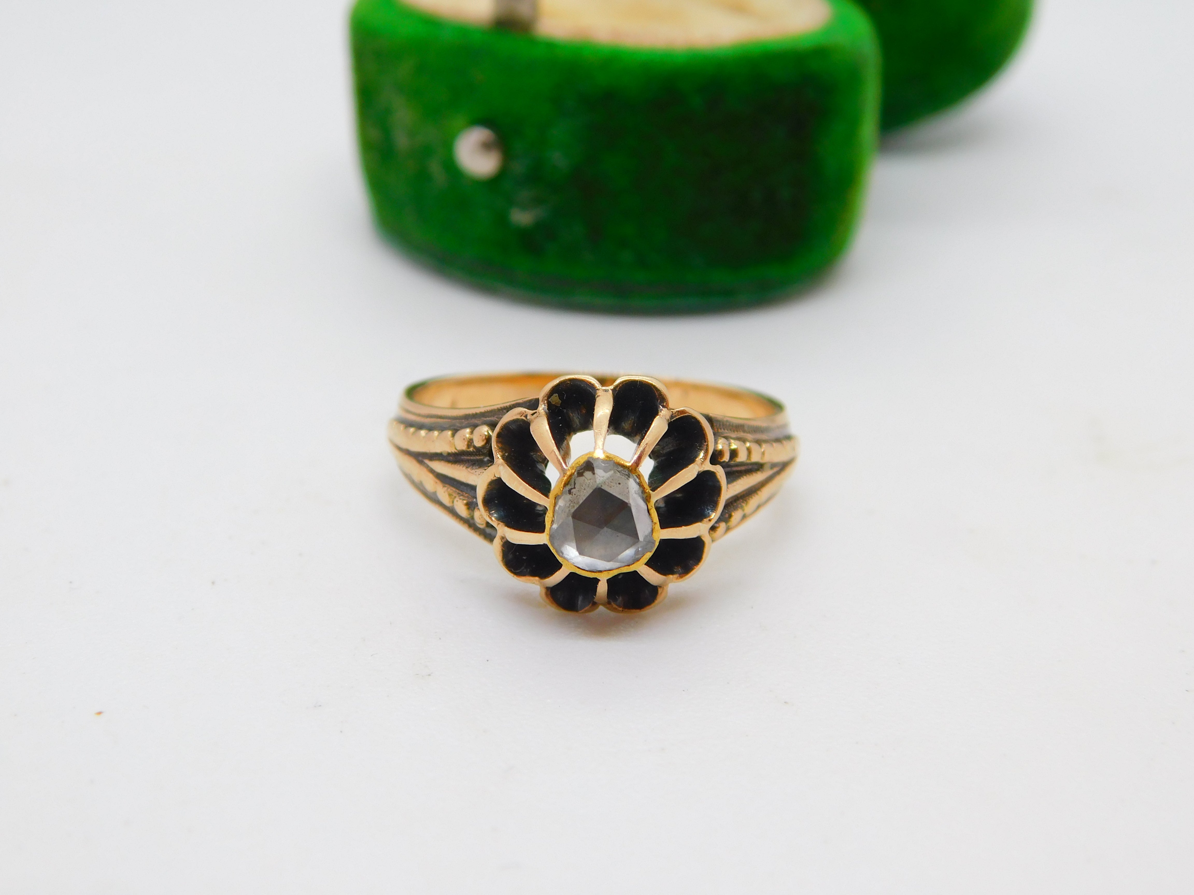 George III 18ct Yellow Gold & 0.5ct Old-Cut Diamond Dress Ring Antique c1820