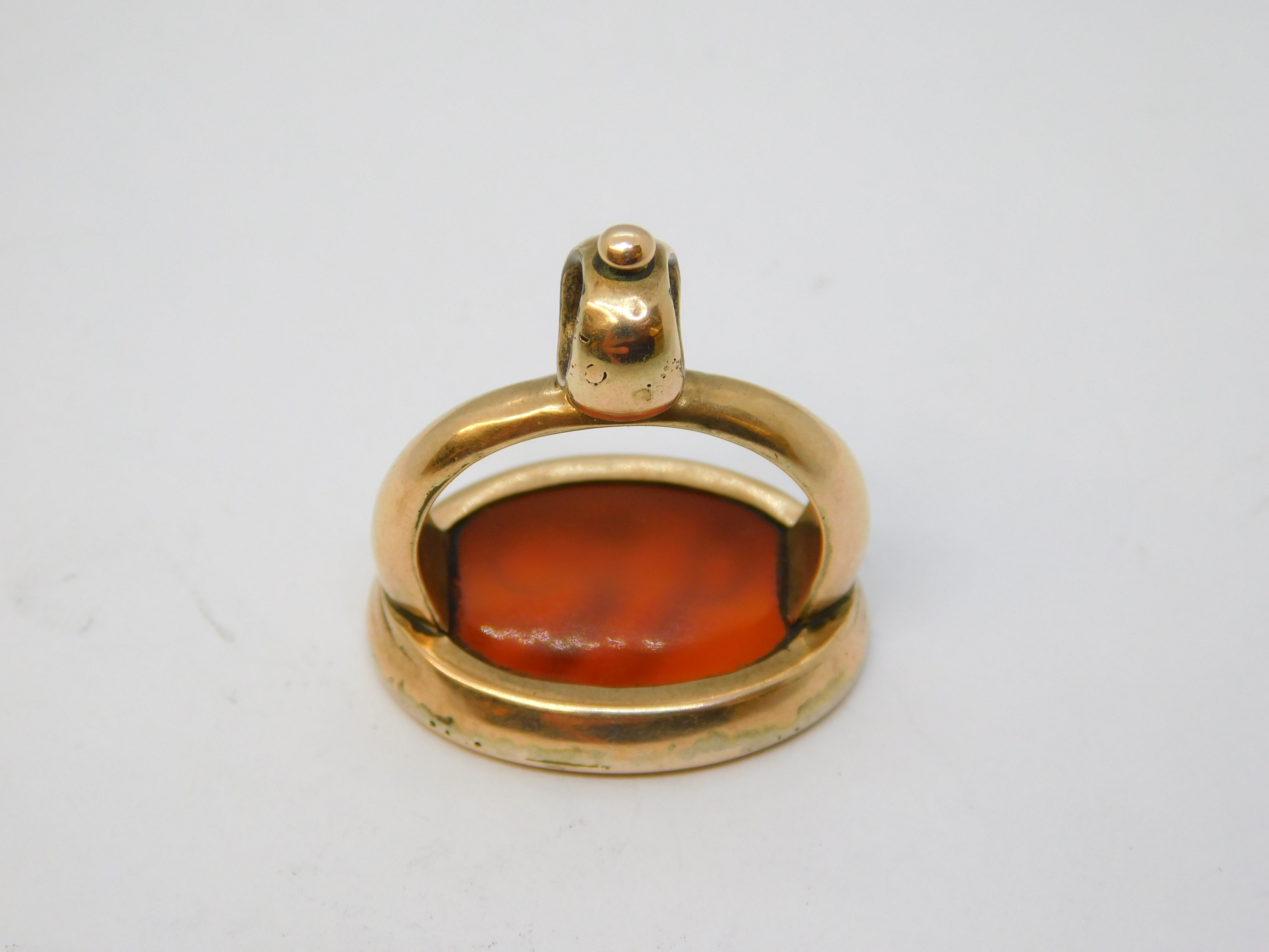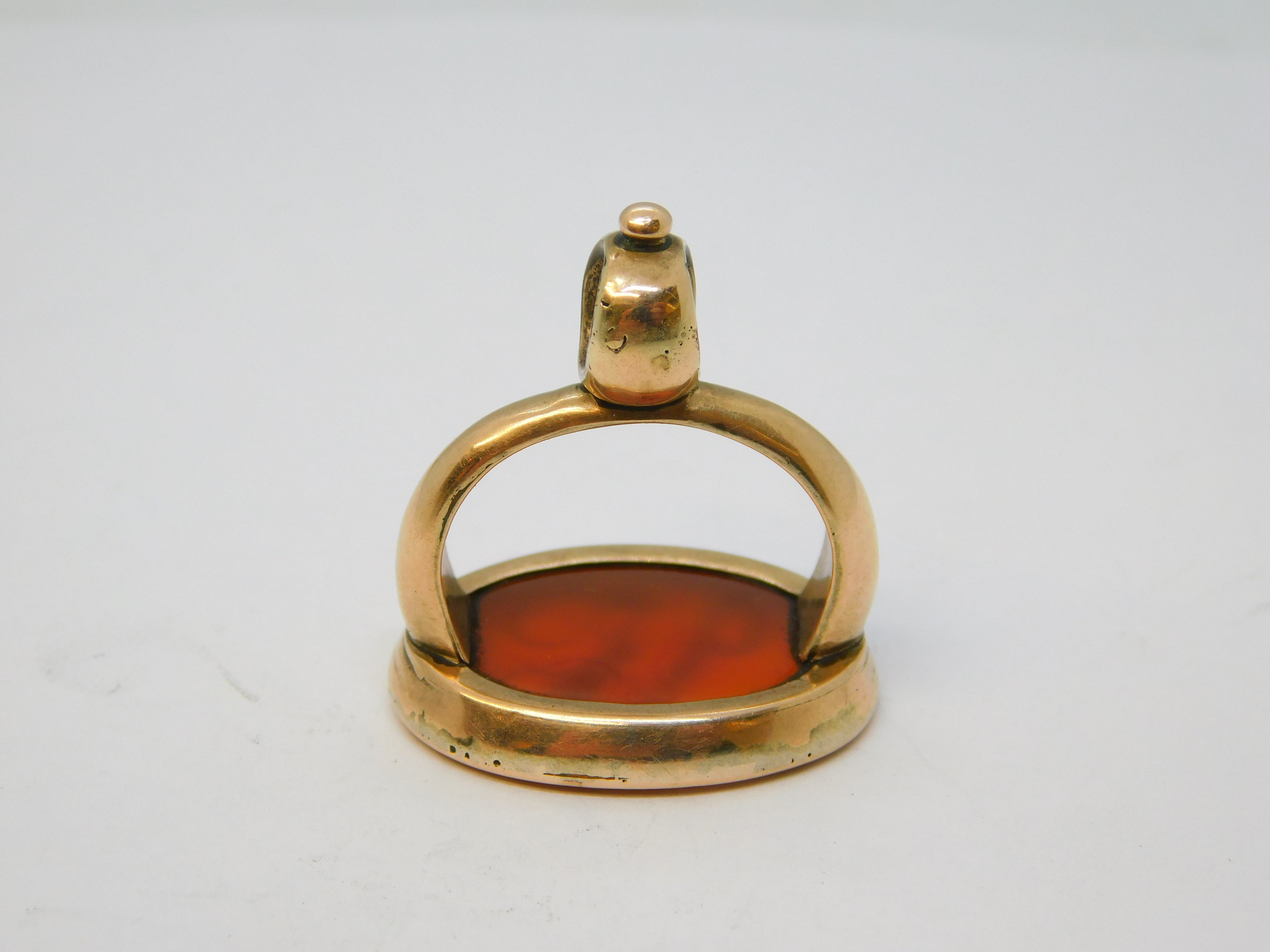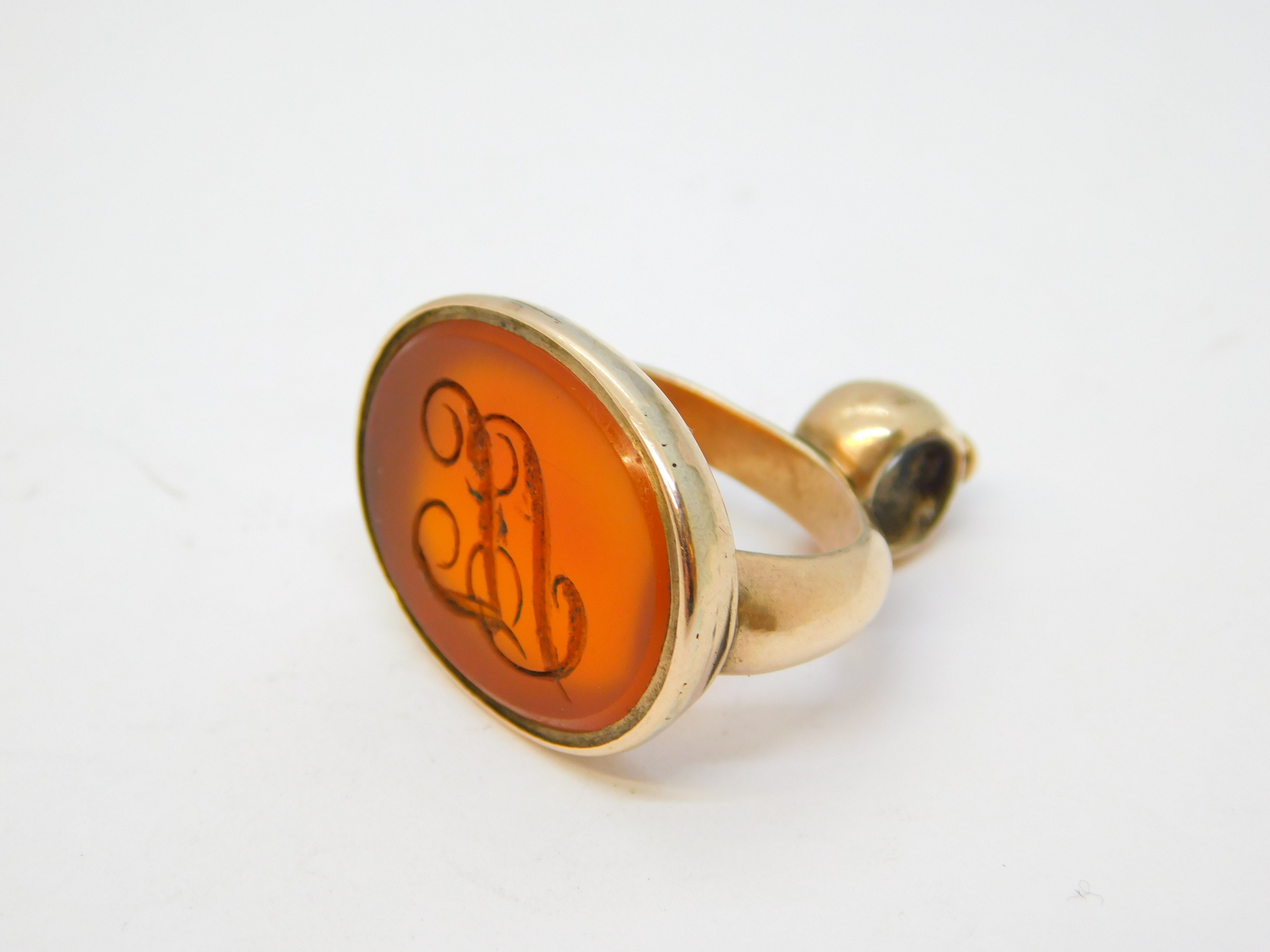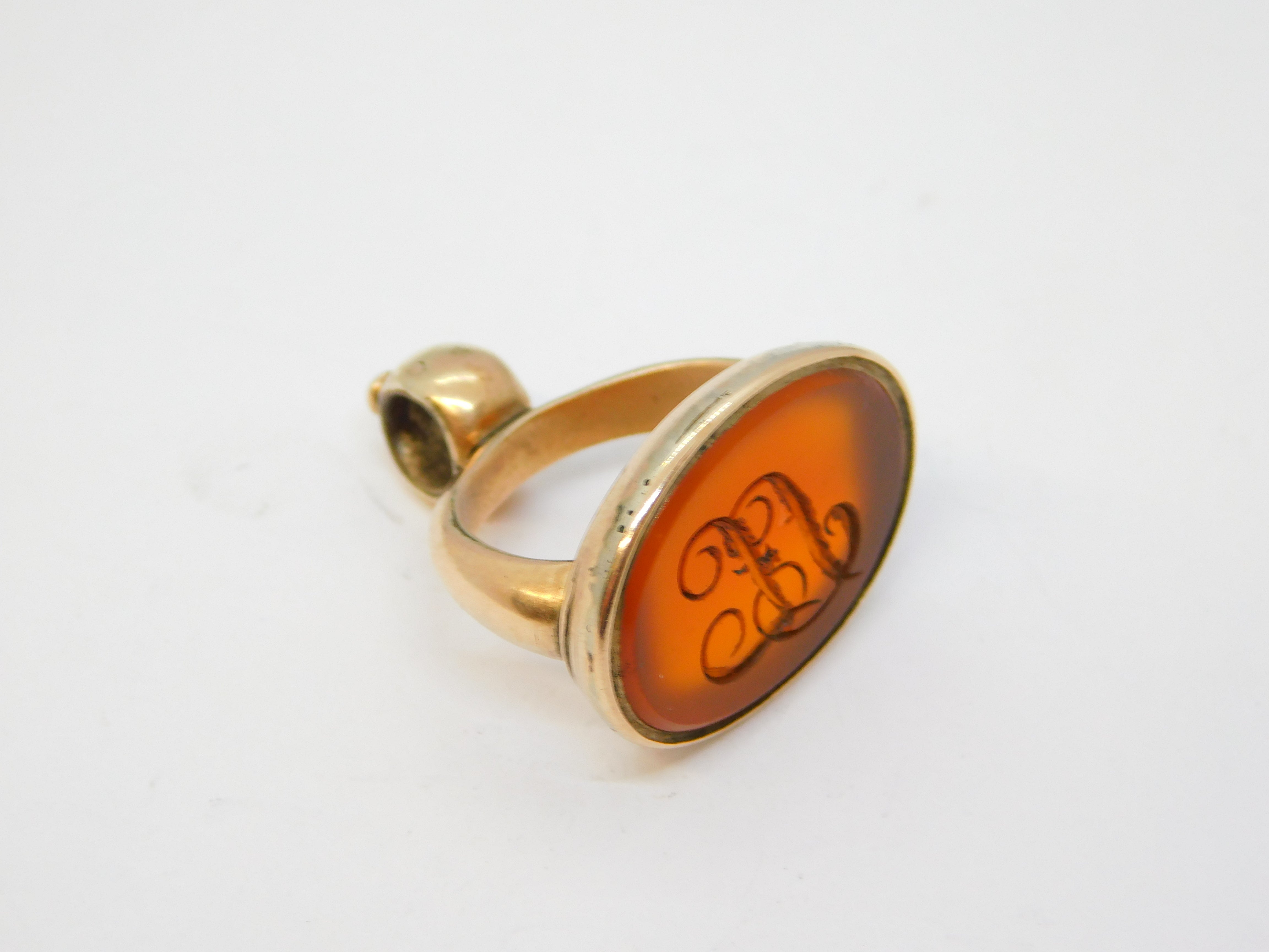 George III 9ct Gold & Carved Carnelian Monogram Intaglio Fob Seal Antique c1820
