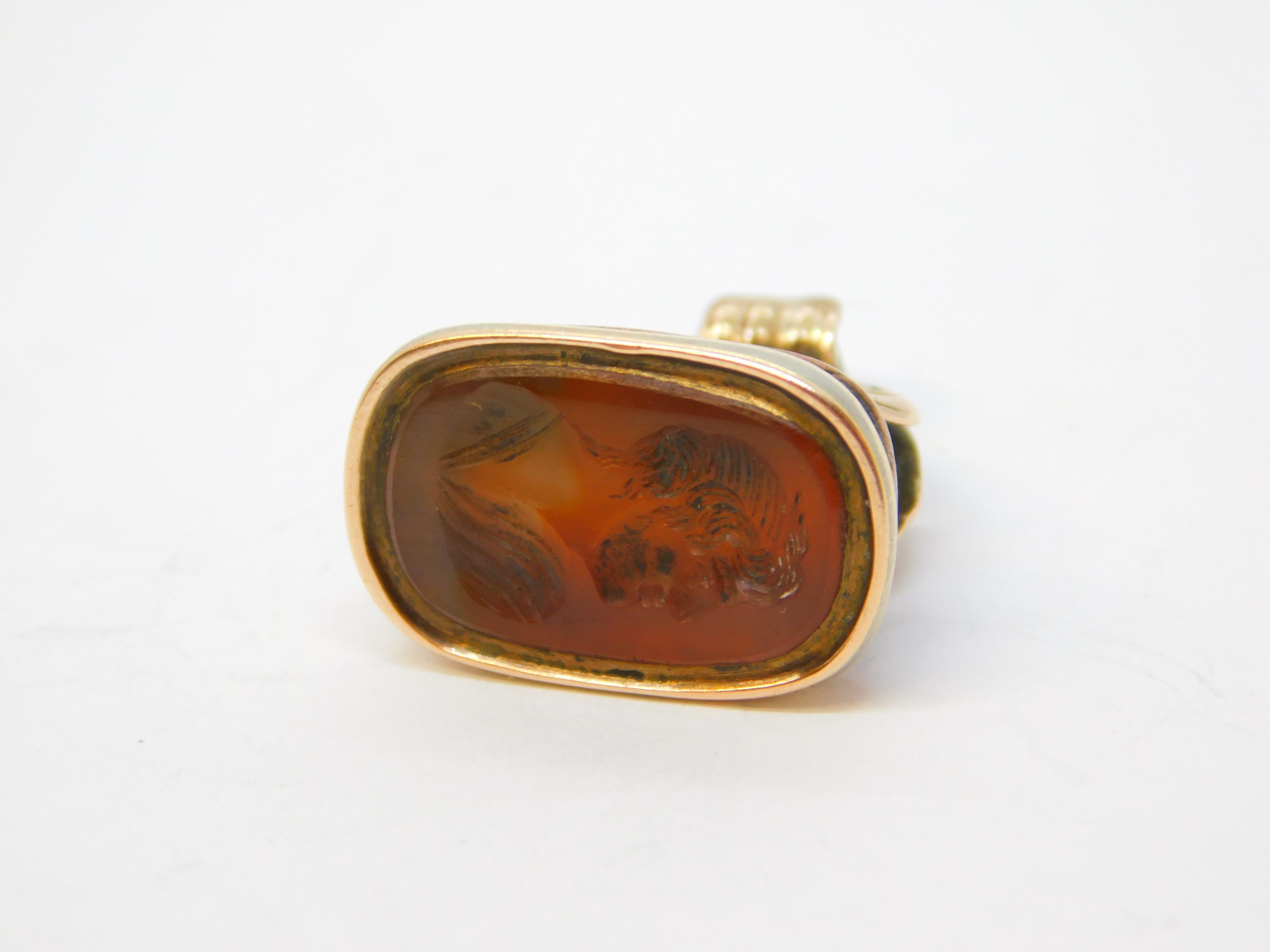 George III 9ct Rose Gold & Carnelian Intaglio Fob Seal Antique c1800