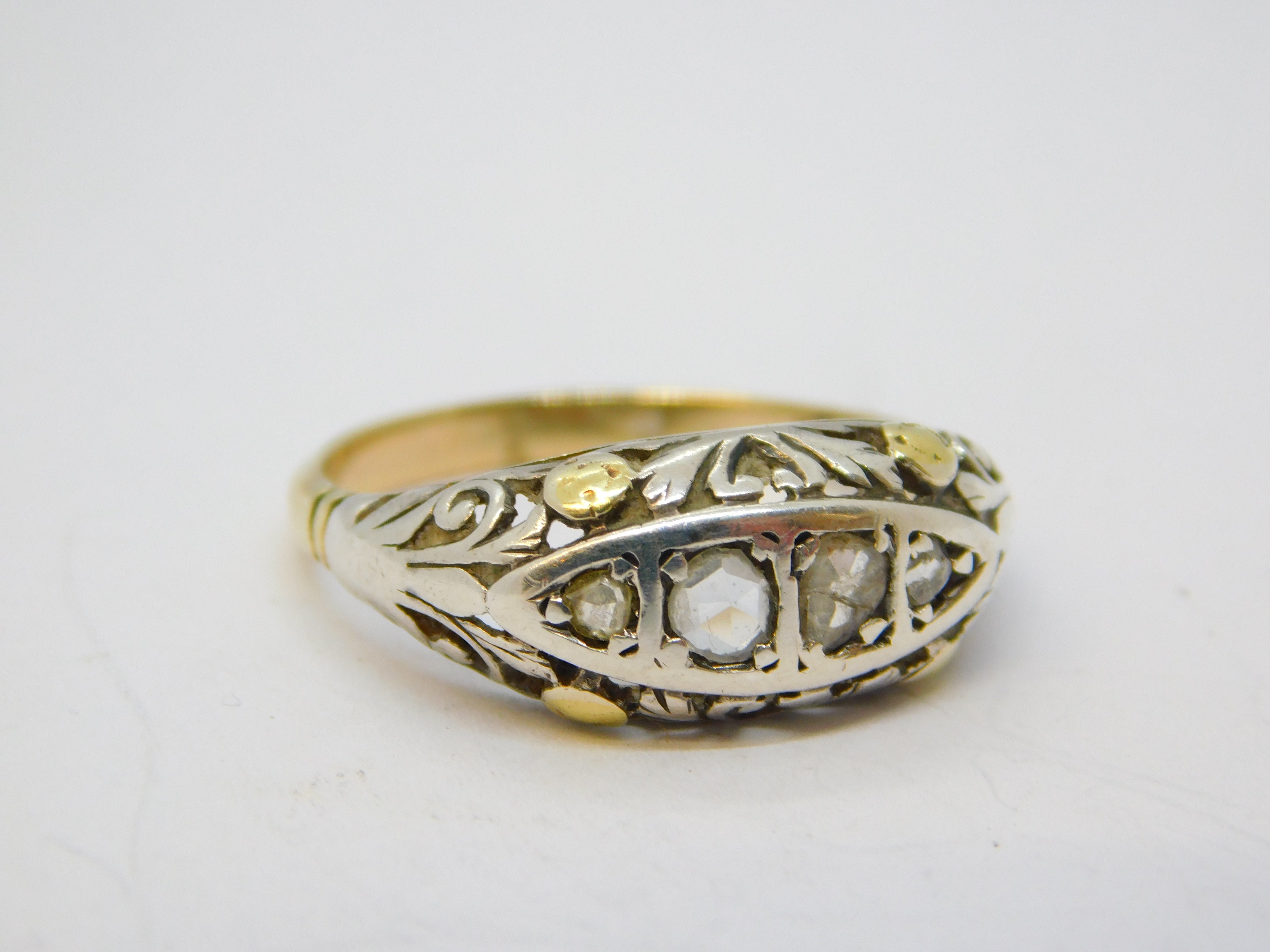 George III 9ct Yellow Gold & Silver Set Old-Cut Diamond Boat Ring Antique c1780