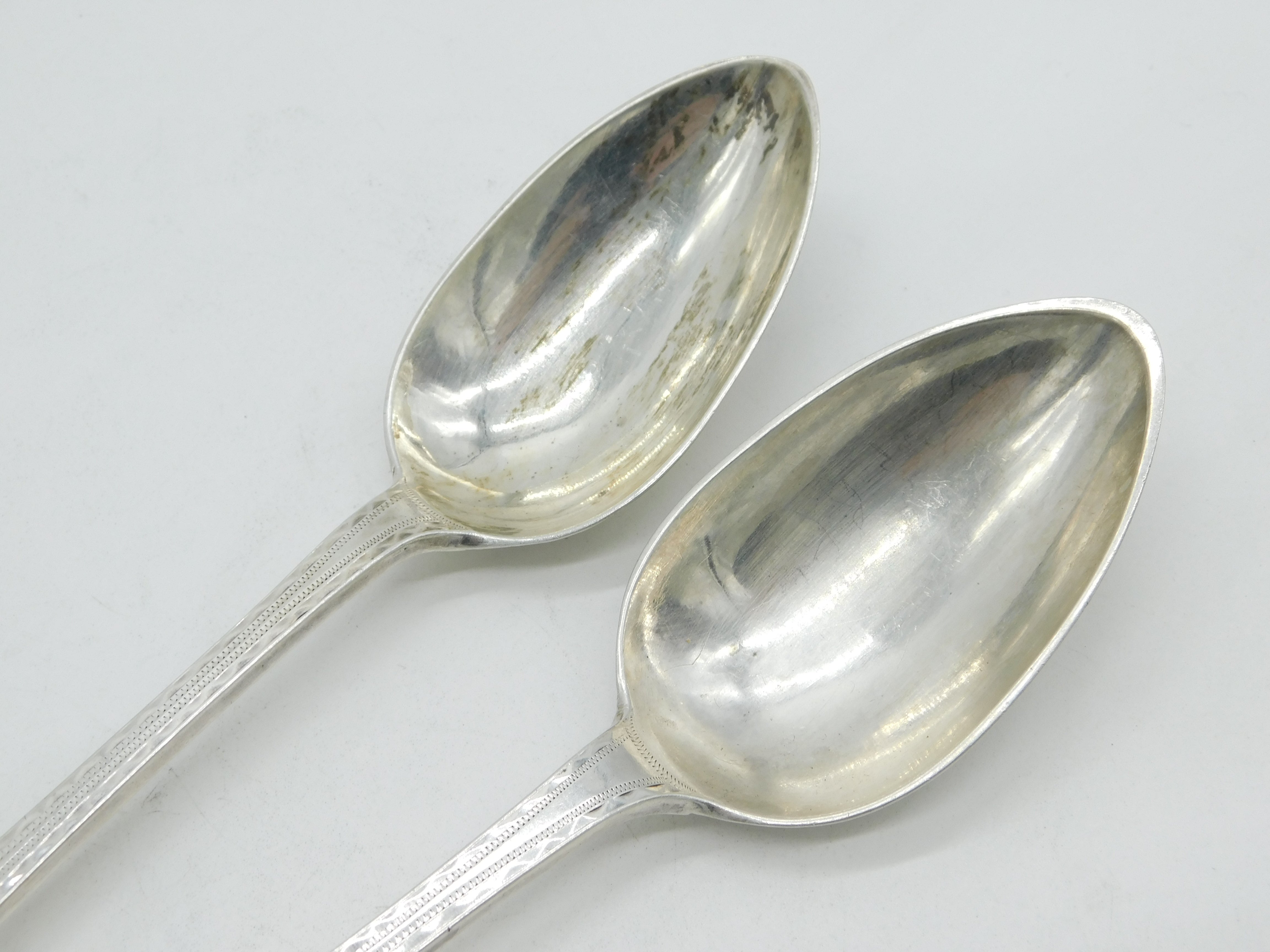 George III Scottish Sterling Silver Celtic Point Serving Spoon Pair Antique 1790