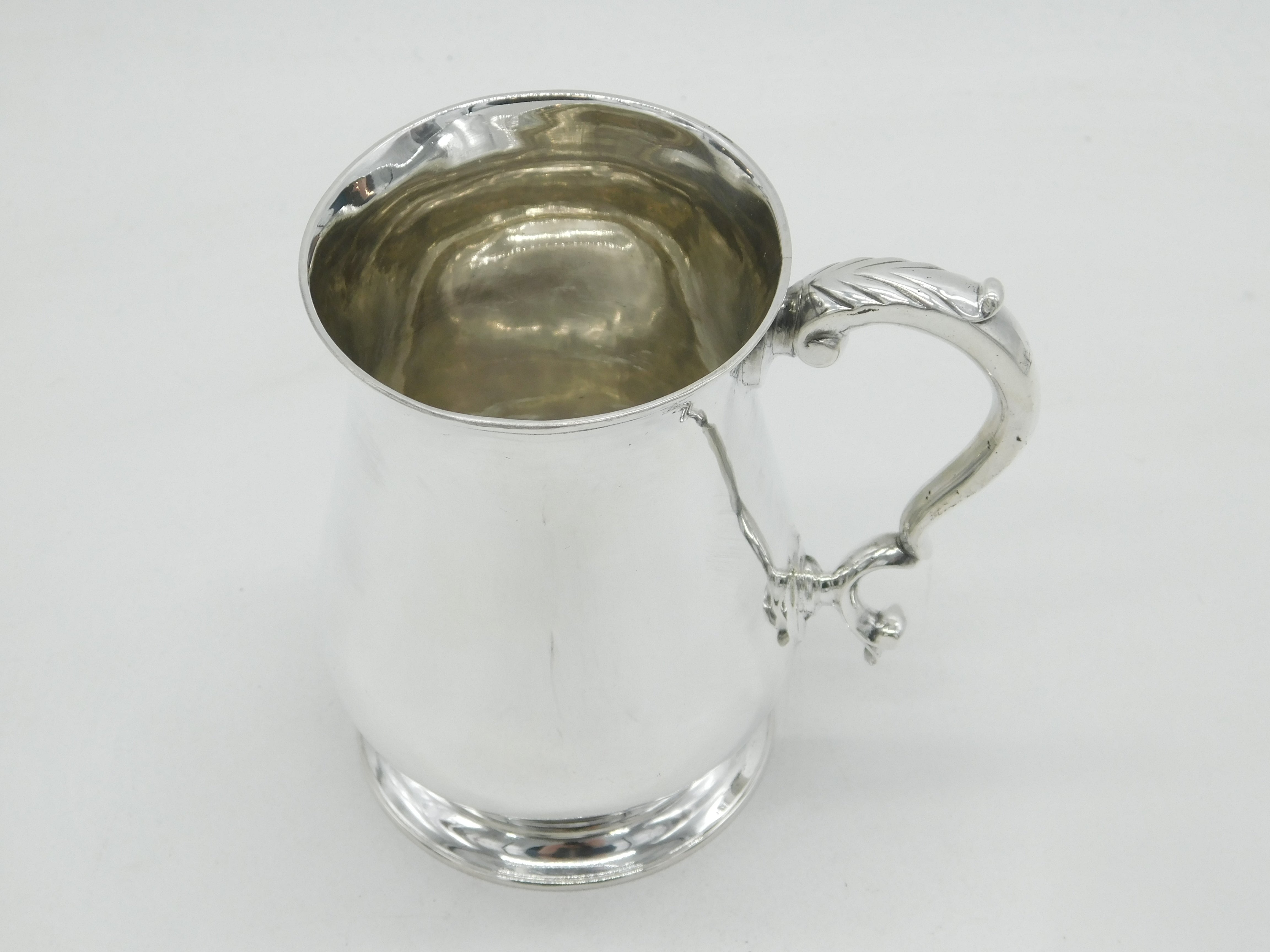 Details: A fantastic and wonderfully designed antique georgian sterling silver baluster tankard with cast folate handle, hallmarked to the base for London 1772 by Thomas Wallis I. This is a wonderful item that would make a perfect gift or addition to any collection. We are more than happy to provide XRF reports for items upon request.