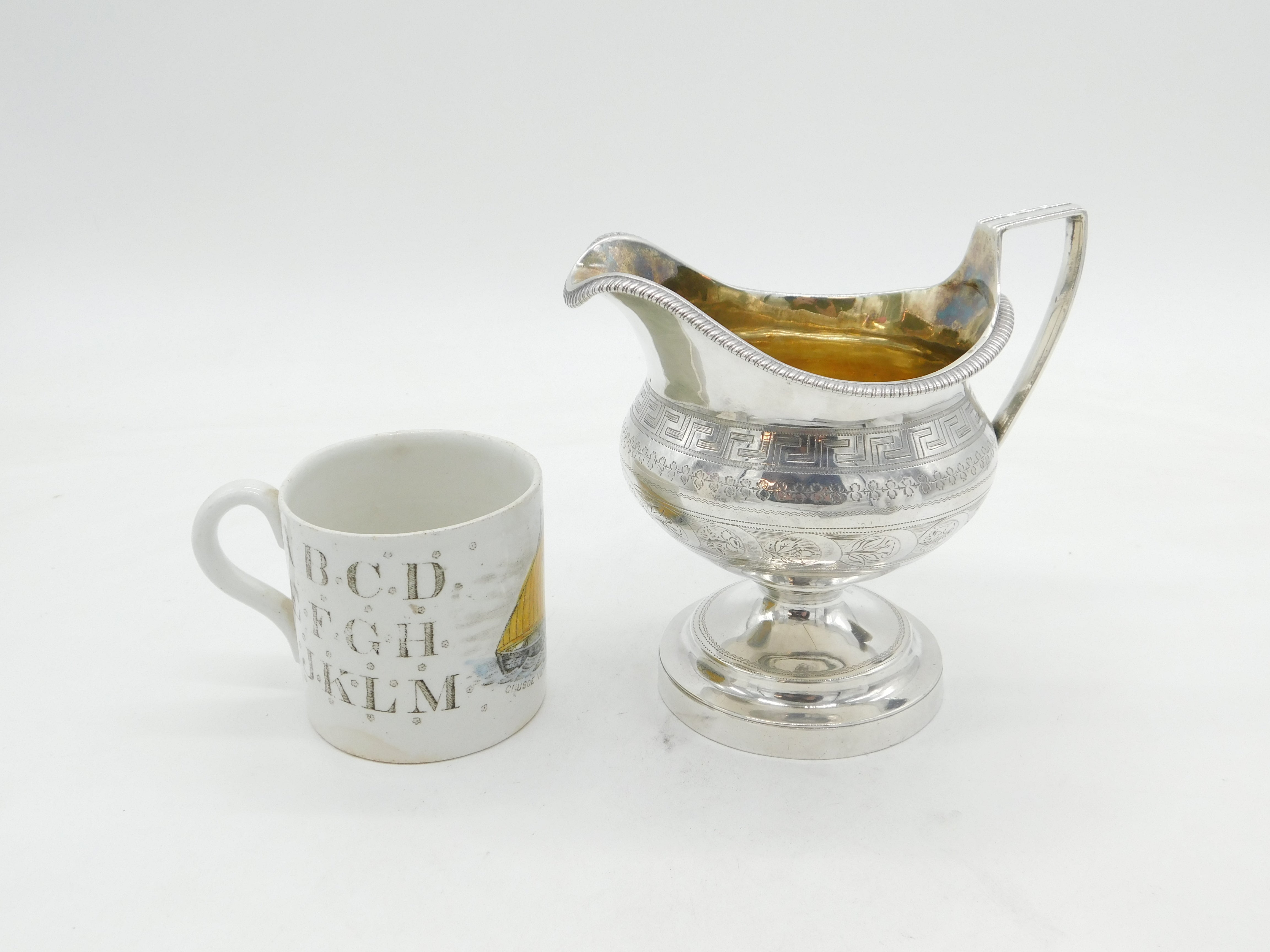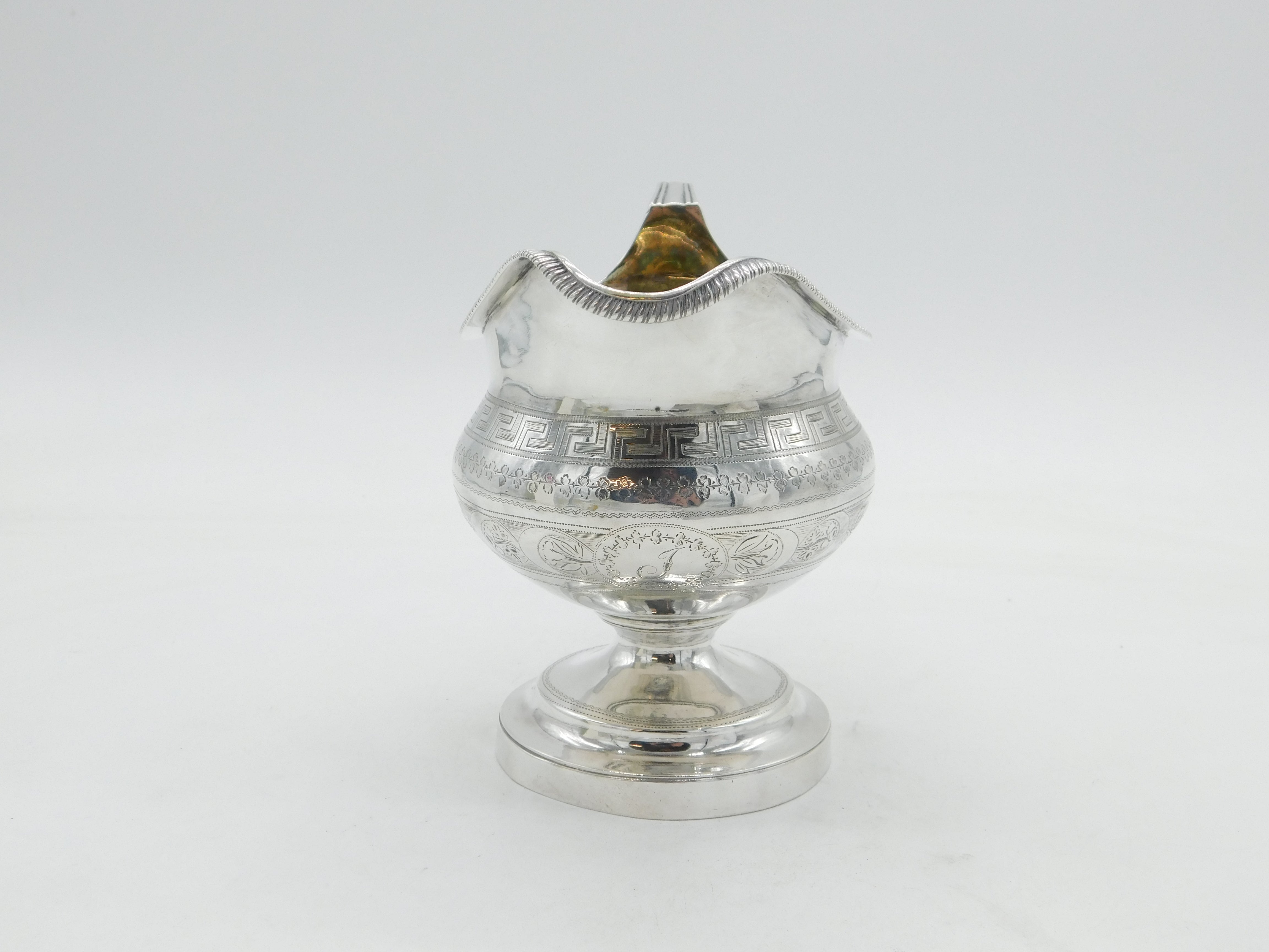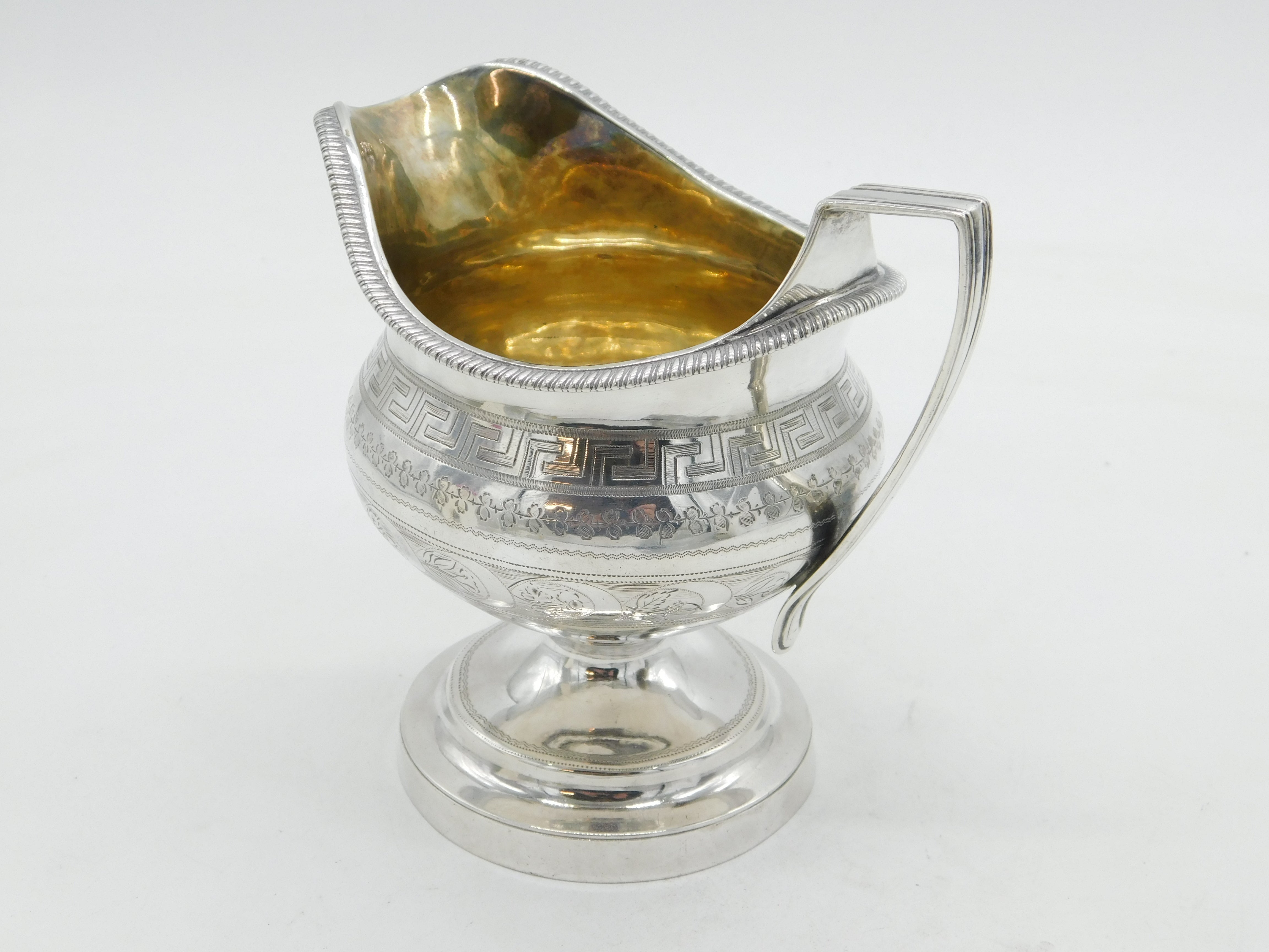 George III Sterling Silver Greek Maze Pedestal Cream Jug Antique 1801 London