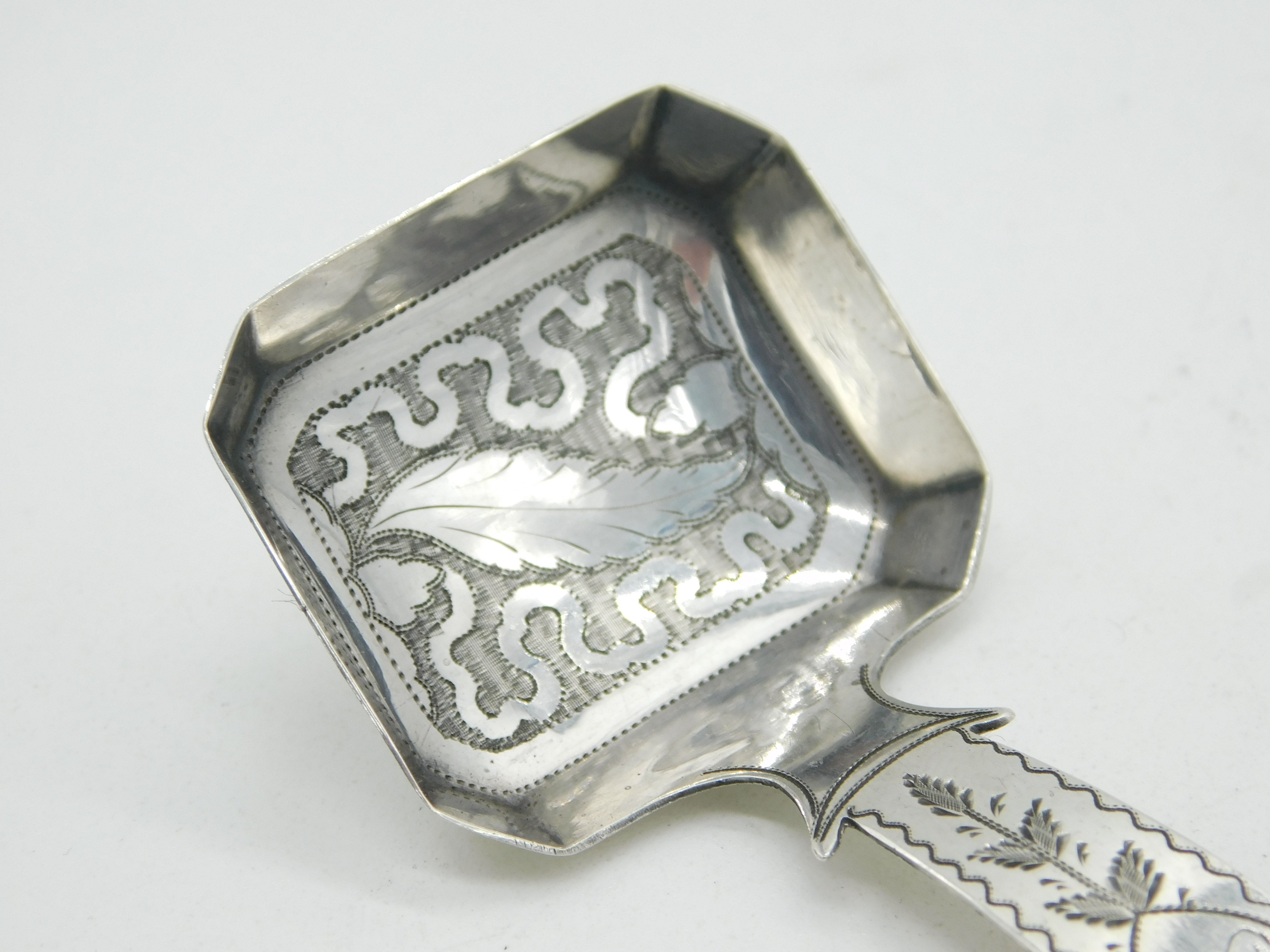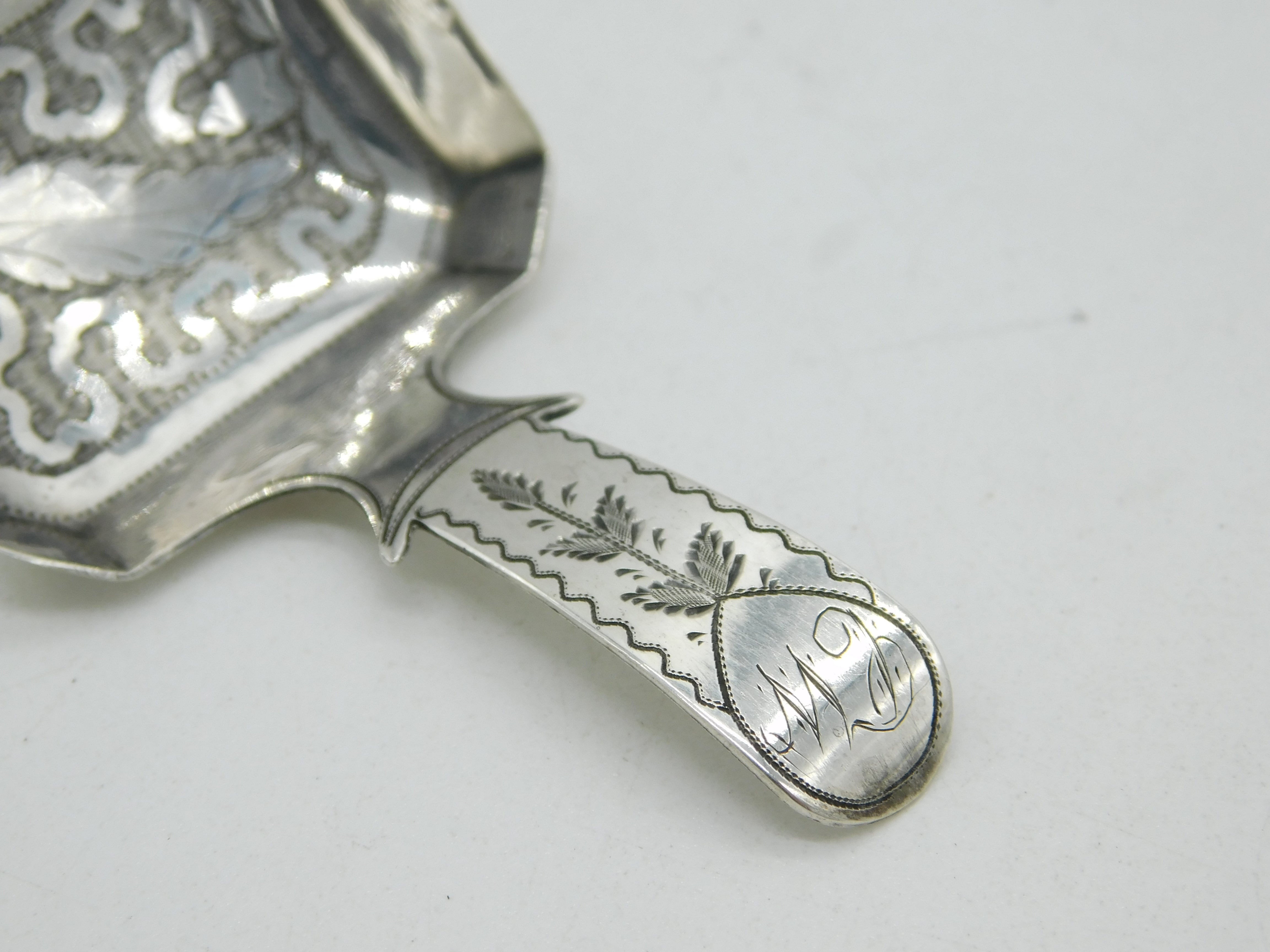 George III Sterling Silver Leaf Pattern Tea Caddy Spoon Antique 1815 Birmingham