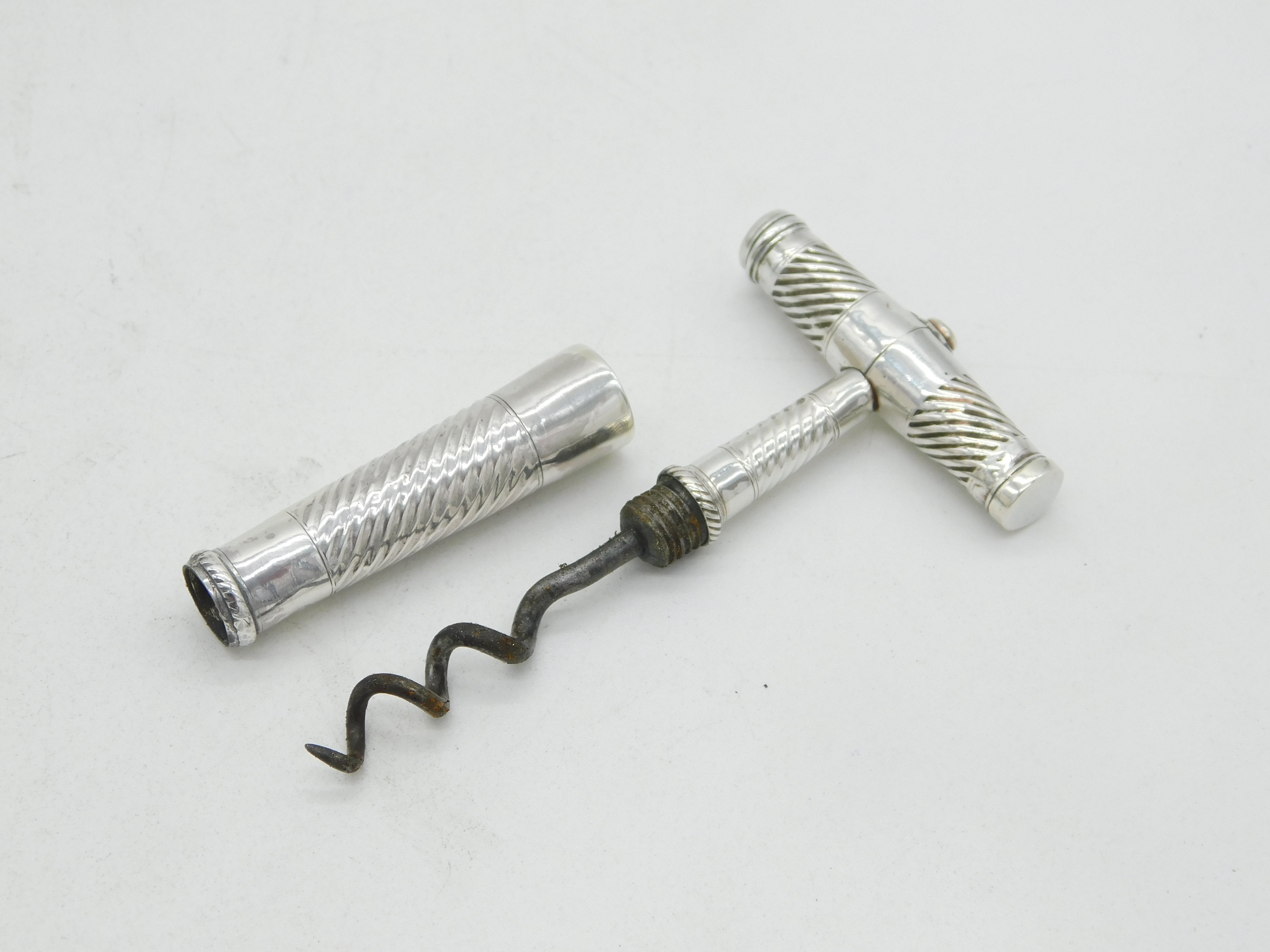 George III Sterling Silver Travelling Corkscrew Antique c1760