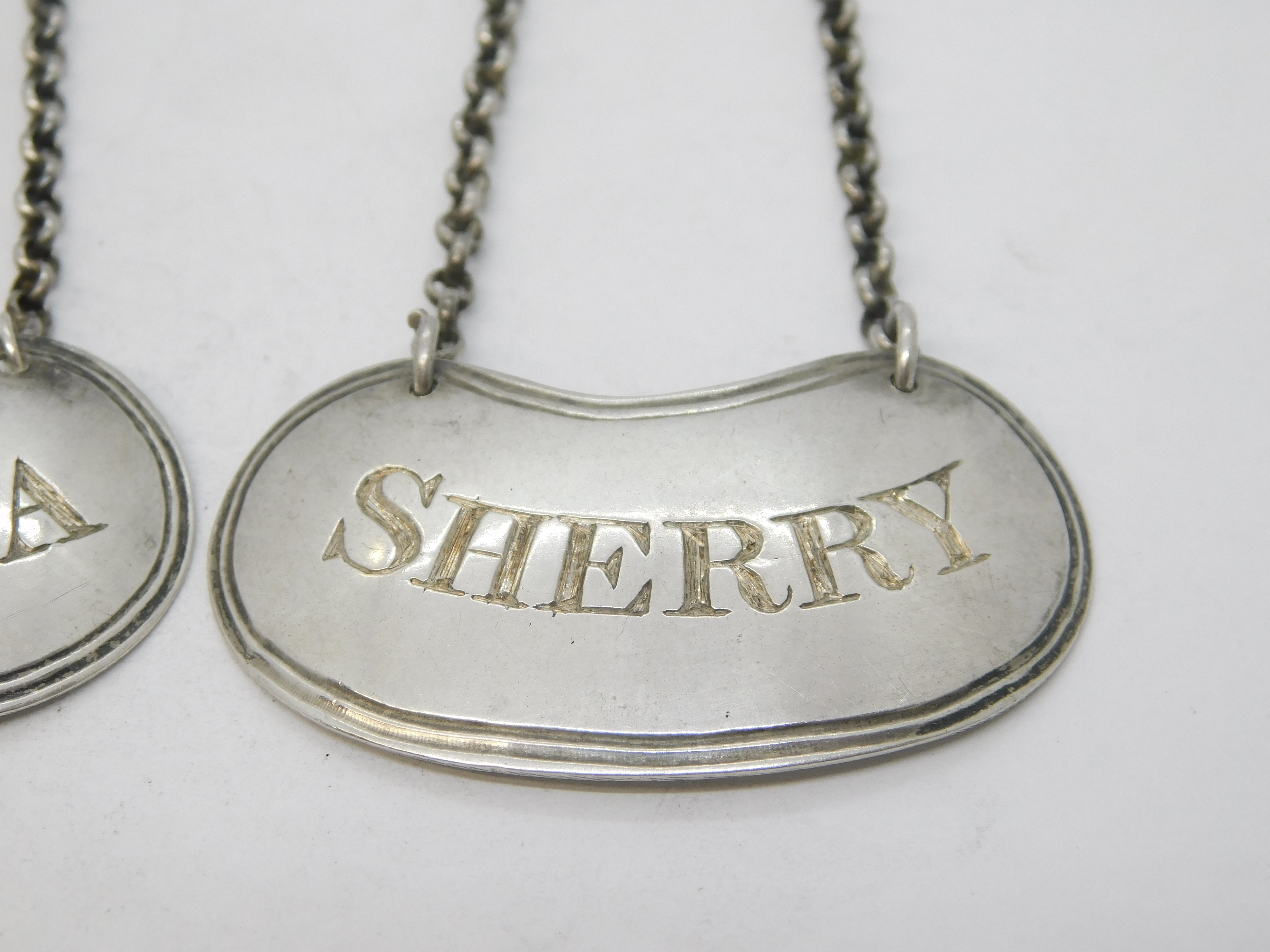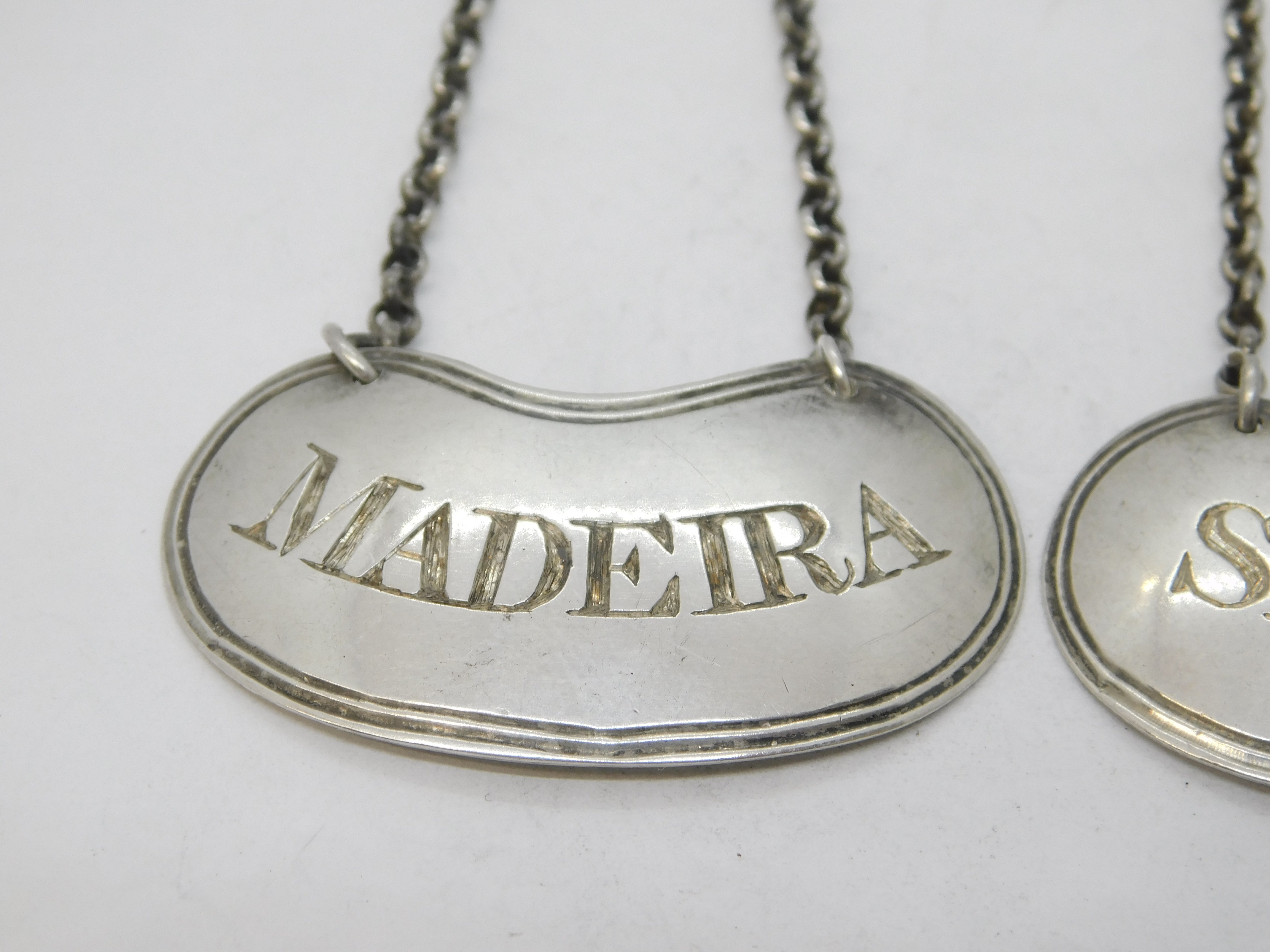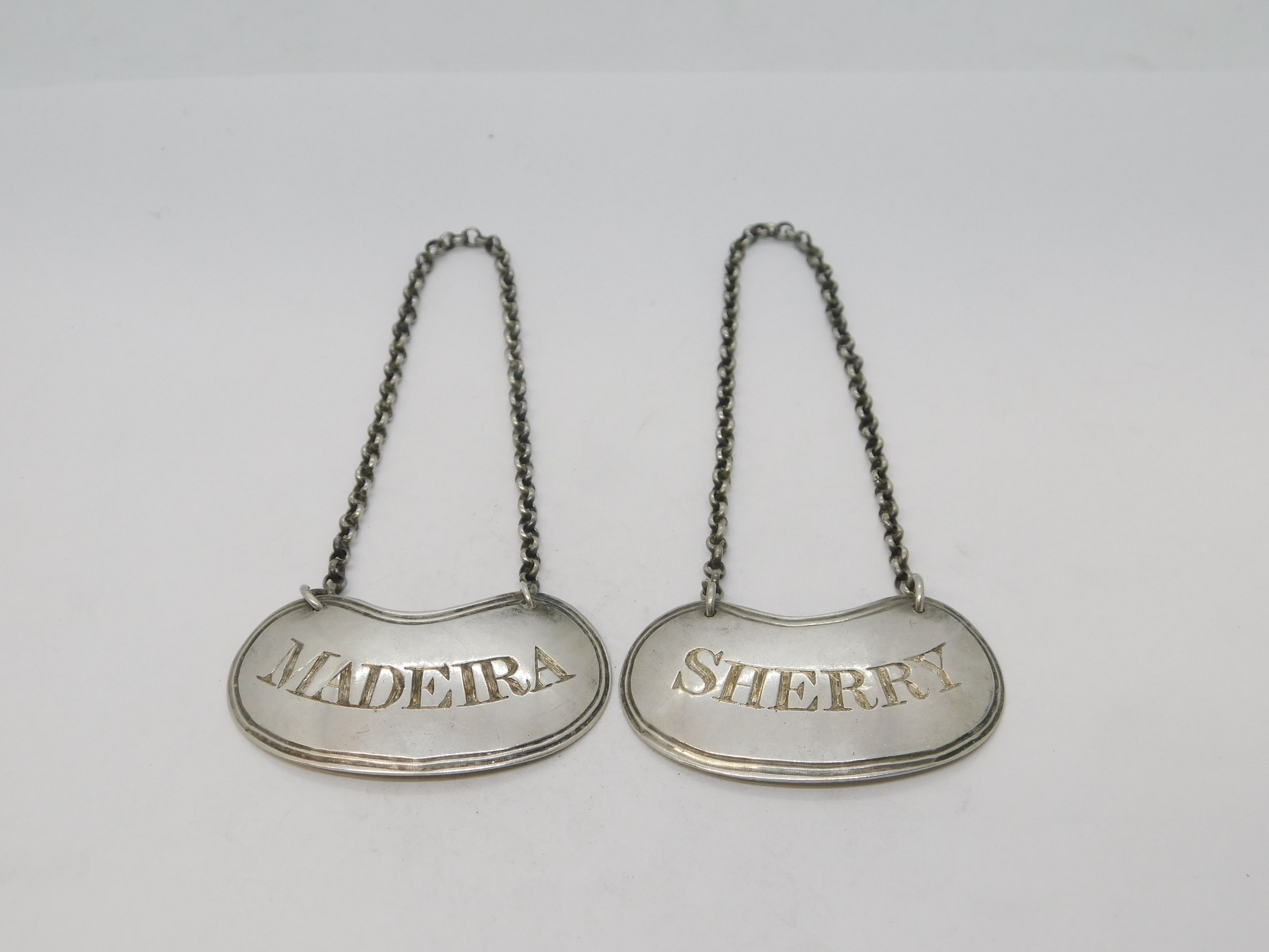George IV Pair of Sterling Silver Madeira & Sherry Decanter Label Antique 1825 Birmingham