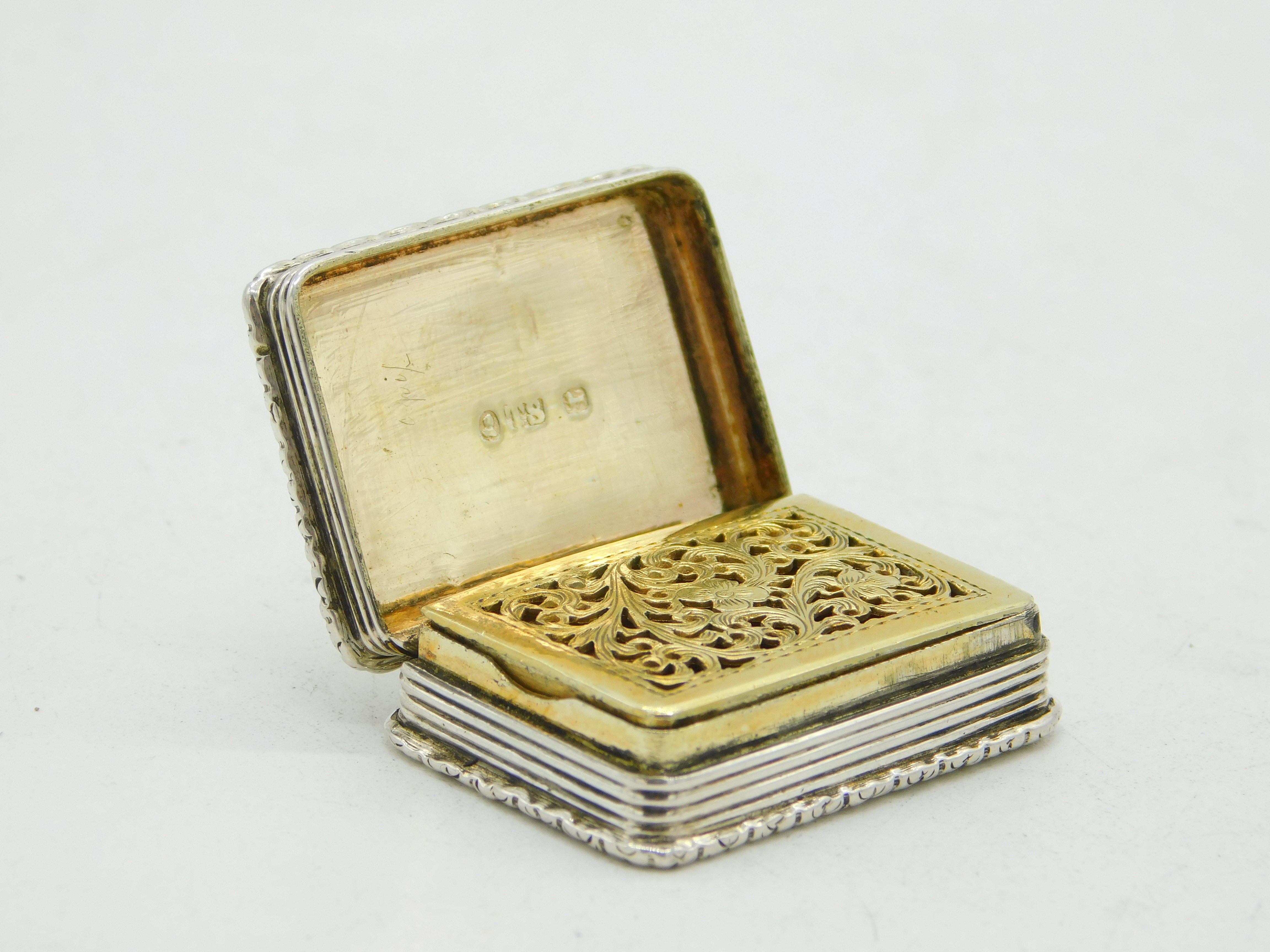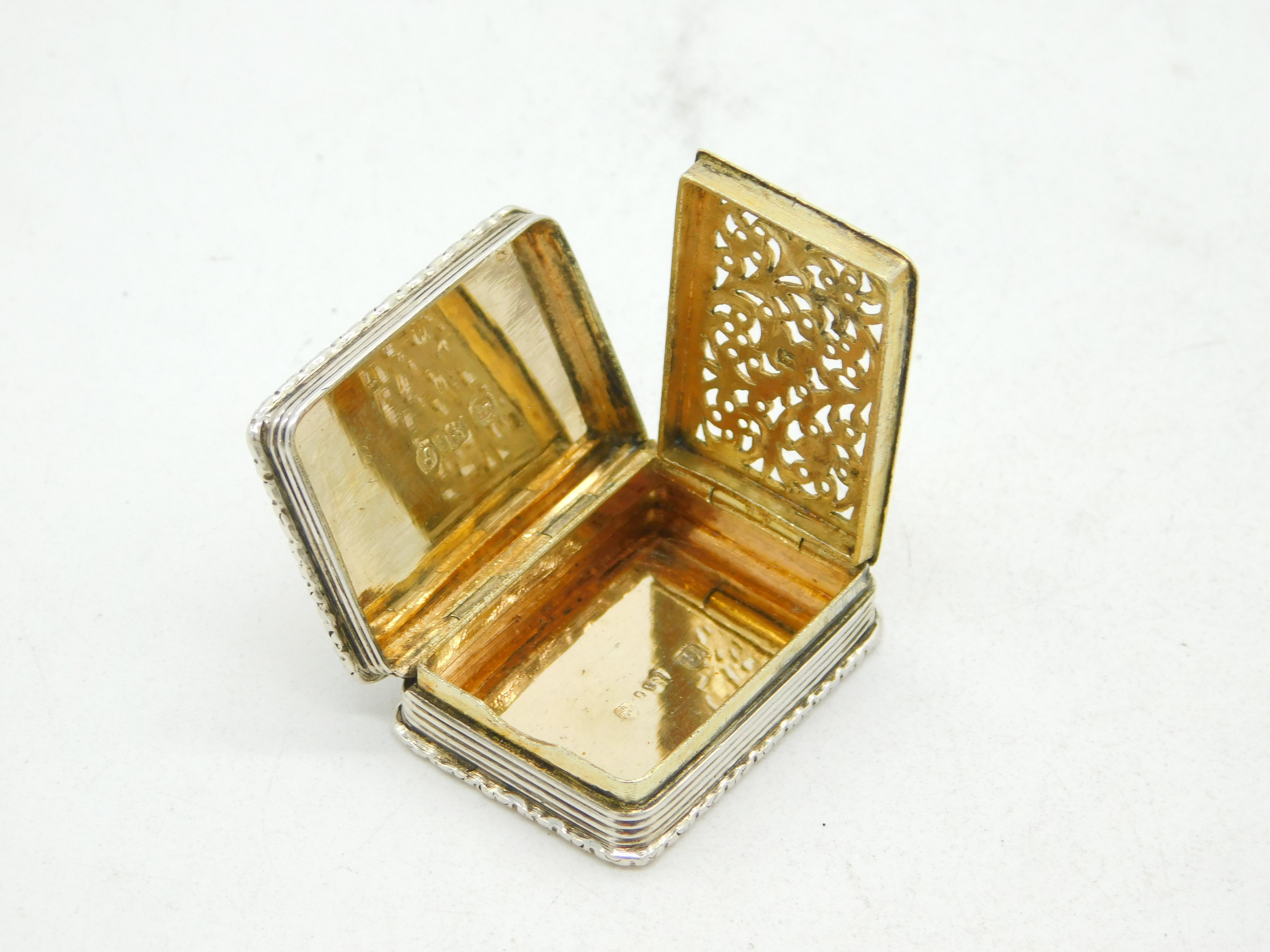 Details: A fantastic and wonderfully designed antique georgian sterling silver gilded vinaigrette with ornate floral pierced grill, hallmarked for Birmingham 1827 by Thomas Shaw. This is a wonderful item that would make a perfect gift or addition to any collection. We are more than happy to provide XRF reports for items upon request.
