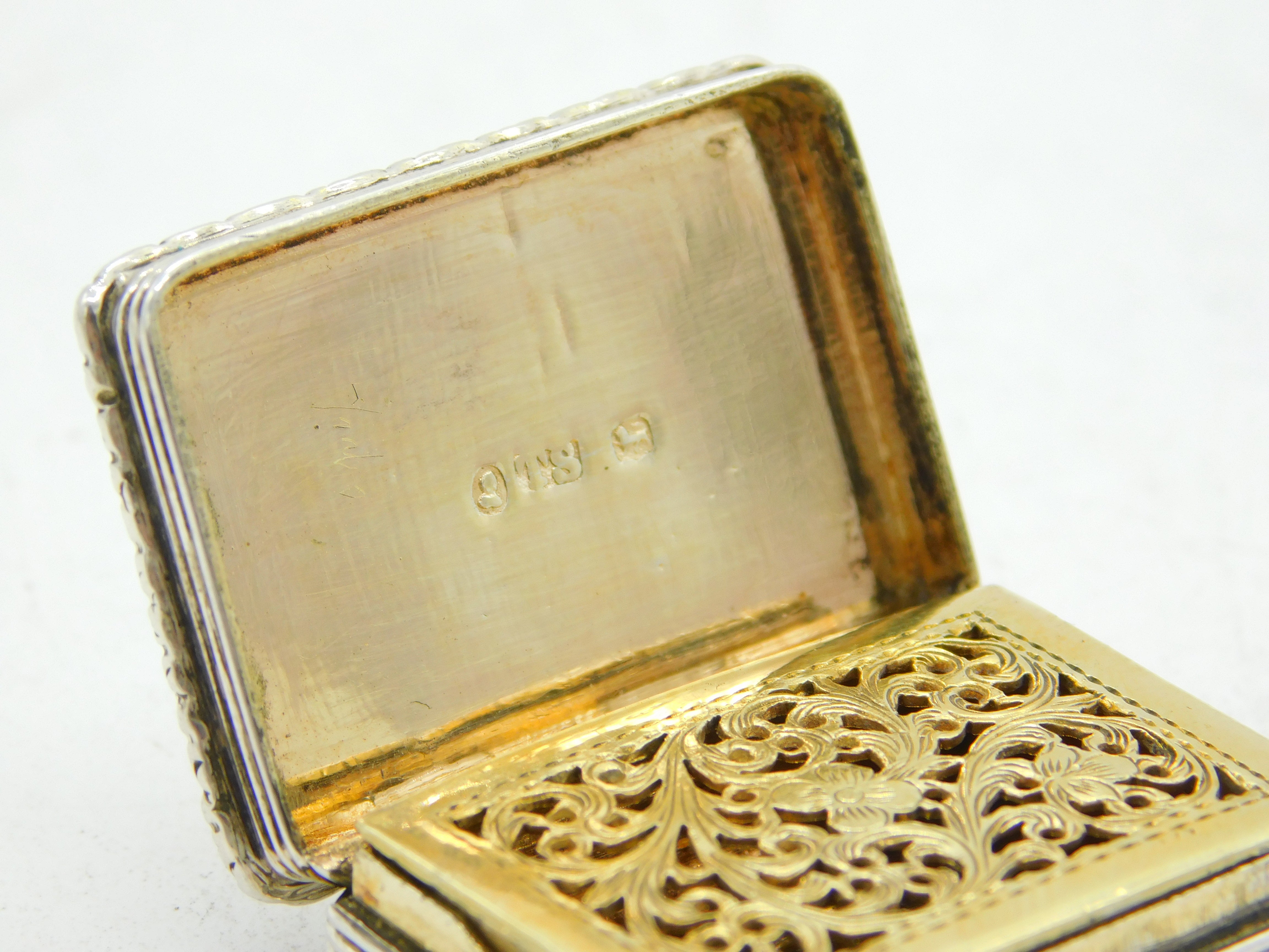 George IV Sterling Silver Floral Gilded Vinaigrette Antique 1827 Birmingham