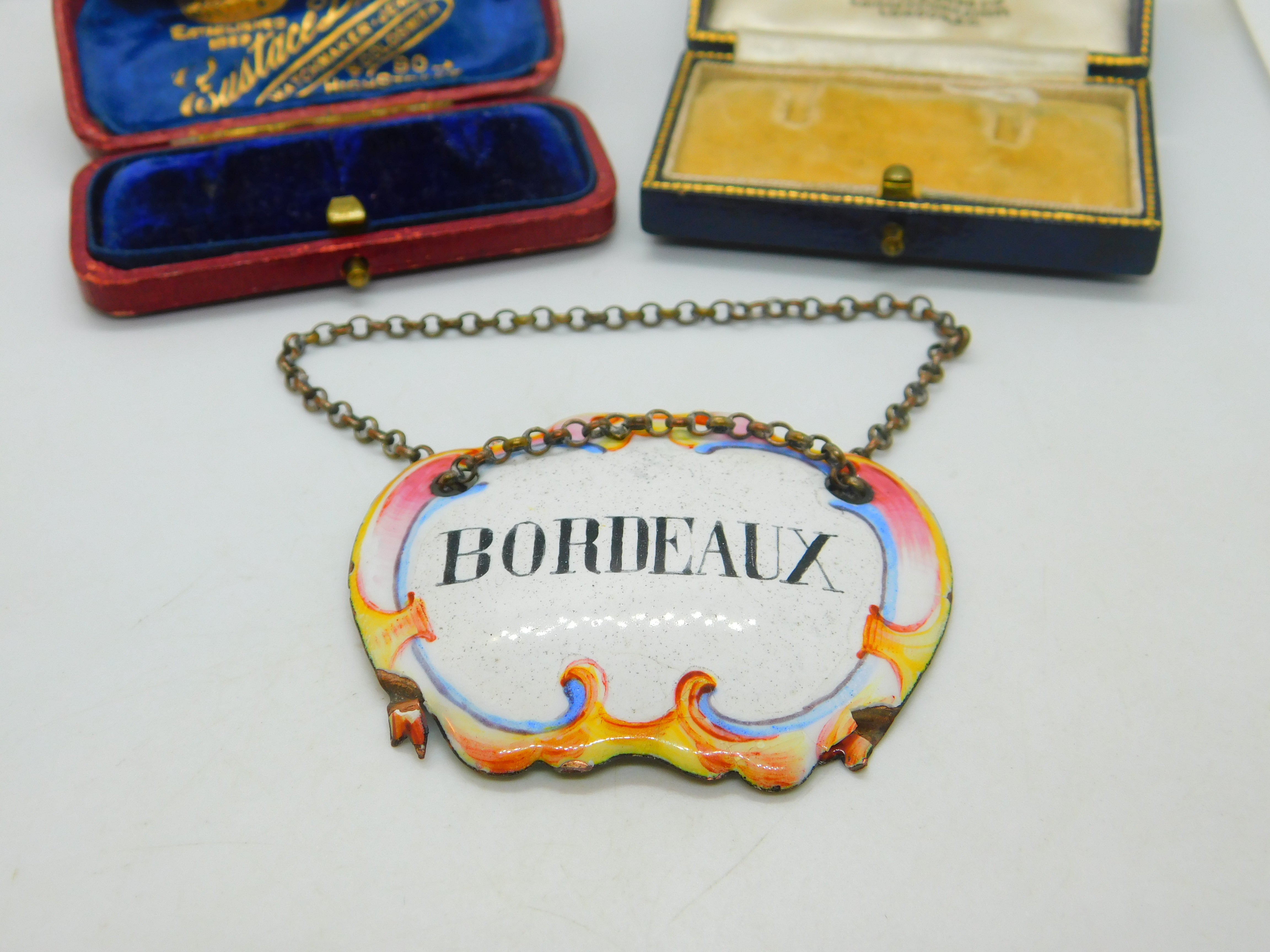 Details: A fantastic and fun antique Georgian enamel on metal Bordeaux wine bottle or decanter label with excellent colour and detail c1800. This is a wonderful item that would make a perfect gift or addition to any collection. The BOX pictured is for PRESENTATION ONLY and is NOT included in the listings but used to frame the pictures unless specifically stated otherwise.