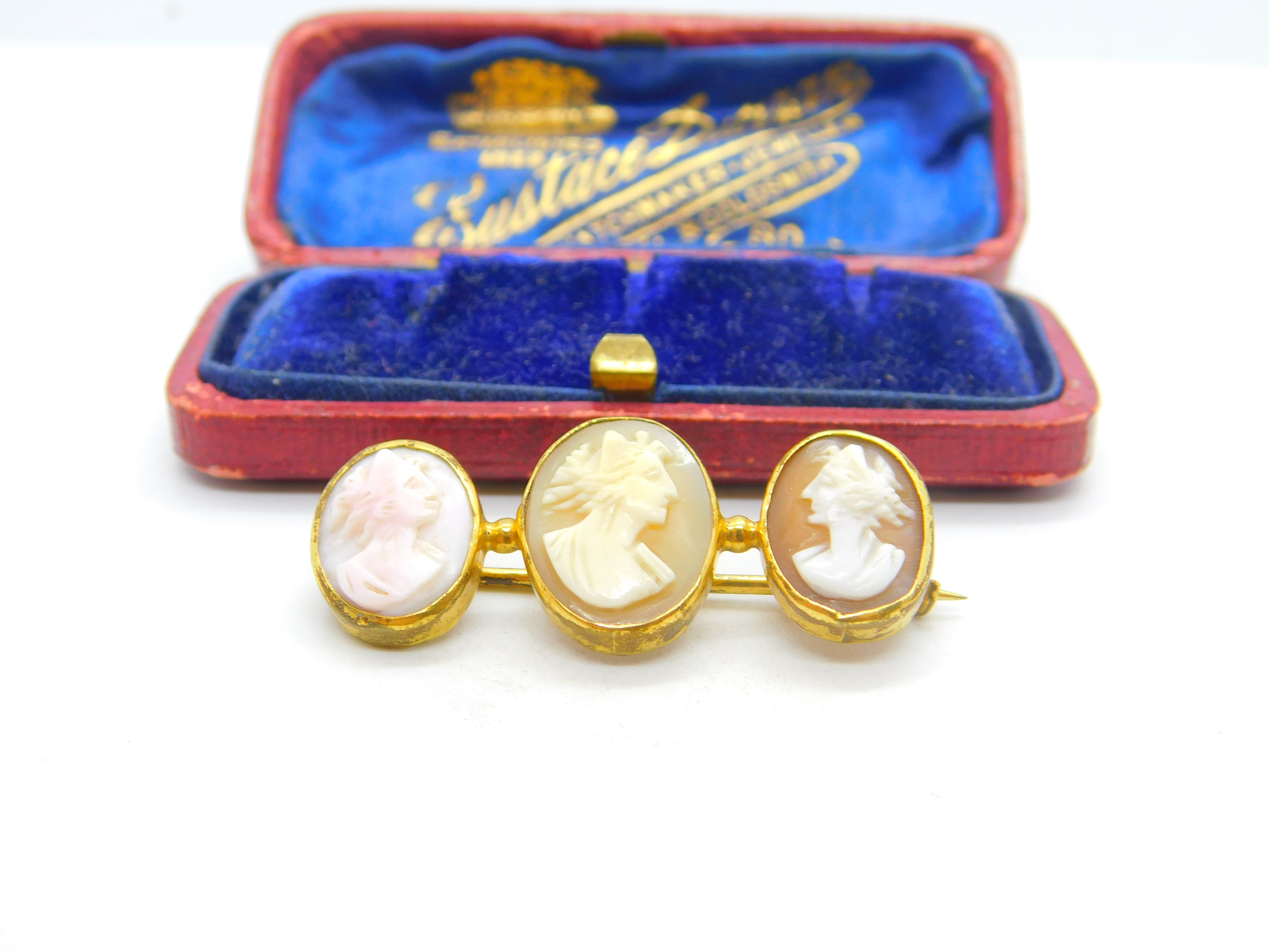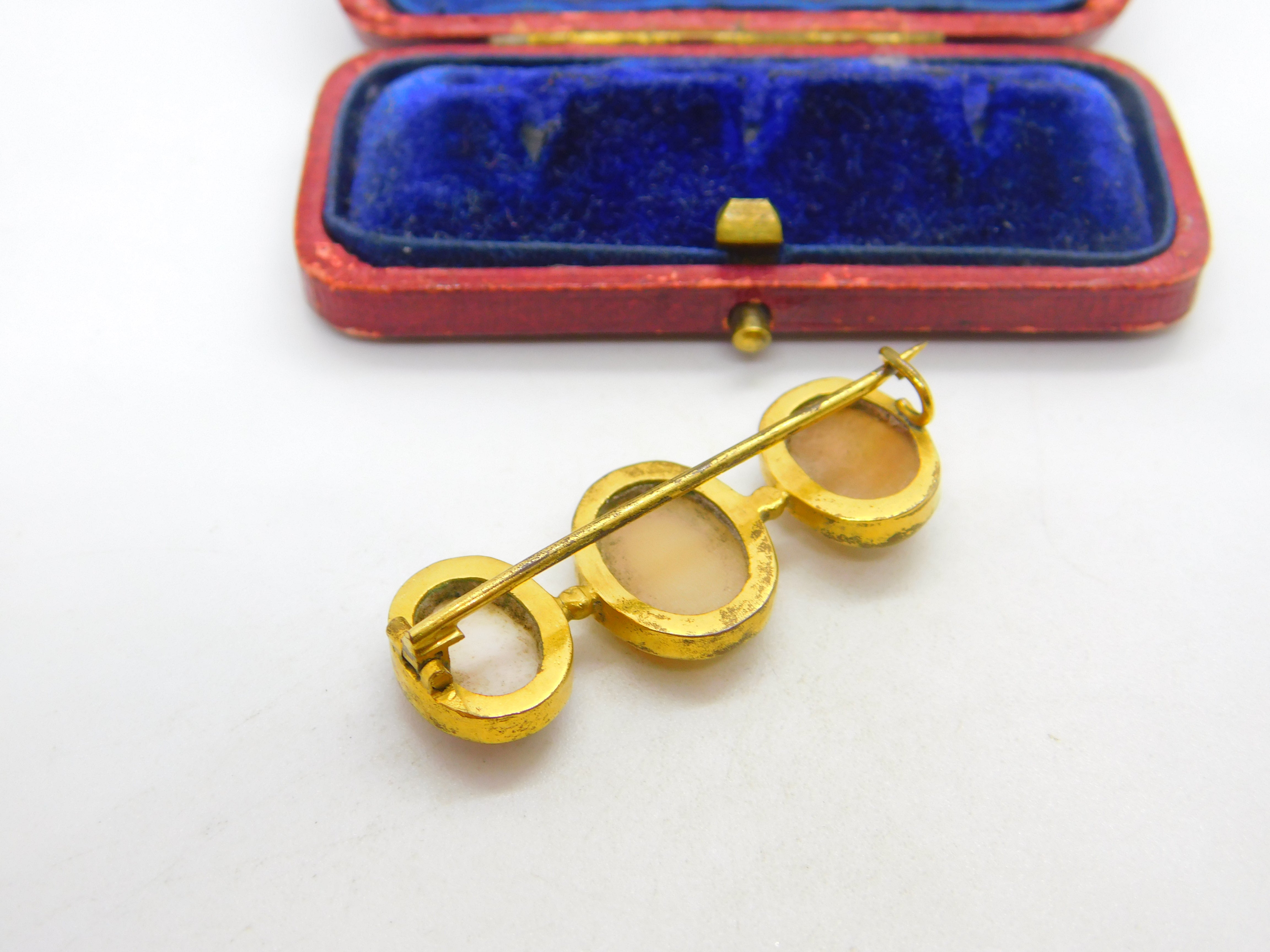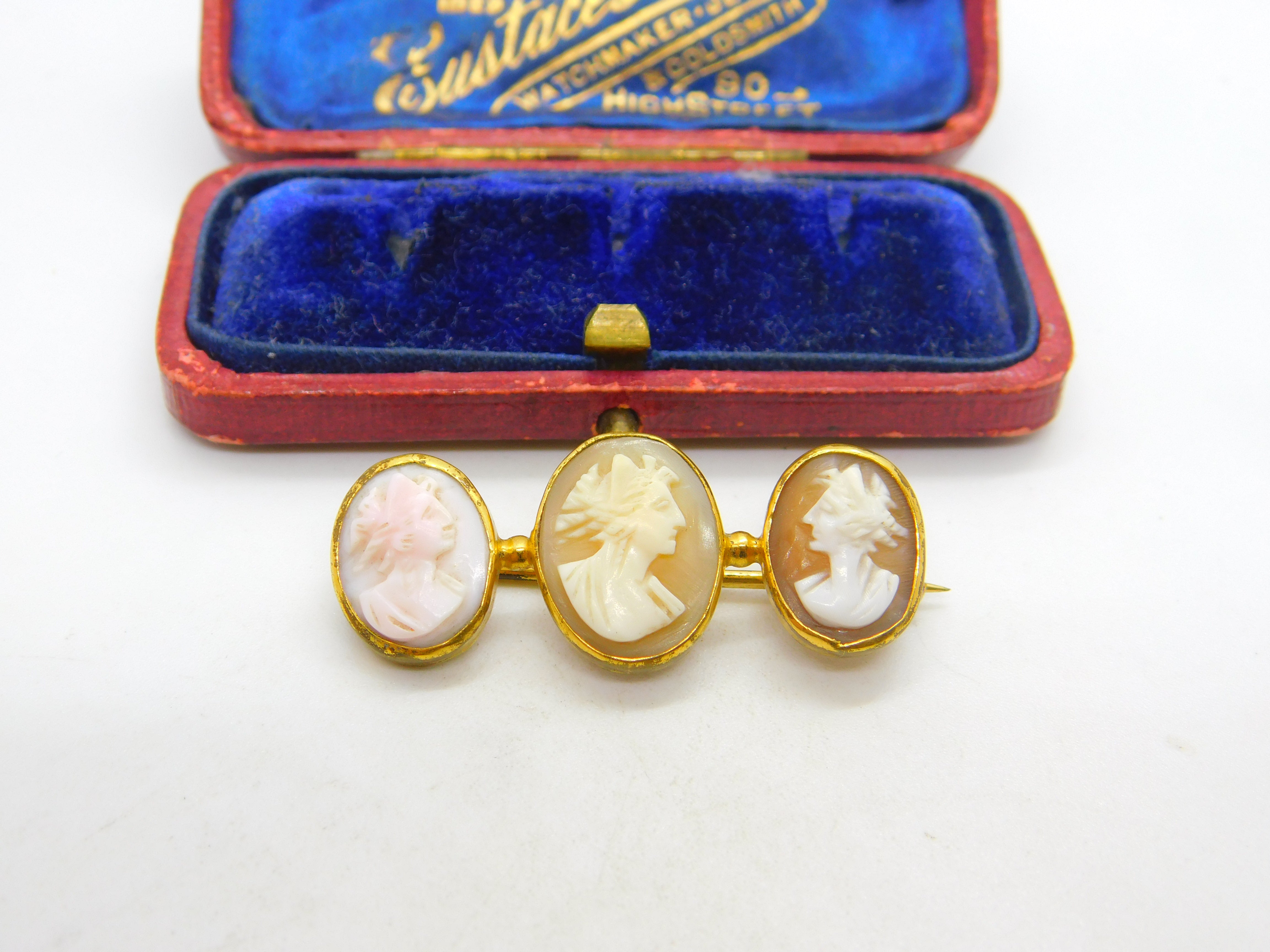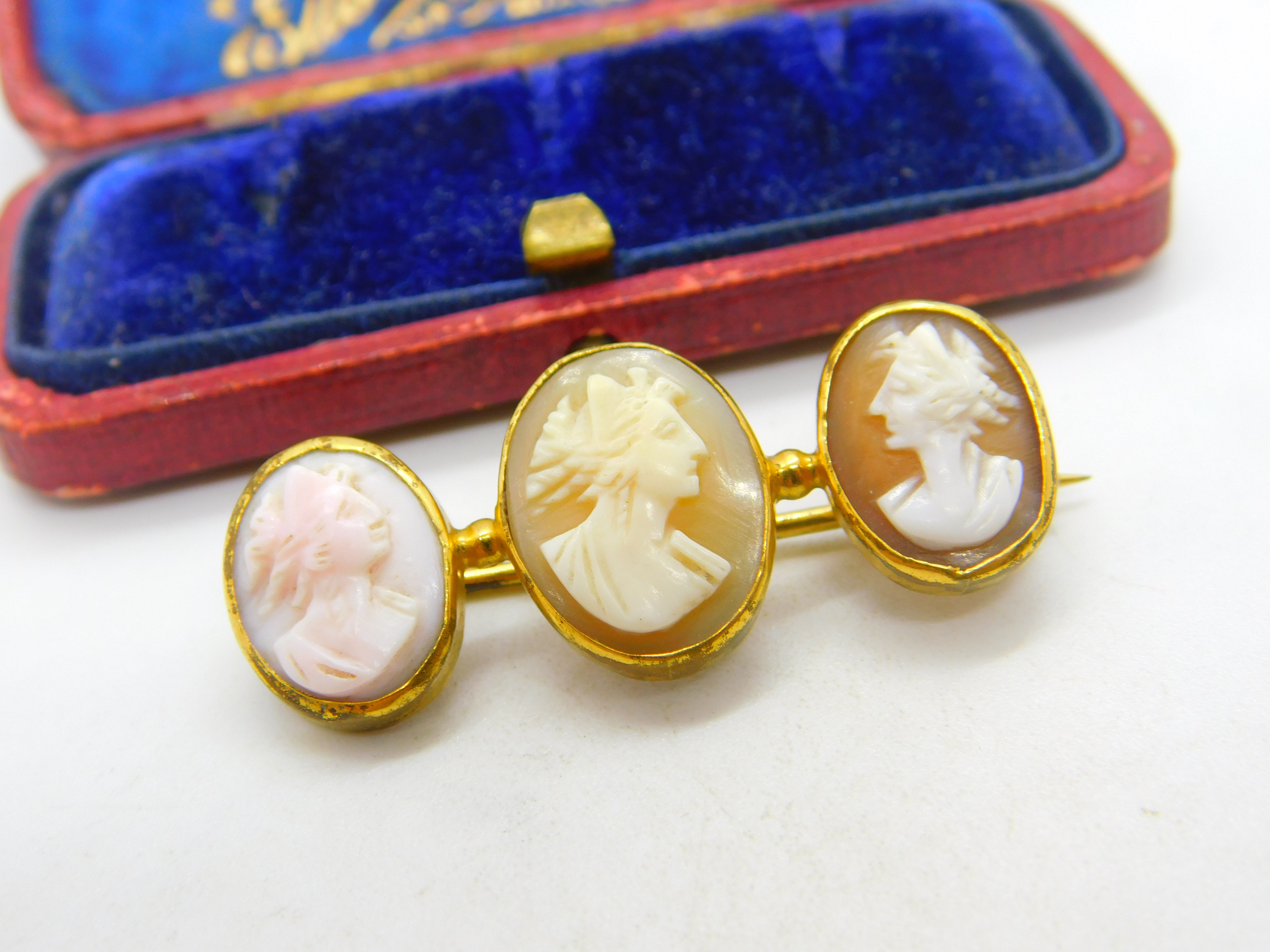 Georgian Grand Tour Period Carved Shell Triple Cameo Brooch Antique c1800